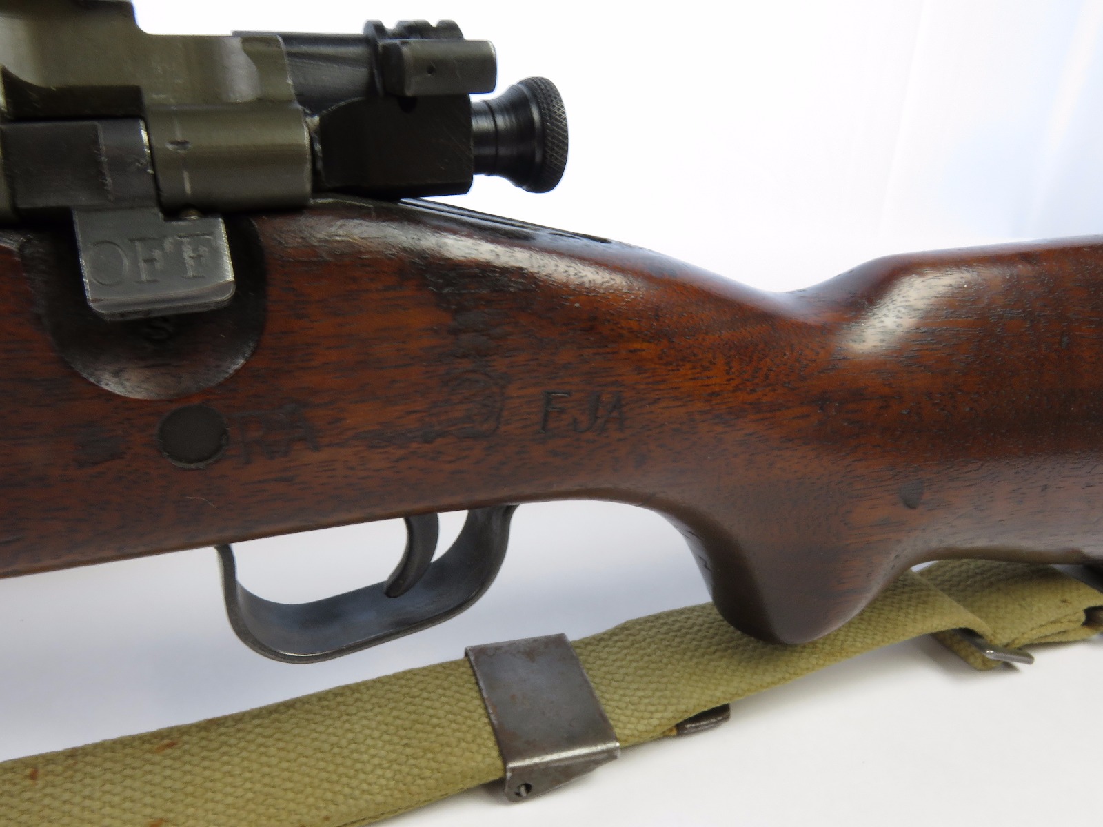 6/13/17 – This is an original WW2 US Remington 03-A3 Sniper rifle. The rifle comes with an original period correct Weaver scope. The scope has excellent optics that are crystal clear and like-new. The scope has a very faint, hand-scribed etched serial number. This is how the scopes were numbered and issued. The scope has some thinning on the exterior finish but is in great shape overall. The receiver is phosphate and beautiful. Nearly flawless condition. The bolt and barrel are blued with no major issues and some normal wear in spots from mechanical use. The barrel is “RA” stamped and is dated December of 1943. The bore is excellent as well with very minimal wear. The wood stock is correctly cartouched, maker and inspector stamped, and has no major blemishes, cracks, or flaws. Guaranteed original and authentic, this sniper is a very cool piece of American history.