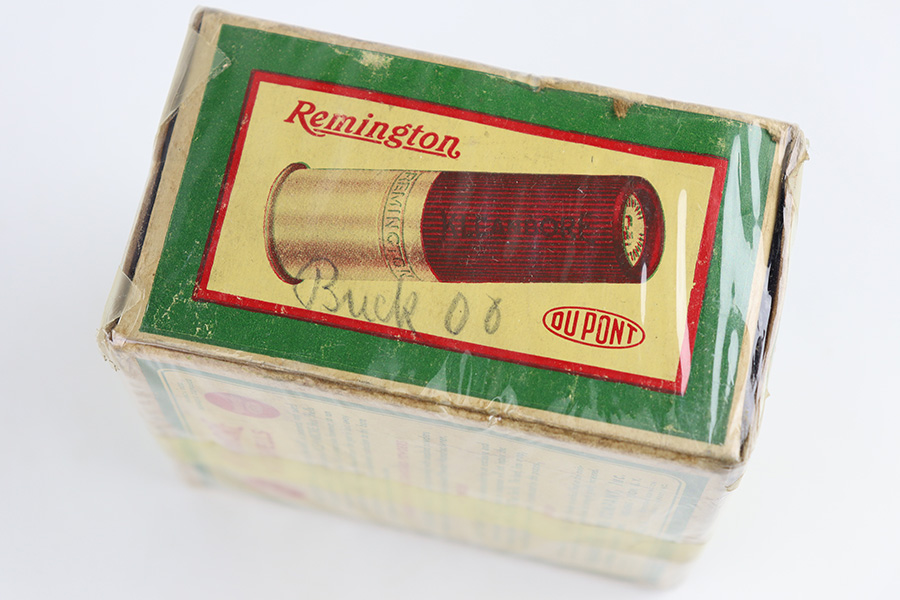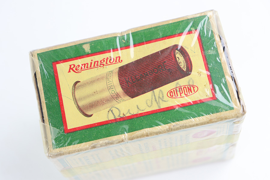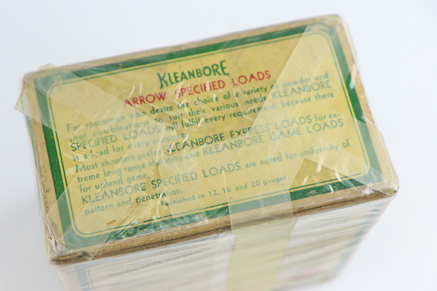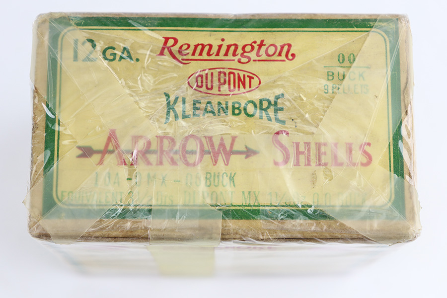 11/2/23 – This is a WW2 era vintage box of Remington 12 Gauge Arrow Shells Shotgun ammunition. The box is stamped “US Property” for military use. The box is aged, and wrapped in a protective plastic wrap. Great overall condition 00 buckshot, 25 shells total.