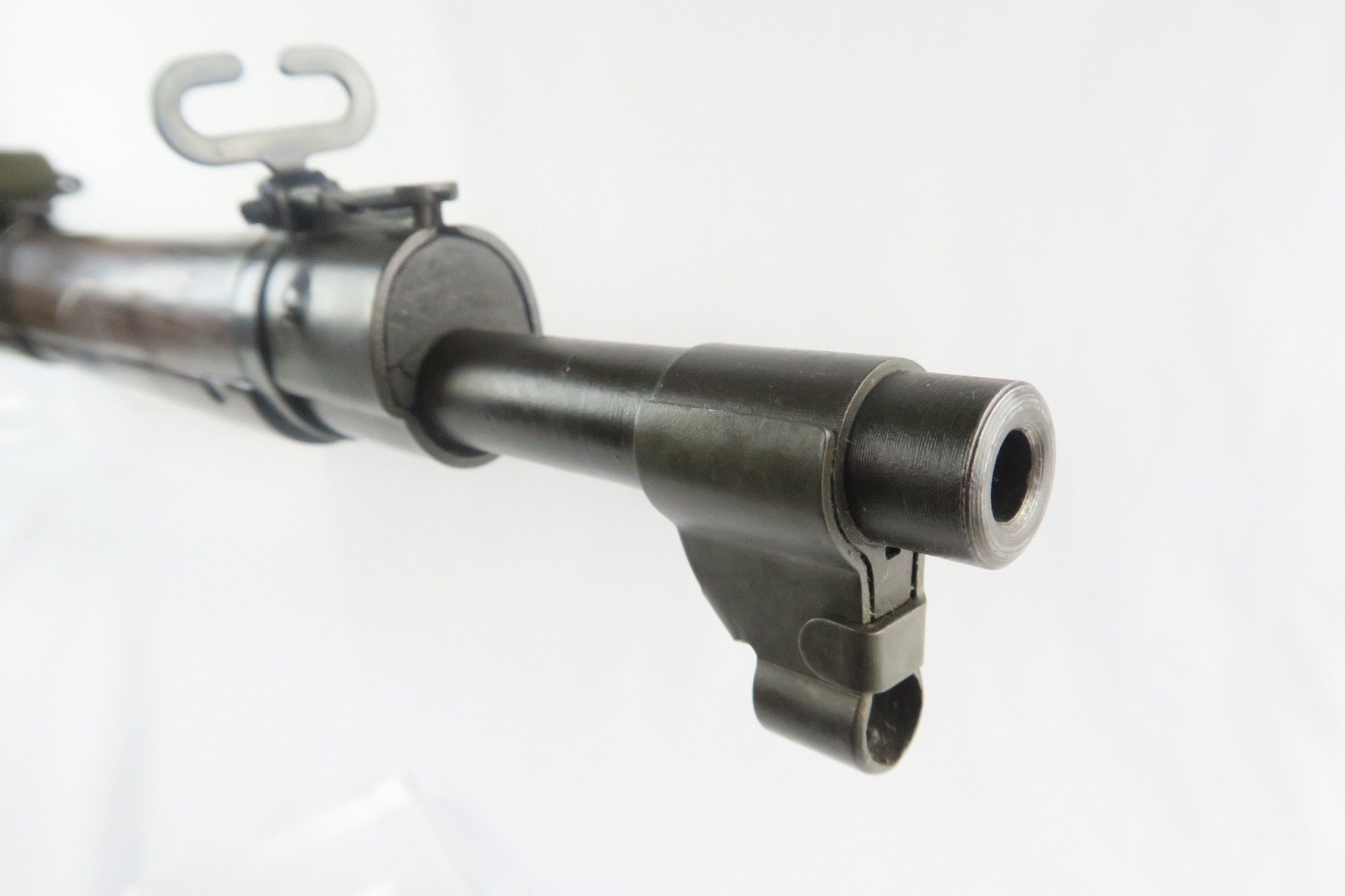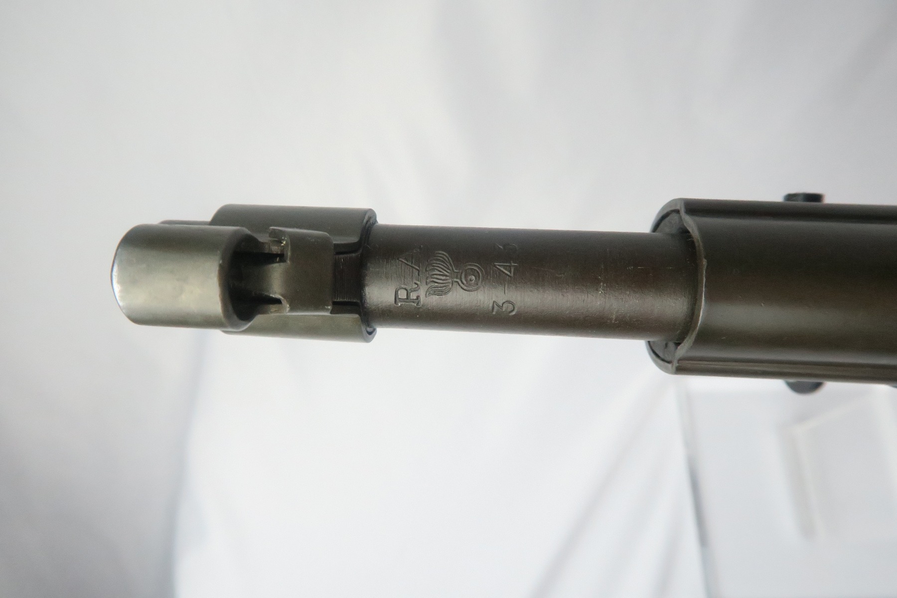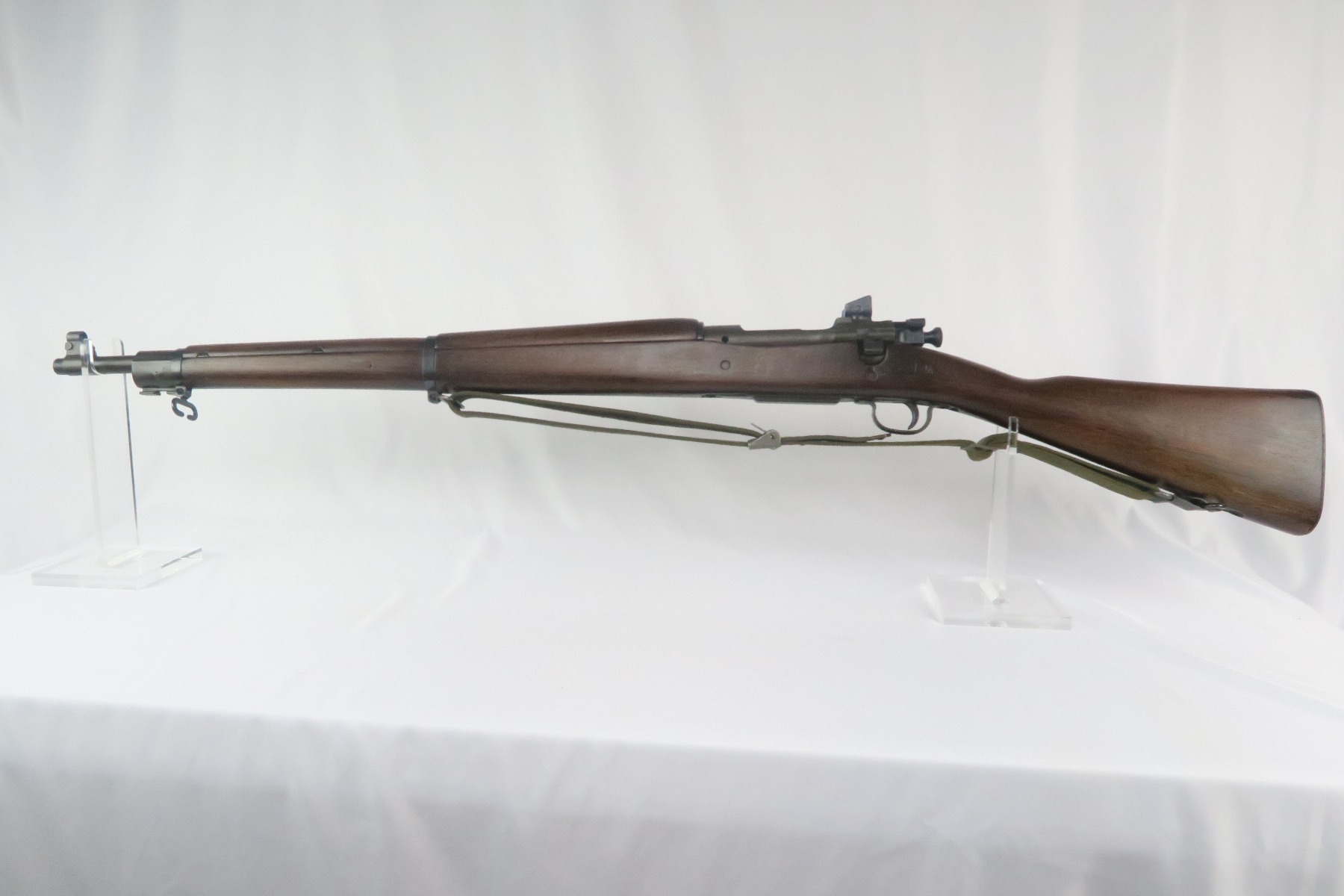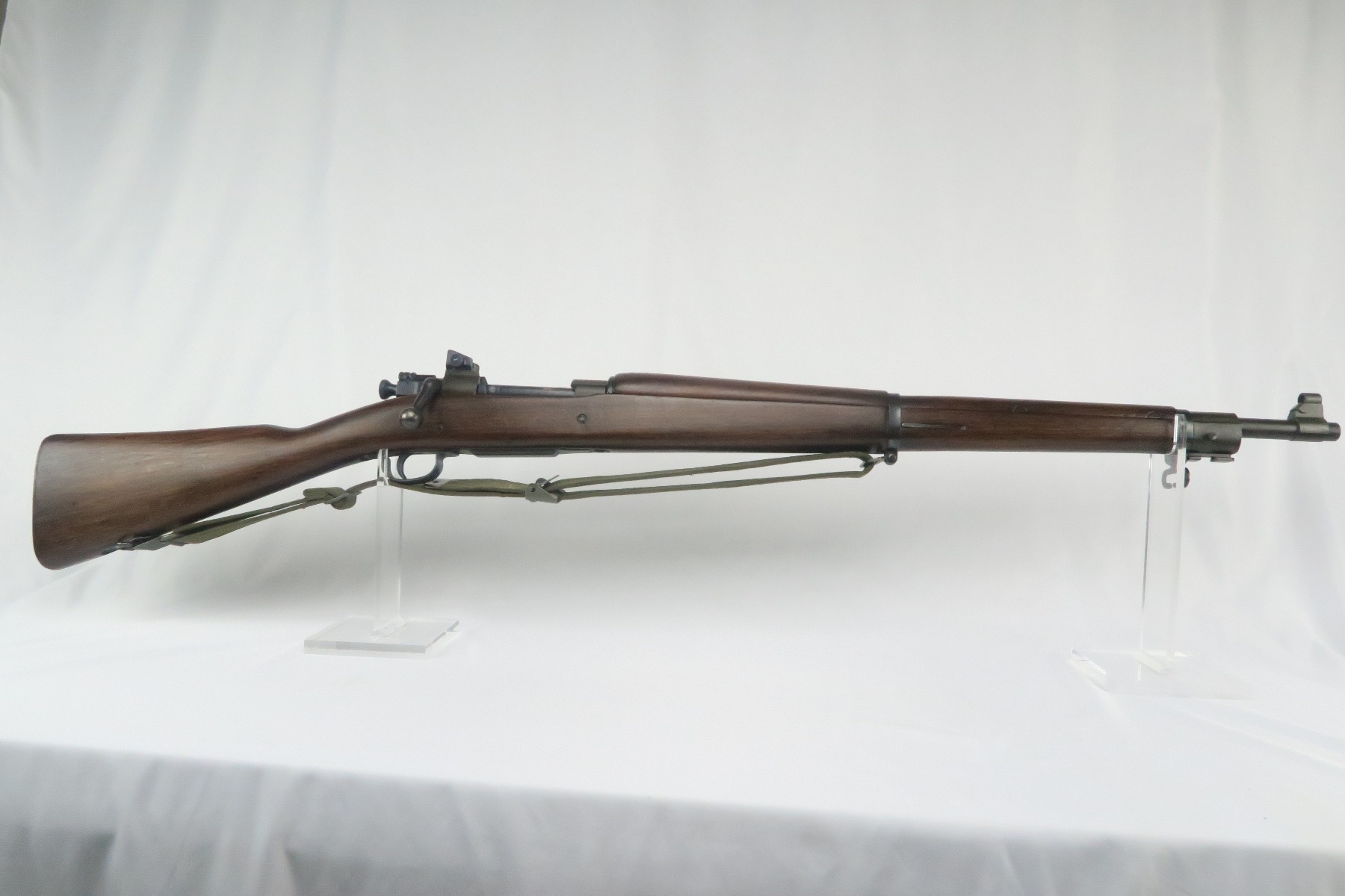 1/2/18 – This is an excellent, all original WW2 production Remington model 1903-A3 bolt action rifle. The barrel is 1943 dated with an ordnance stamp and Remington Arsenal stamp. The stock and receiver are also properly Remington Arsenal stamped. The stock is additionally inspector “FJA” proof stamped. The stock does appear to possibly have a light cartouche stamp in between the “RA” and “FJA” on the stock. This is most likely due to some raising of the wood over time, accompanied with a weaker original stamp. The stock is completely correct and original to the gun. The underside is P proofed and has various small inspector proofs as well. The metal is excellent on this rifle, with most of the wear being light patina or a few brown spots on the phosphated receiver. The barrel is excellent and the bore is a 9/10 with some minimal patina within the rifling. The strap is period correct but unmarked. Guaranteed original and authentic.