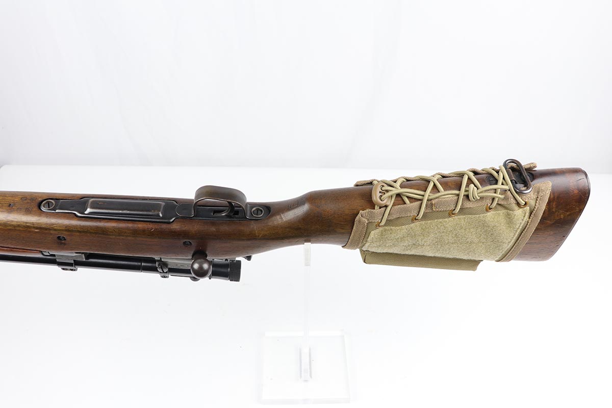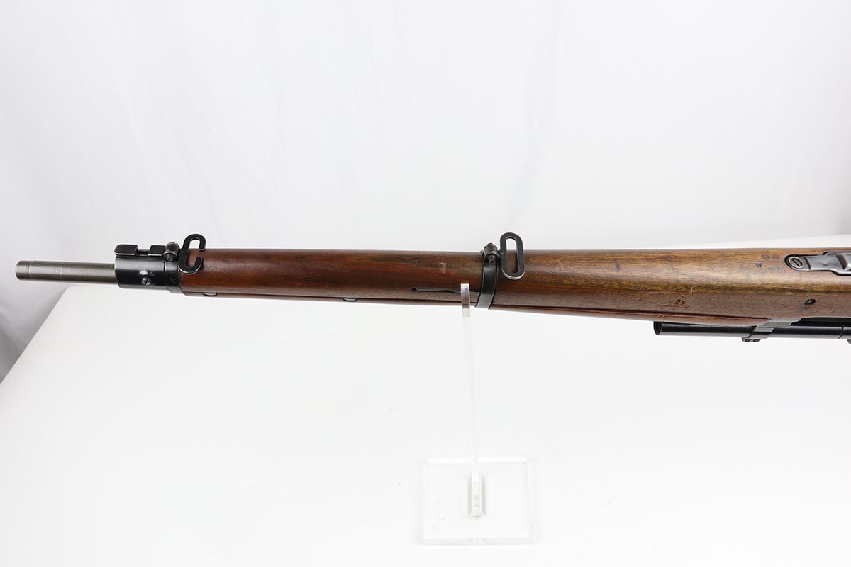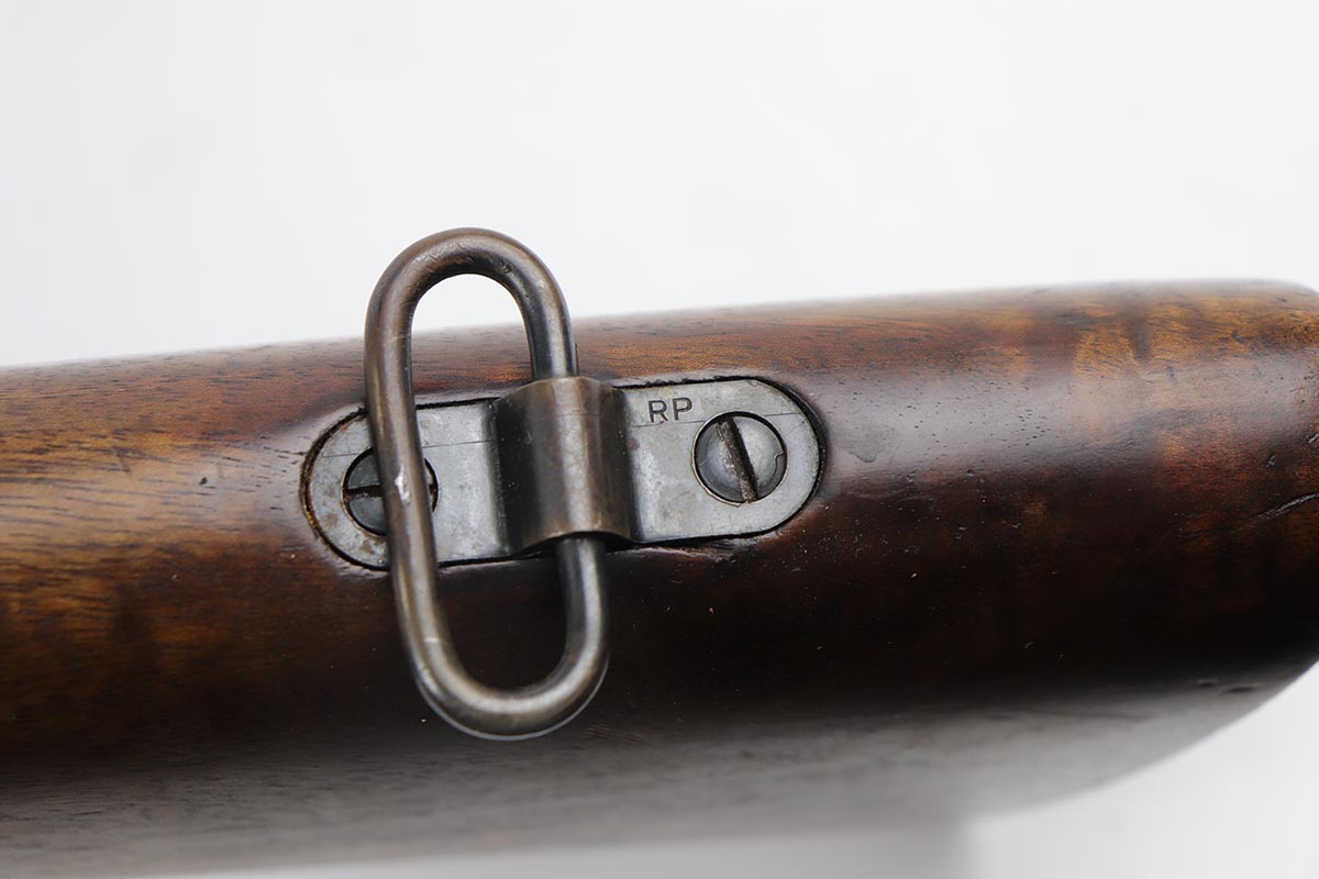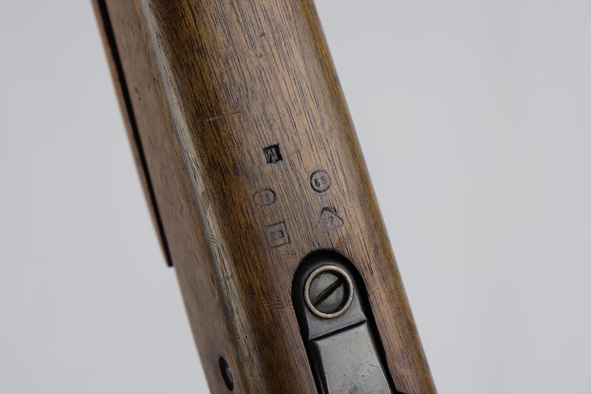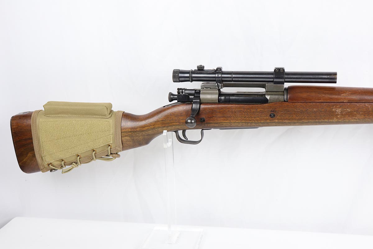 8/20/19 – This is a rare and desirable Remington Model 1903-A4 sniper rifle with scarce ‘Z-prefix’ serial. There were fewer than 3,000 such examples produced. The rifle features a Weaver M73B1 scope on a Redfield mount. The M73B1 were one of the standard optics on WWII Model 1903A4 Sniper Rifles. It has crystal clear optics. The rifle has the distinctive Model 1903A4 features which include a “Type C” pistol grip stock with bolt relief cut-out, a modified bolt handle, the rear sight is removed to accommodate the scope mount and the barrel has no front sight base or blade. Barrel is dated to September of 1943. The rifle is in good condition but the metal parts do show a general thinning of the finish. Excellent stock with sharp Remington Arms proof, as well as crossed cannon cartouche and FJA inspector mark. There is a series of dings on the right side, near the forward end of the scope, as well as a two-inch long surface crack on the forend. The barrel is the two groove style utilized on late production Model 1903A4 rifles. Strong, shiny bore.