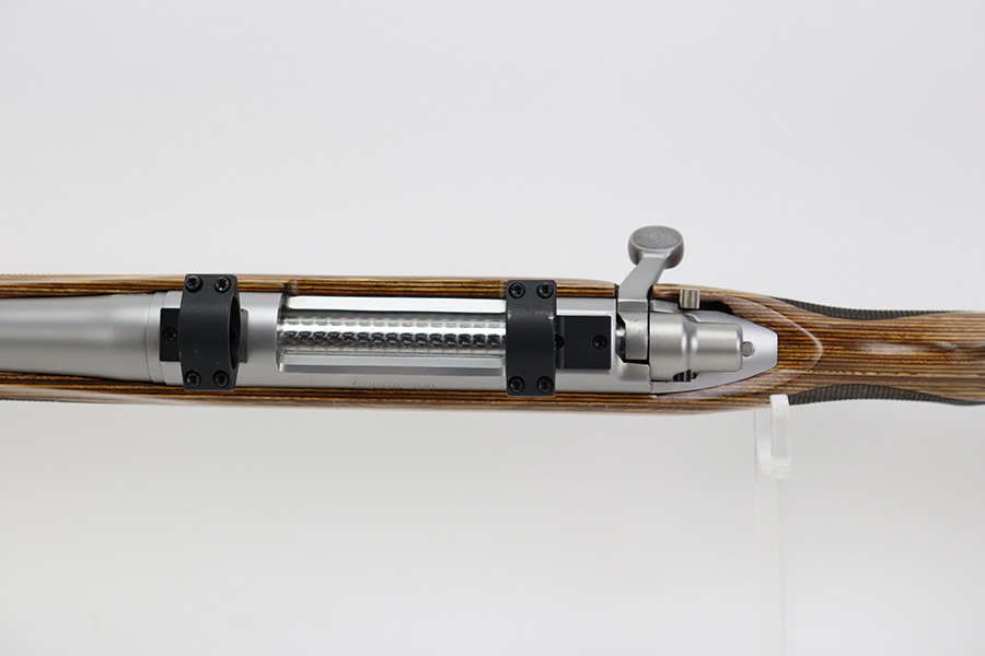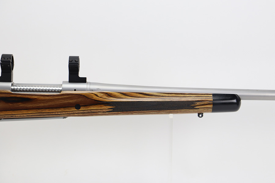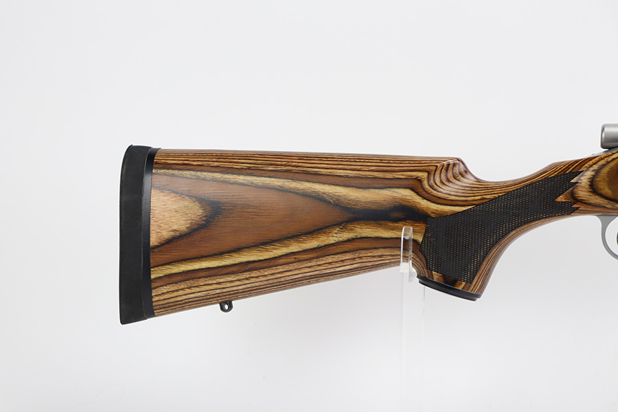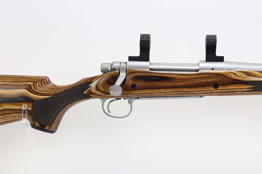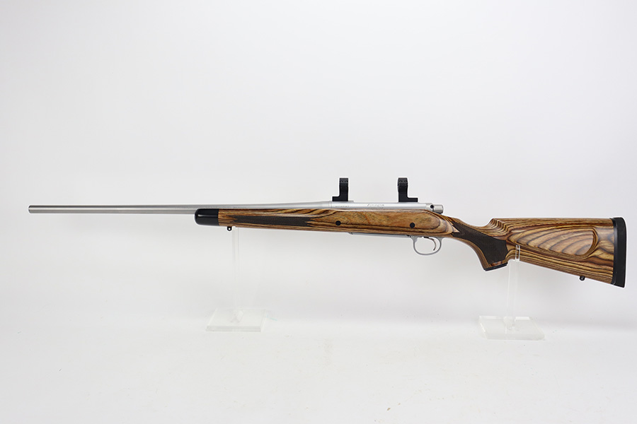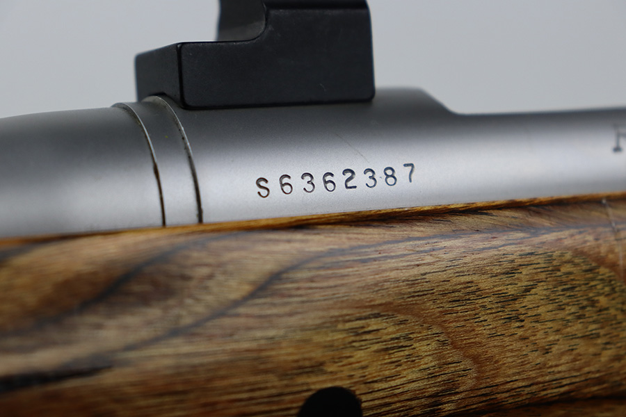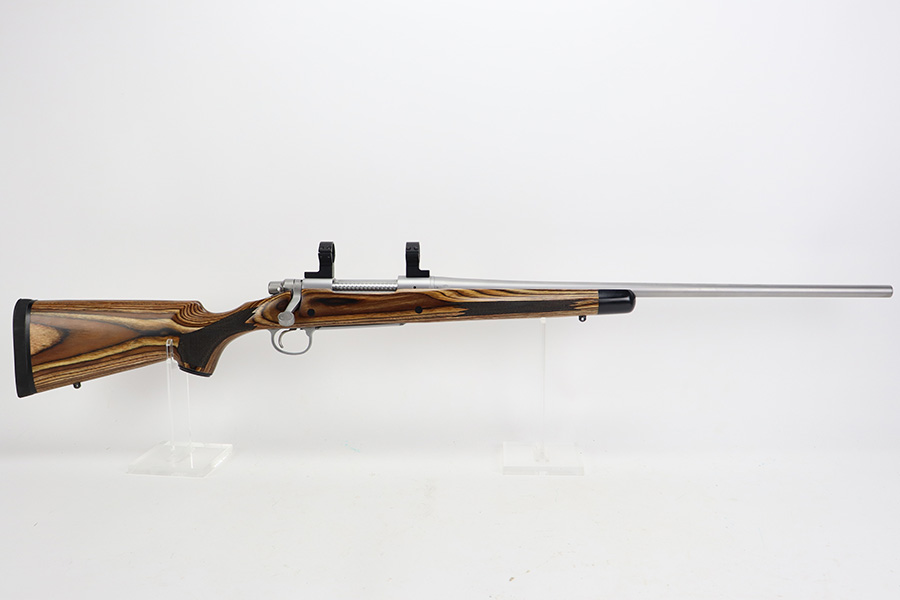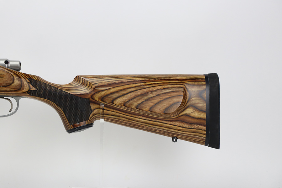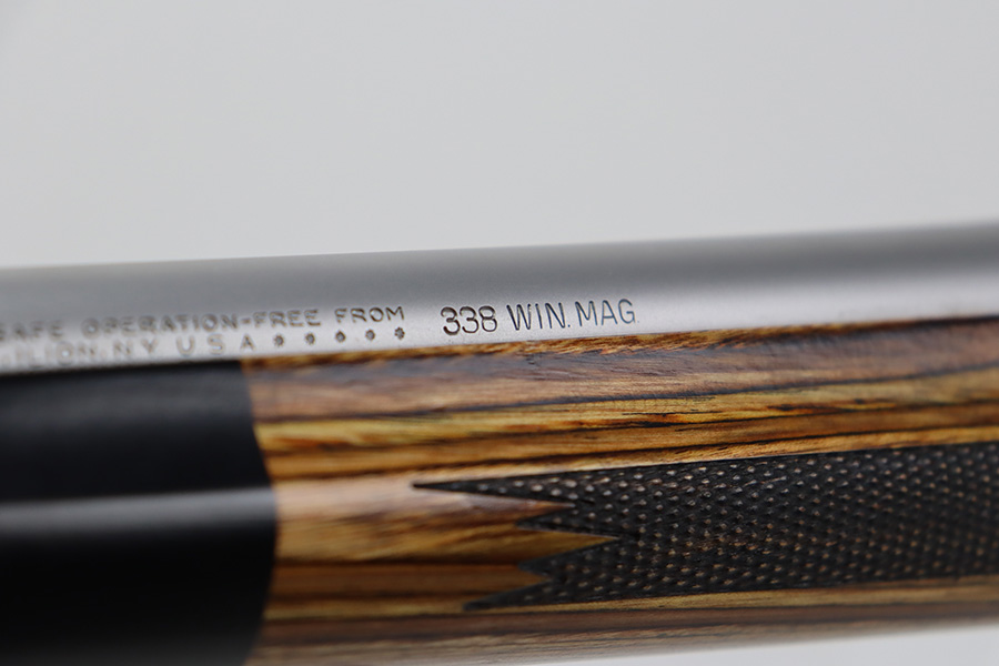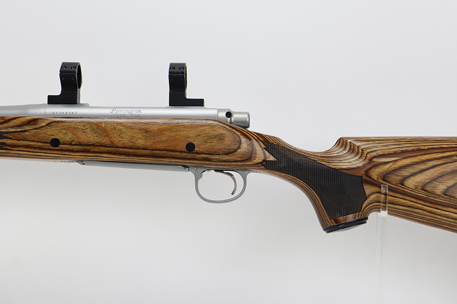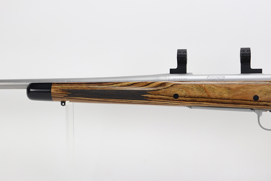 7/21/23 – This is a near-mint example of a Remington Model 700 bolt action rifle, chambered in .338 Winchester Magnum. Comes equipped with scope rings – no scope. The metal parts have a really nice matte stainless finish, and it is fitted with a really nice blonde-colored wood stock. There are very few signs of actual wear, but there are some light scratches here and there along the barrel and on the stock. Mint bore.