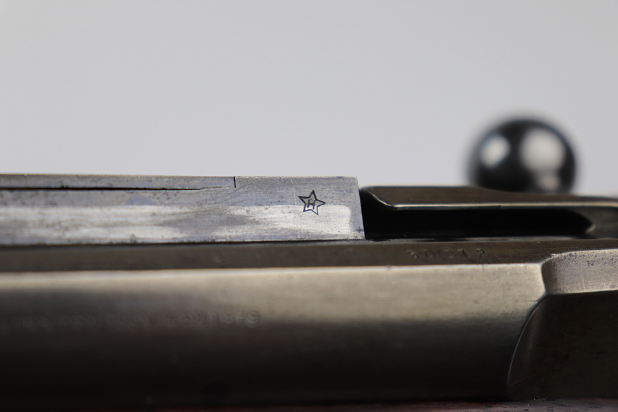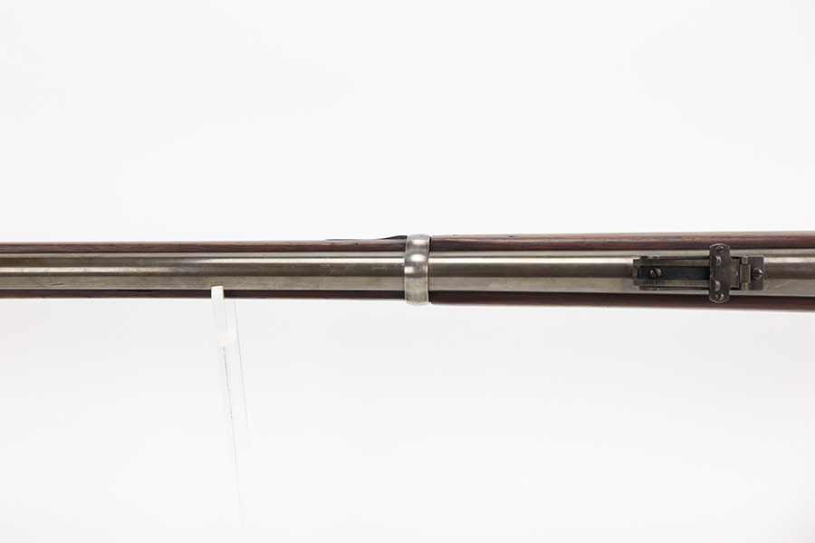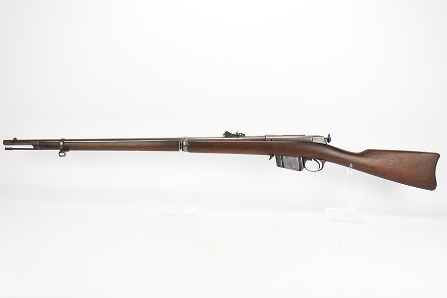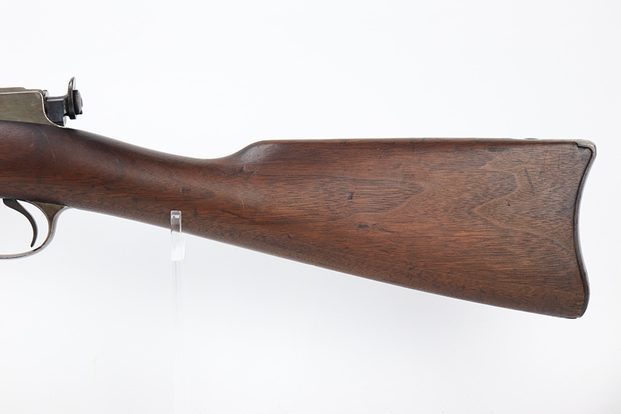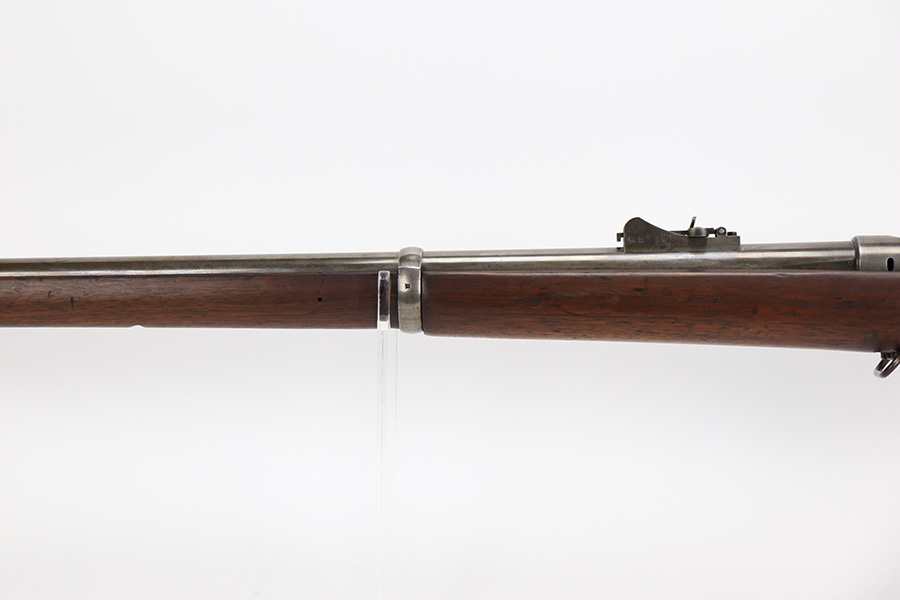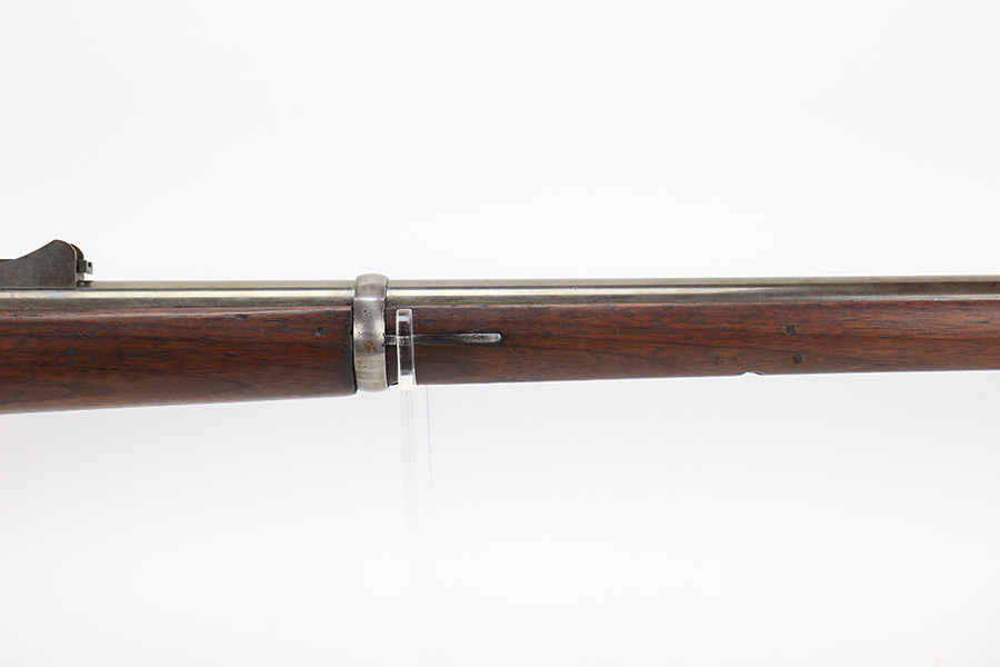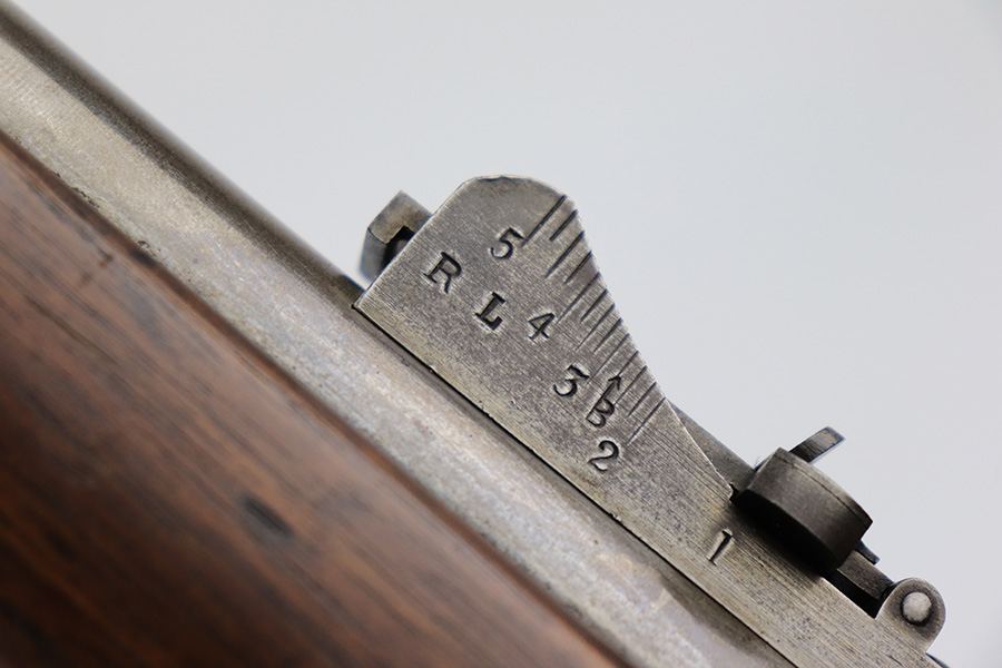 6/6/23 – This is an original Remington-Lee Navy Model 1885 bolt action rifle. This rifle was patented by the same man (James Paris Lee) who is known for the Lee-Enfield rifles made for British use during WW1 and WW2. The model 1885 was not nearly as popular, and was only used by the U.S. Navy from 1885-1892. Despite being a revolutionary design at the time, the US military switched to the Krag M1892 shortly after their first order of these rifles in 1885. The rifle features a 5 round box magazine and adjustable rear sight. The receiver is stamped “U.S.N. No 1256 W.W.K.” with an anchor logo. There’s also a Remington patent stamp and serial number 50212. The bolt and receiver have matching star shaped acceptance proofs. The metal has traces of original finish, but most of the finish is worn away leaving a steel color underneath. However, there’s minimal surface patina and no rust or pitting, making this example in great overall condition for its’ age. The wood is excellent with some normal signs of use and aging, but no cracks or notable issues. The bore has nice rifling, but there is some textured areas and pitting within the grooves about 10 inches down from the muzzle of the bore. We rate at 7/10 overall. Mechanically sound and comes with an original clean rod, as shown.