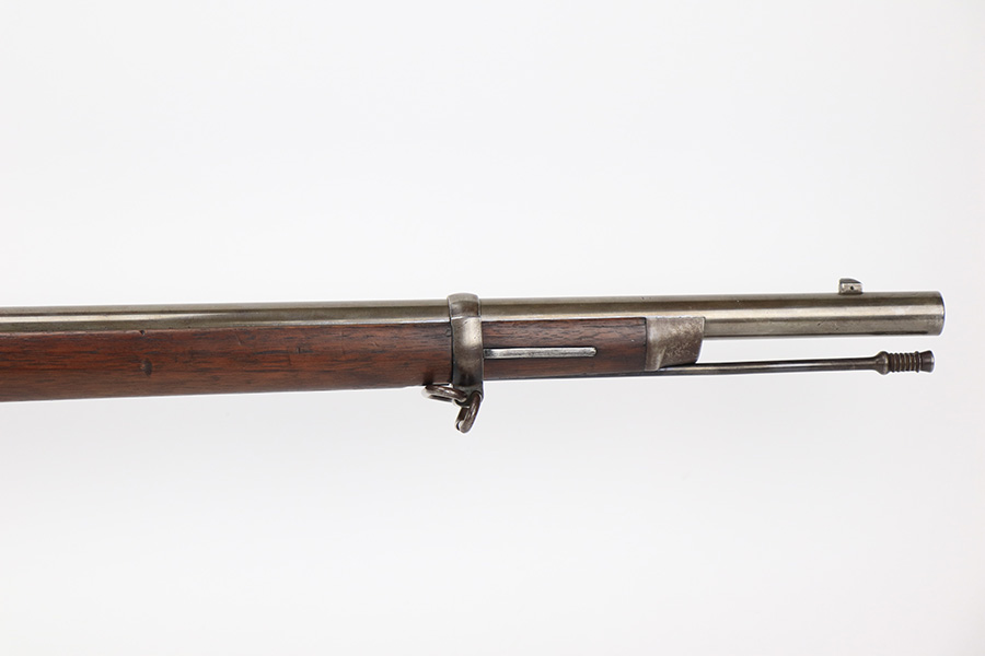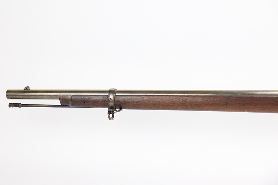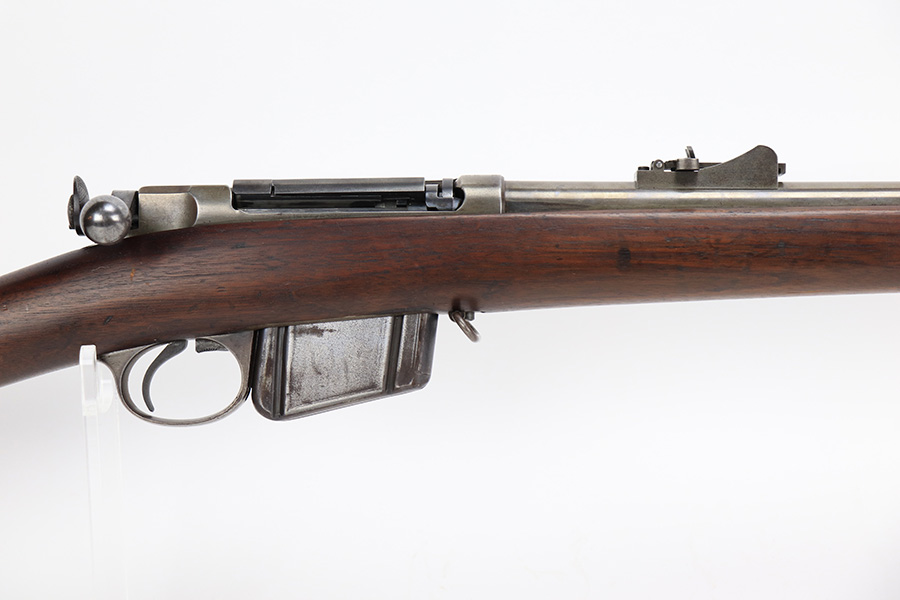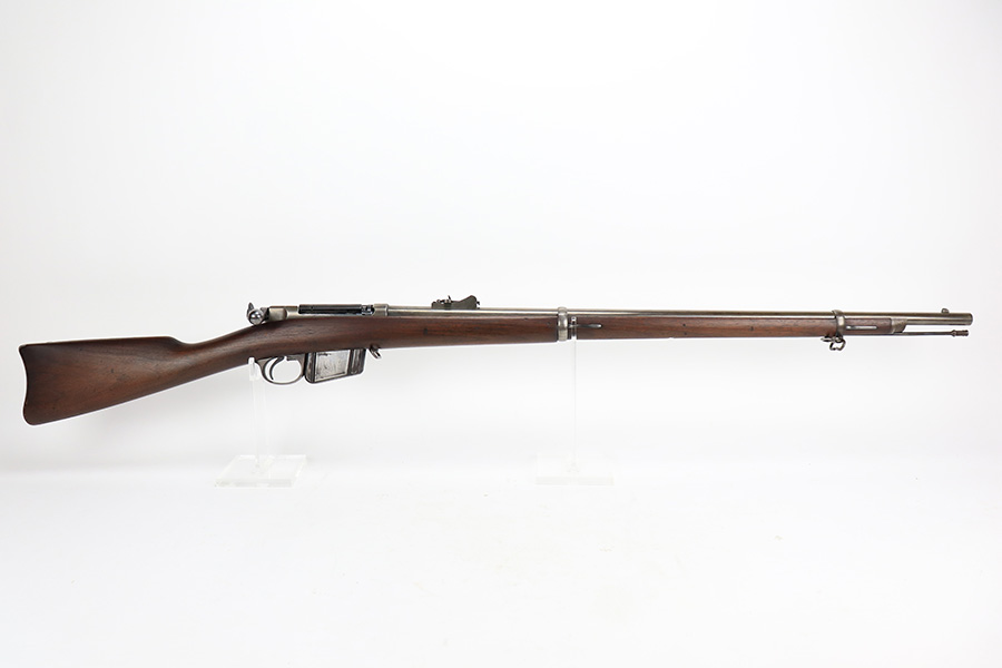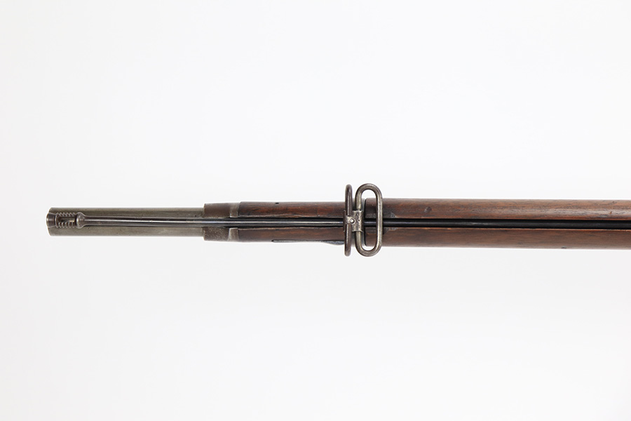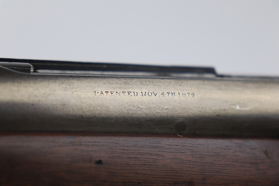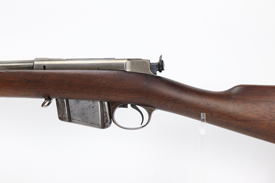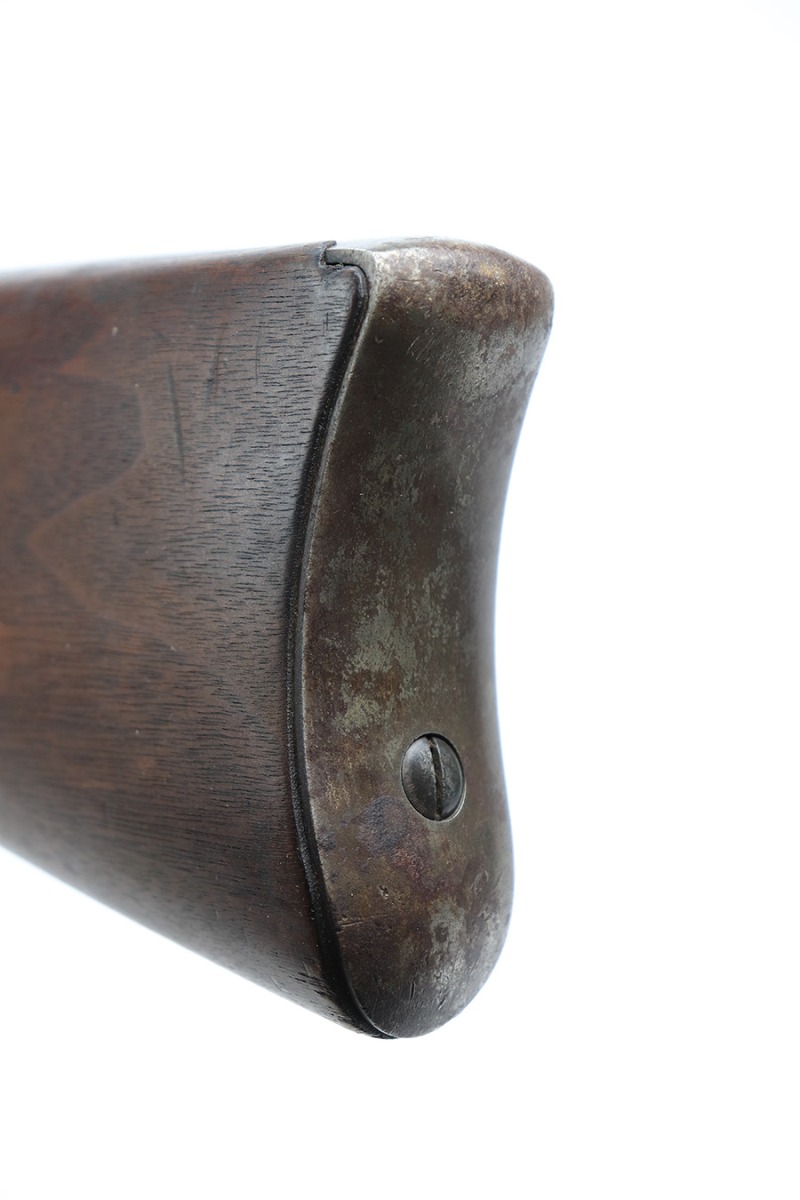 6/6/23 – This is an original Remington-Lee Navy Model 1885 bolt action rifle. This rifle was patented by the same man (James Paris Lee) who is known for the Lee-Enfield rifles made for British use during WW1 and WW2. The model 1885 was not nearly as popular, and was only used by the U.S. Navy from 1885-1892. Despite being a revolutionary design at the time, the US military switched to the Krag M1892 shortly after their first order of these rifles in 1885. The rifle features a 5 round box magazine and adjustable rear sight. The receiver is stamped “U.S.N. No 1256 W.W.K.” with an anchor logo. There’s also a Remington patent stamp and serial number 50212. The bolt and receiver have matching star shaped acceptance proofs. The metal has traces of original finish, but most of the finish is worn away leaving a steel color underneath. However, there’s minimal surface patina and no rust or pitting, making this example in great overall condition for its’ age. The wood is excellent with some normal signs of use and aging, but no cracks or notable issues. The bore has nice rifling, but there is some textured areas and pitting within the grooves about 10 inches down from the muzzle of the bore. We rate at 7/10 overall. Mechanically sound and comes with an original clean rod, as shown.