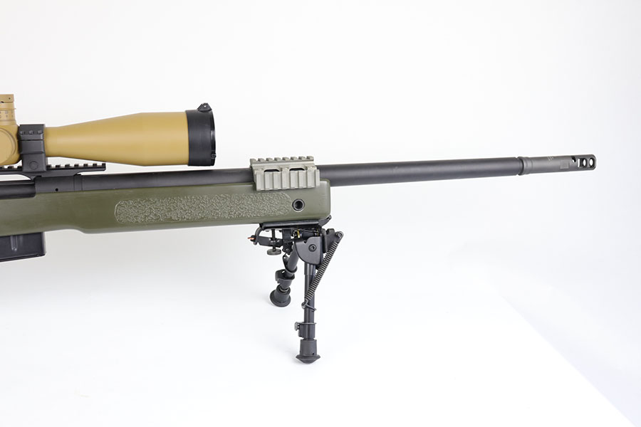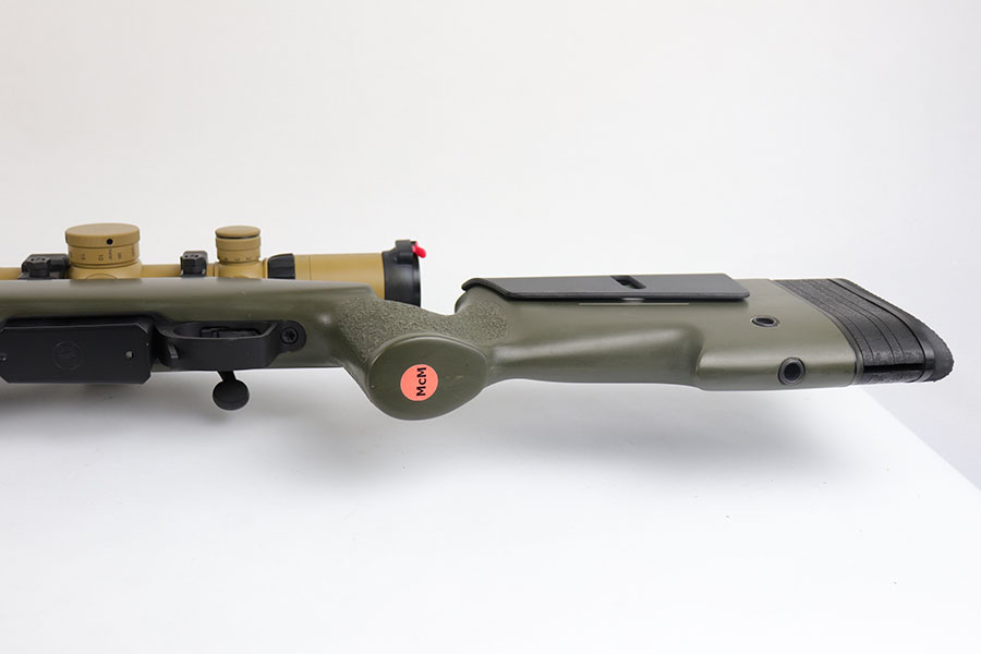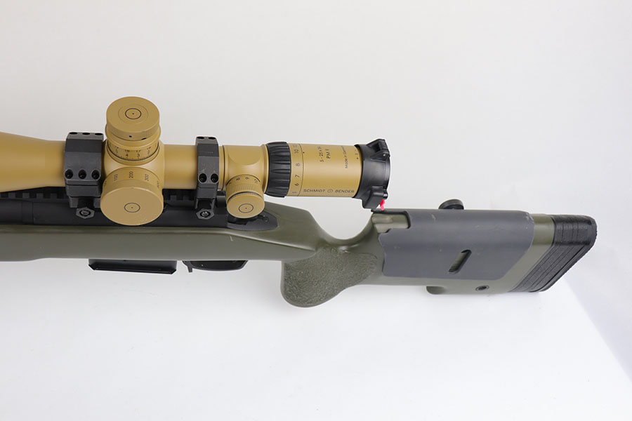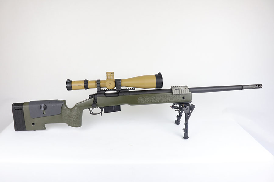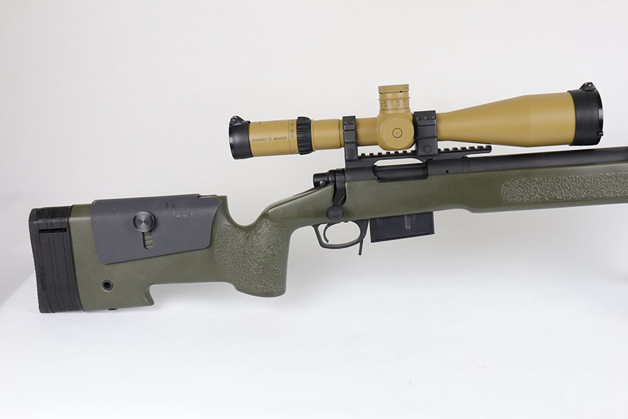 7/3/20 – The M40 rifle is a bolt-action sniper rifle used by the United States Marine Corps, and dach M40 is built from a Remington 700 bolt-action rifle, and is modified by USMC armorers at Marine Corps Base Quantico, using components from a number of suppliers. This example is built custom to exactly match the specs of the USMC military examples. 27 inches from muzzle brake to end of barrel. Schmidt Bender PM II 5-25×56 scope in mint condition. Buttery smooth action. Believe this is the M40A5 variation based off scope. Bipod added and attached. Comes with spare magazine.