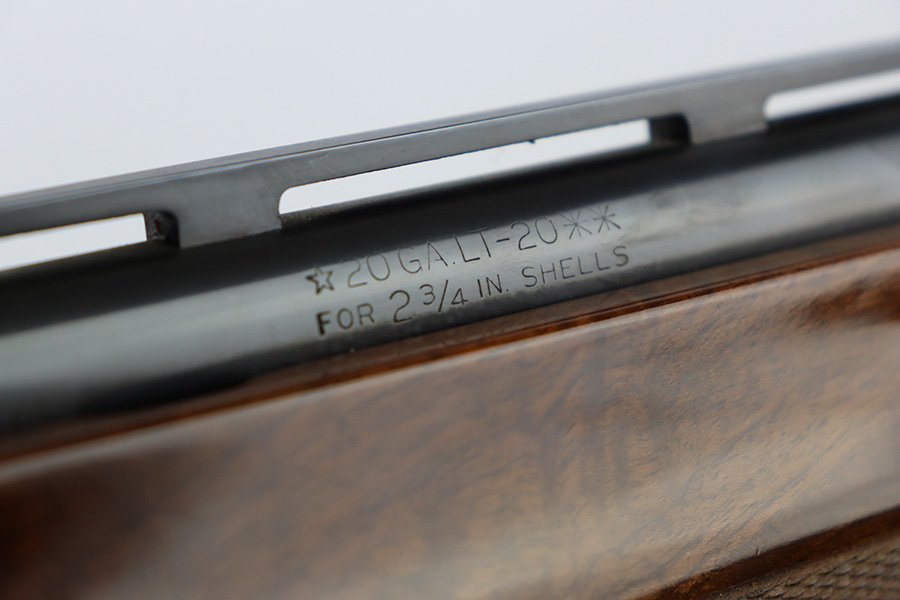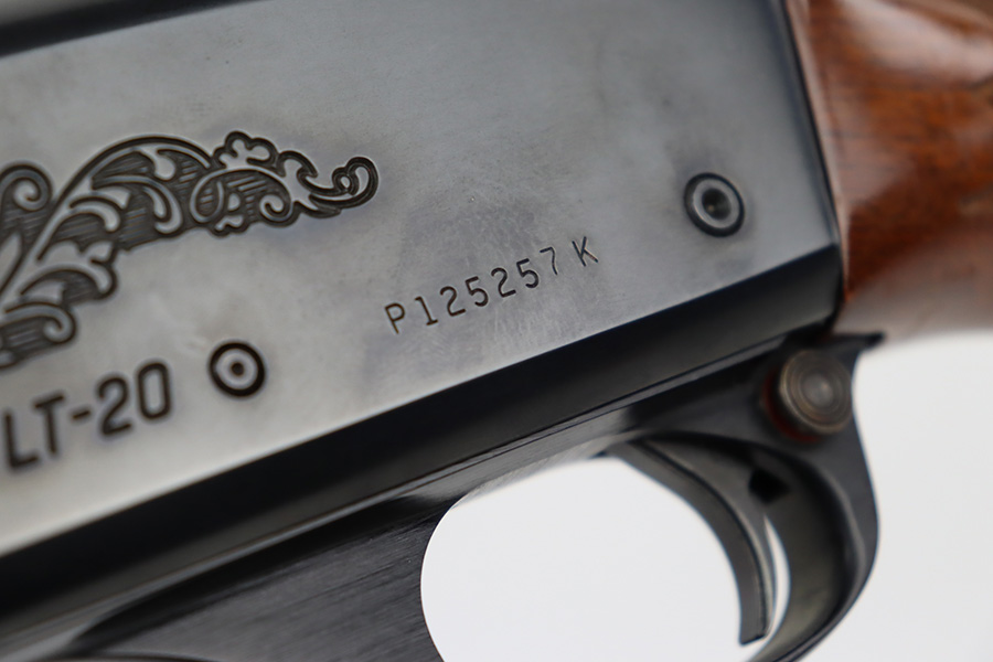 1/25/24 – This is an excellent Remington Model 1100 LT-20 semi auto shotgun, chambered in 20 GA. 25″ barrel, 14″ LOP. The date code on the barrel is “CG”. The metal parts have retained virtually all of their bluing with just a few very light surface scratches on the receiver and an area of light surface rust around the breech. Excellent wood furniture. Mint bore.