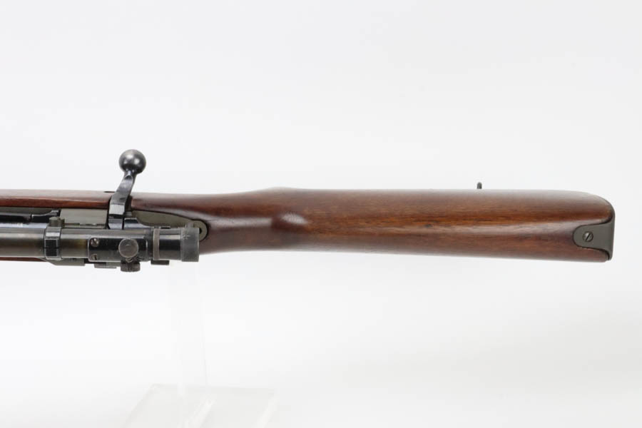 08/01/2024 – For sale is a Remington Model 1903-A4 sniper that was used by US forces in WW2 and Korea. The rifle is in great condition overall with a nice parkerized finish on the metal. The stock is in great condition and was lightly sanded. The cross cannons and FJA are barely visible on the left side. The bottom of the stock in front of the magazine also has proper Remington proofs. The Remington roll stamps on the receiver are correctly offset for the scope base. The finish on the scope is has honest wear and the lens has a very slight haze to it. The bore is very bright with great rifling.