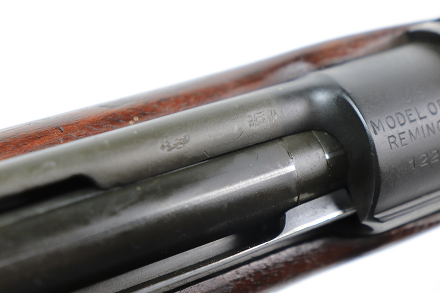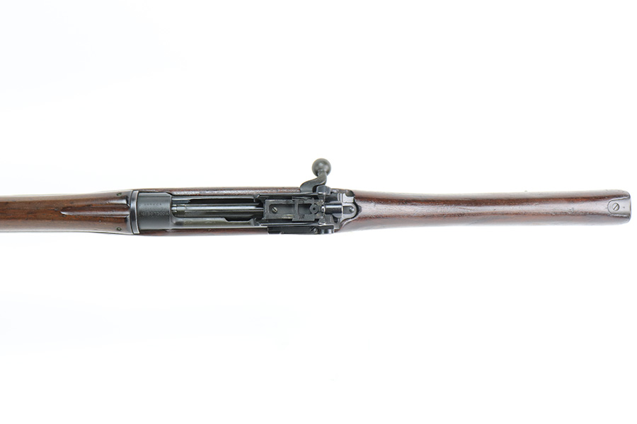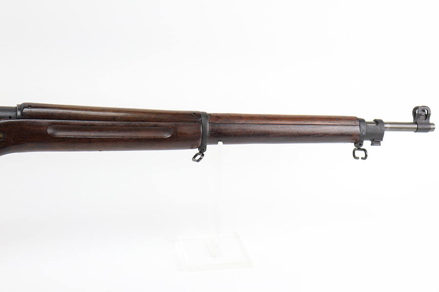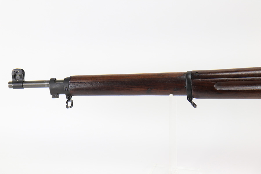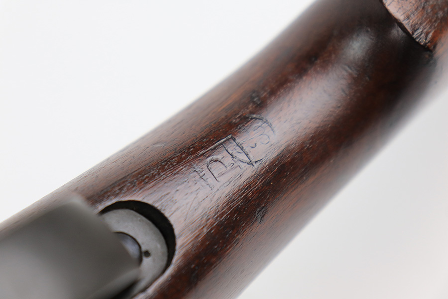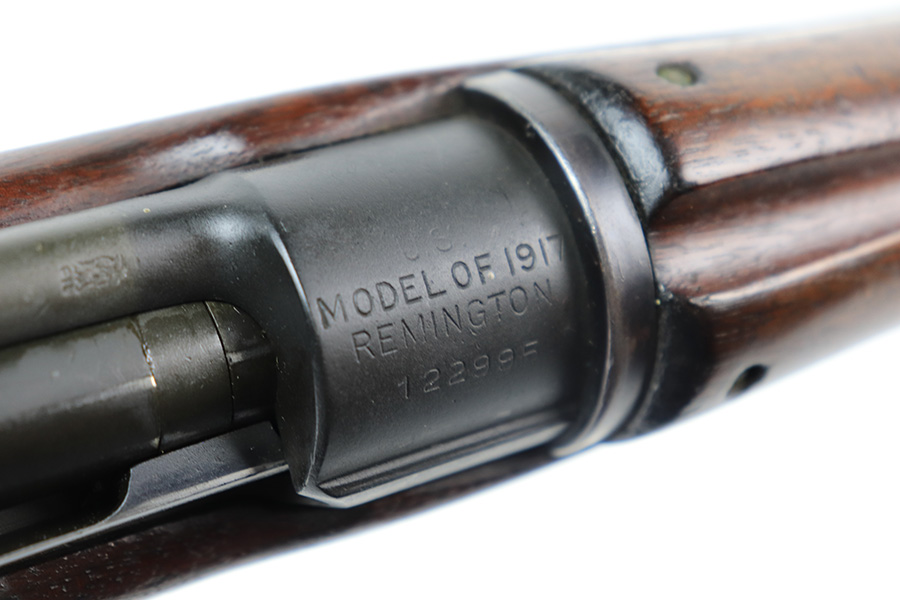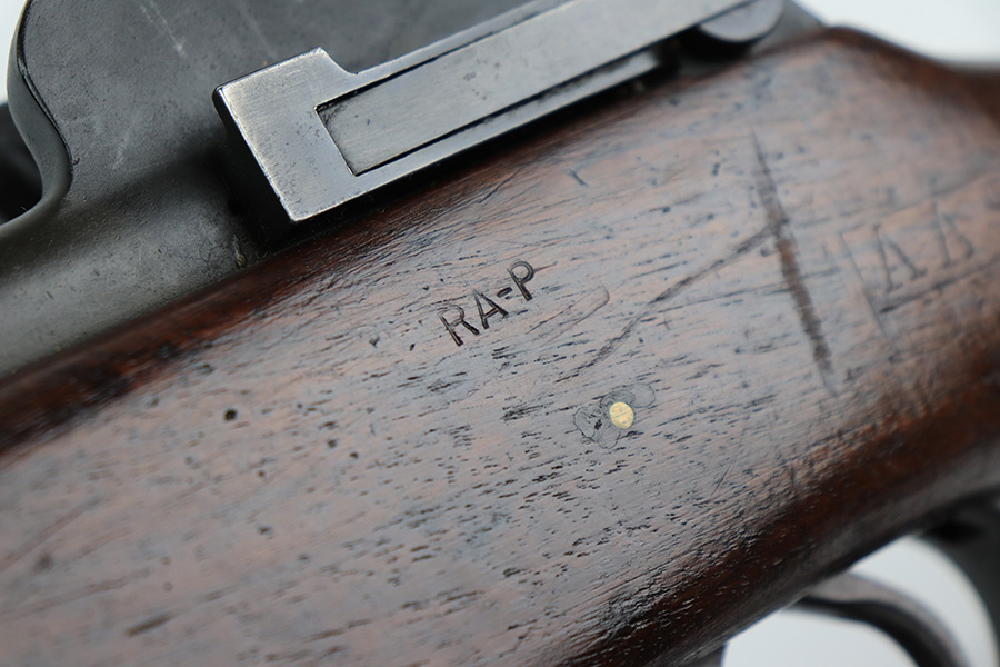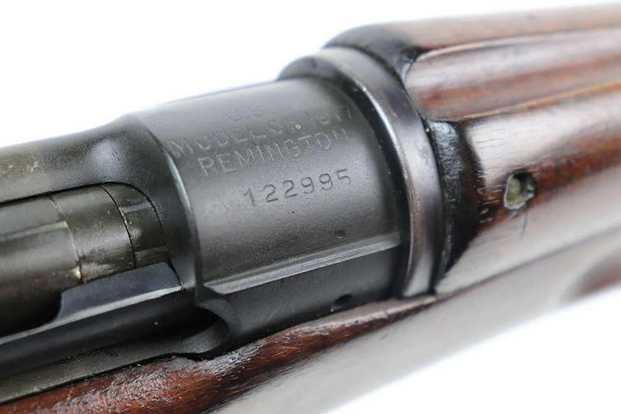 3/16/22 – This is a very nice example of a Remington M1917 rifle from World War I. It went through the rebuild process at seemingly several arsenals, based on the stock markings. Flaming bomb on receiver, bolt and barrel. Barrel is JA maker marked. Excellent parkerized finish throughout. Strong, shiny bore. Stock is in great condition with minor dings and handling wear.