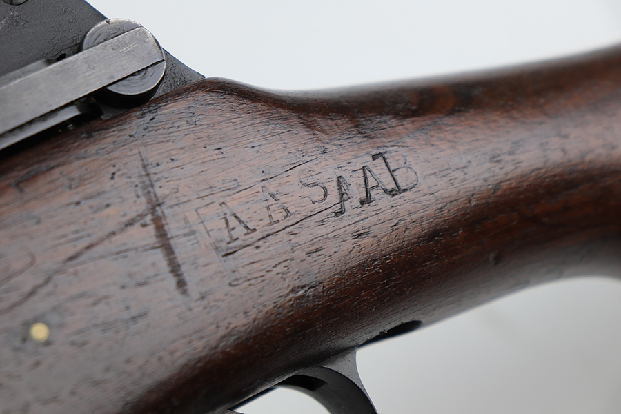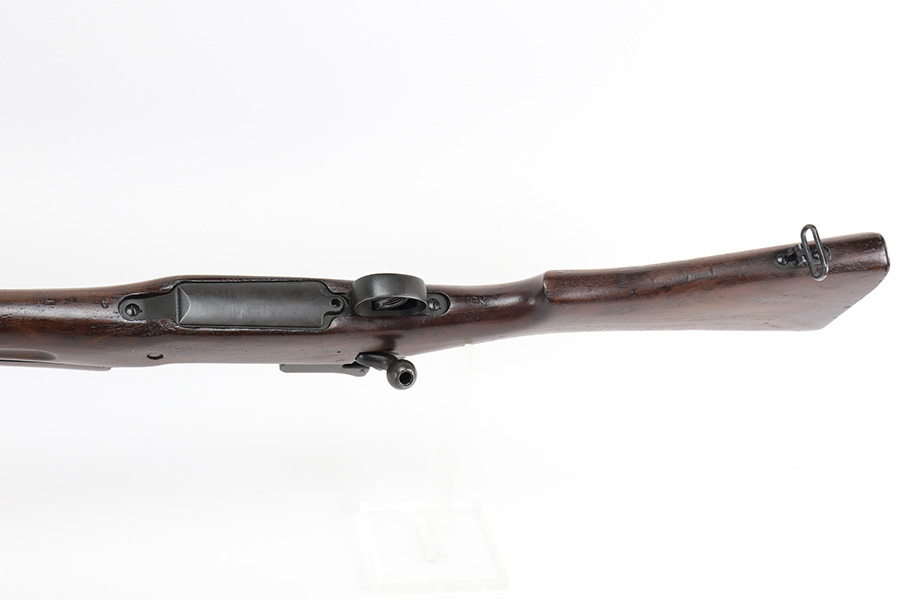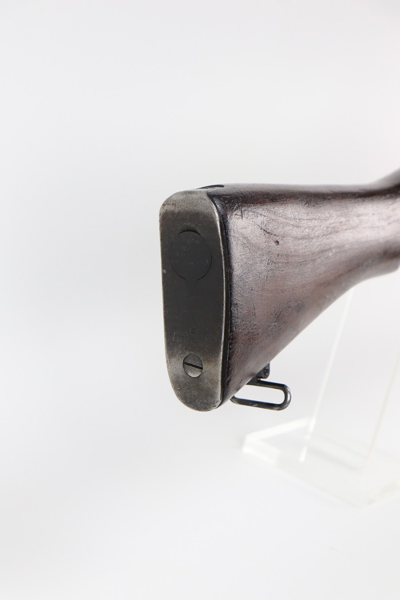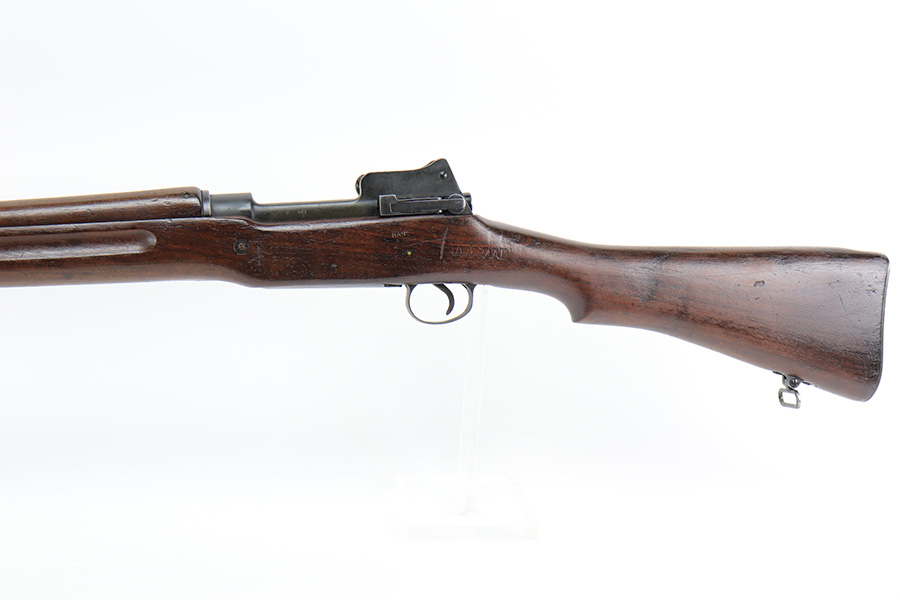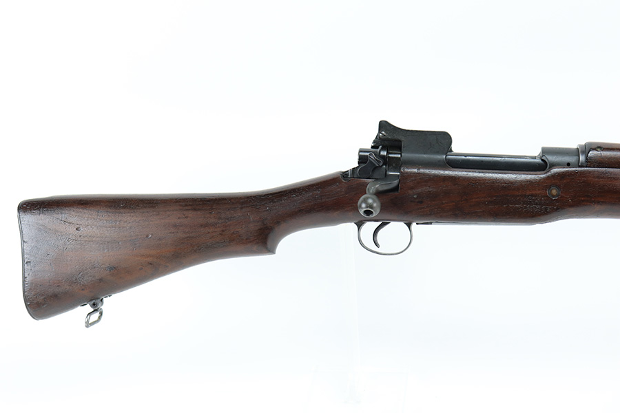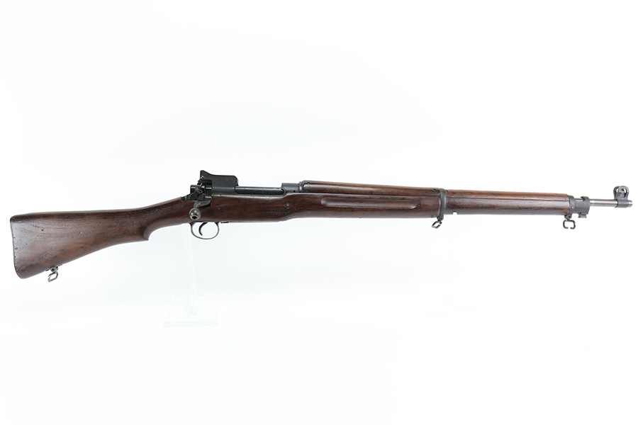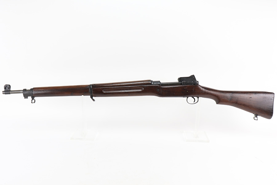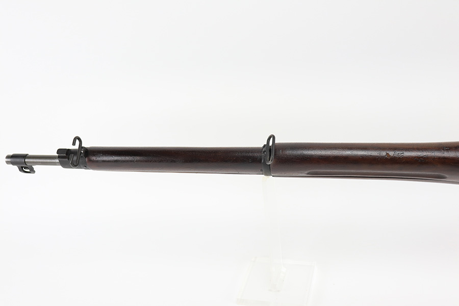 3/16/22 – This is a very nice example of a Remington M1917 rifle from World War I. It went through the rebuild process at seemingly several arsenals, based on the stock markings. Flaming bomb on receiver, bolt and barrel. Barrel is JA maker marked. Excellent parkerized finish throughout. Strong, shiny bore. Stock is in great condition with minor dings and handling wear.
