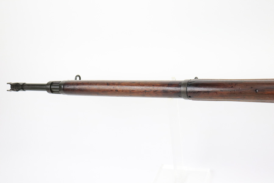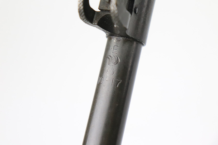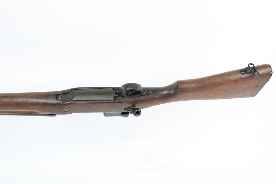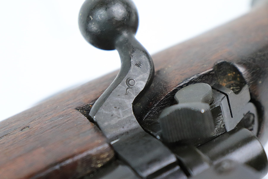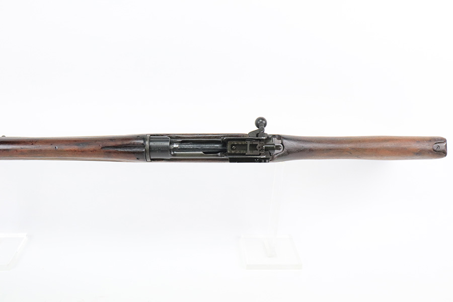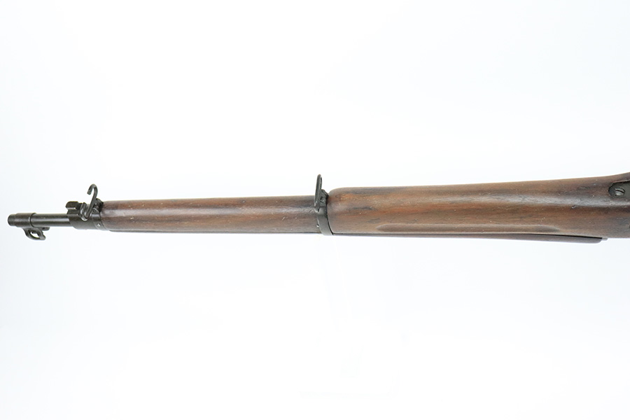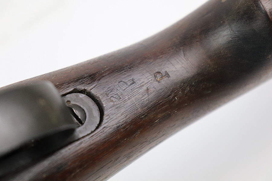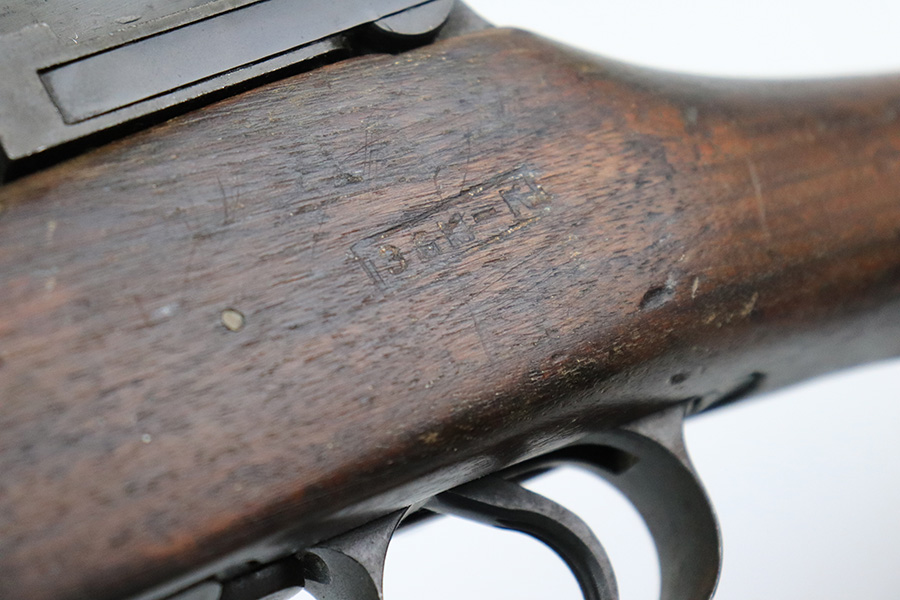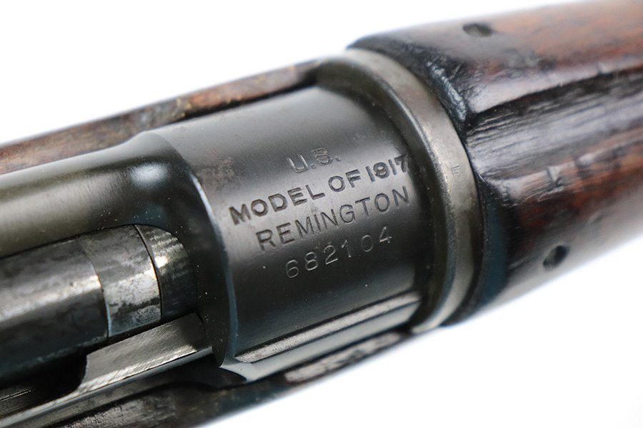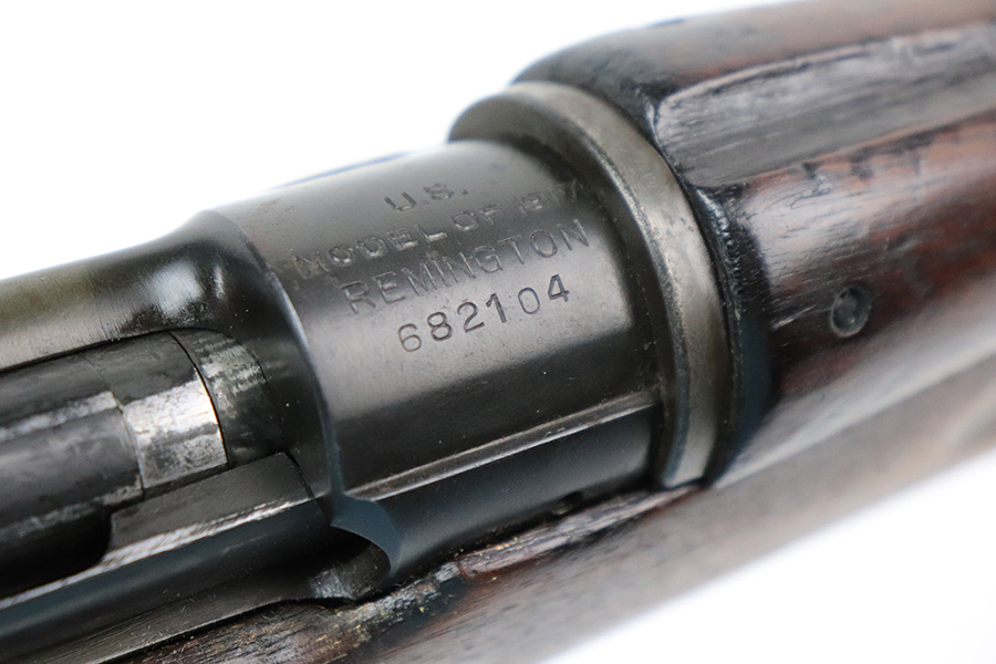 6/13/22 – This is a nice example of a Remington Model 1917 rifle issued to the US military during WW1. The barrel is Eddystone marked and is dated October of 1917. The bolt is marked Eddystone as well and has a flaming bomb military proof. The stock is marked “3GM-K”. There is much debate in the collector community as to what this marking actually means, but most believe that it is a rework stamp. Overall, the gun is in nice condition. There are areas of tiny pin-pricking and one spot of oxidation on the receiver. Minor scratchy wear on the barrel and barrel bands. Some minor discoloration on the floor plate. Noticeable wear around the edges of the butt plate. The stock is nice but is covered in what looks like tiny white mold spores. The bore has good rifling, but there are spots of oxidation and small pits throughout.