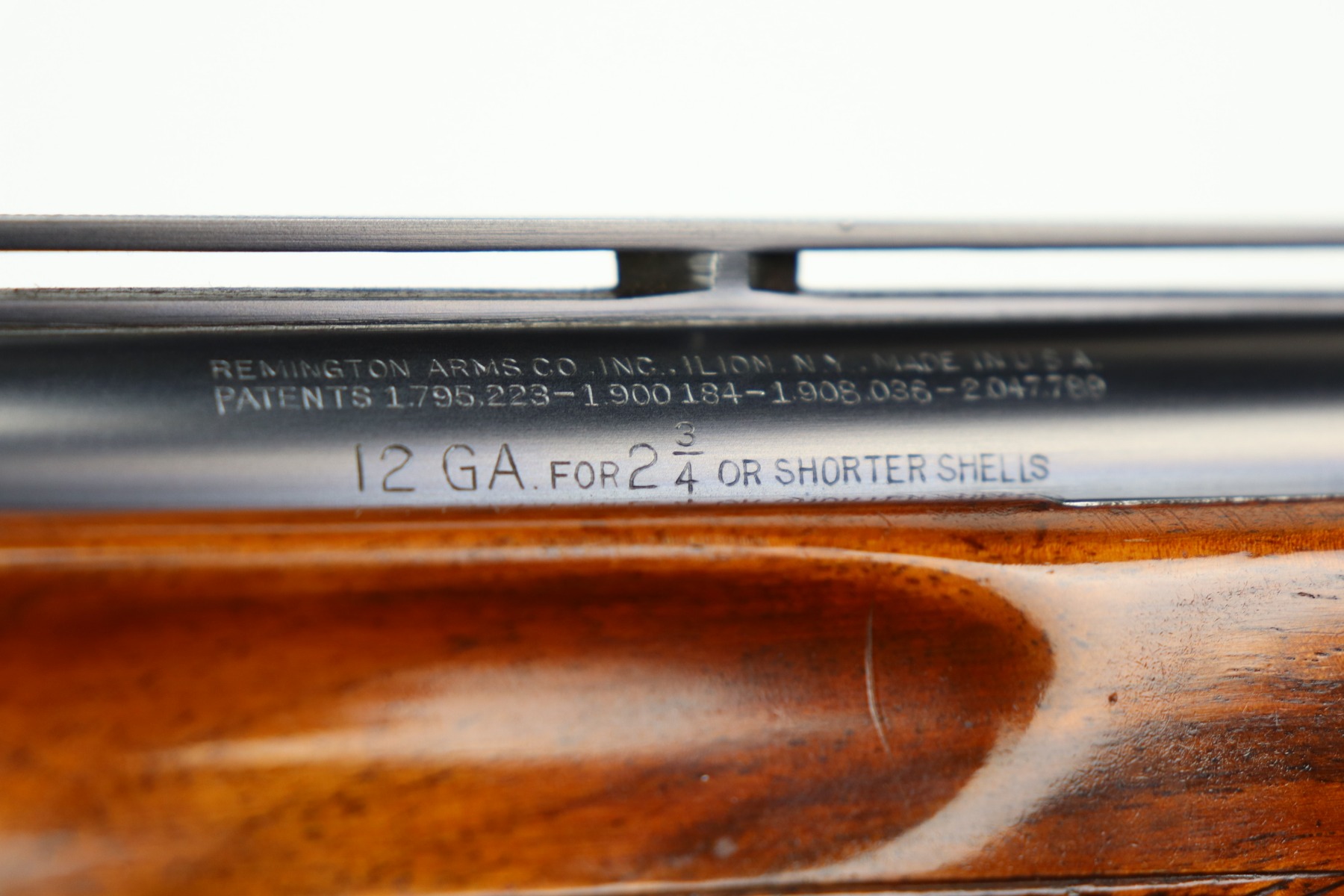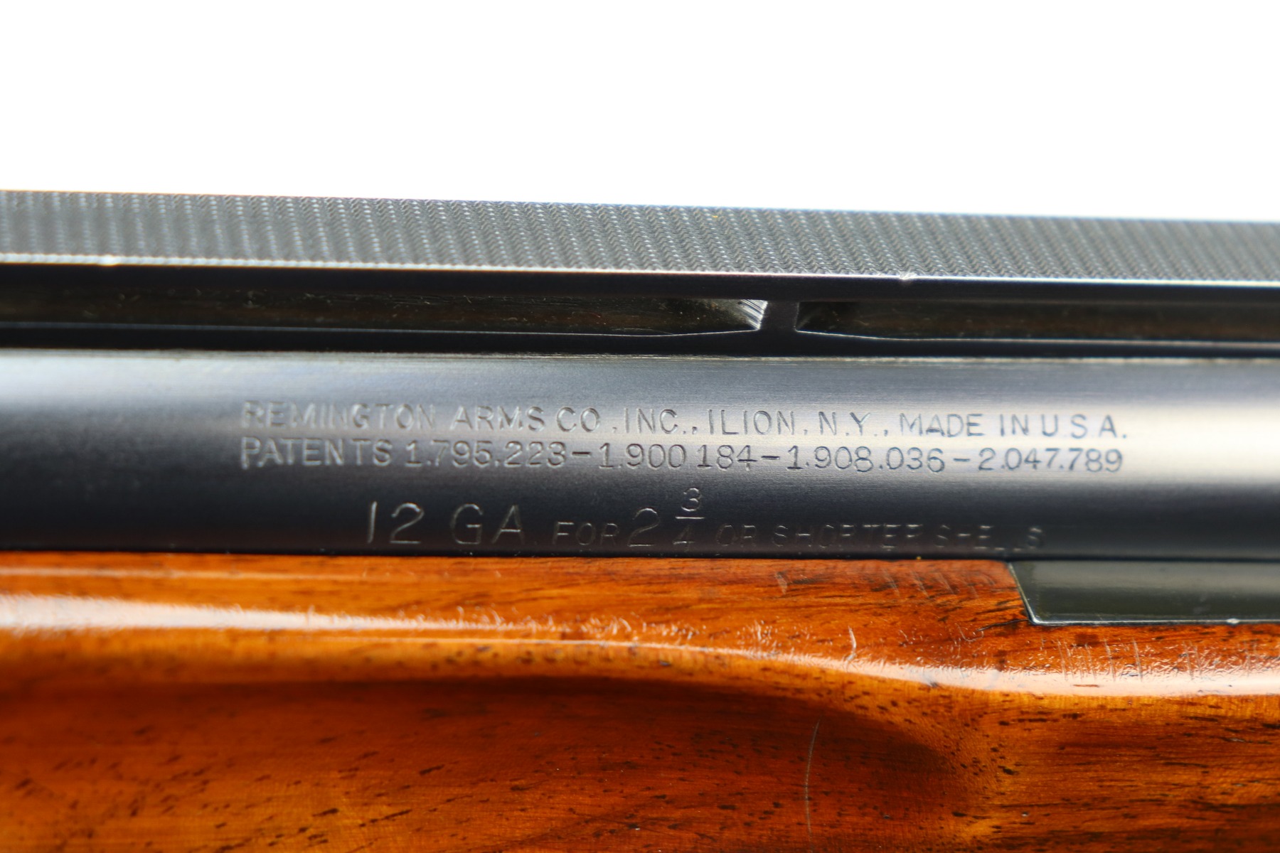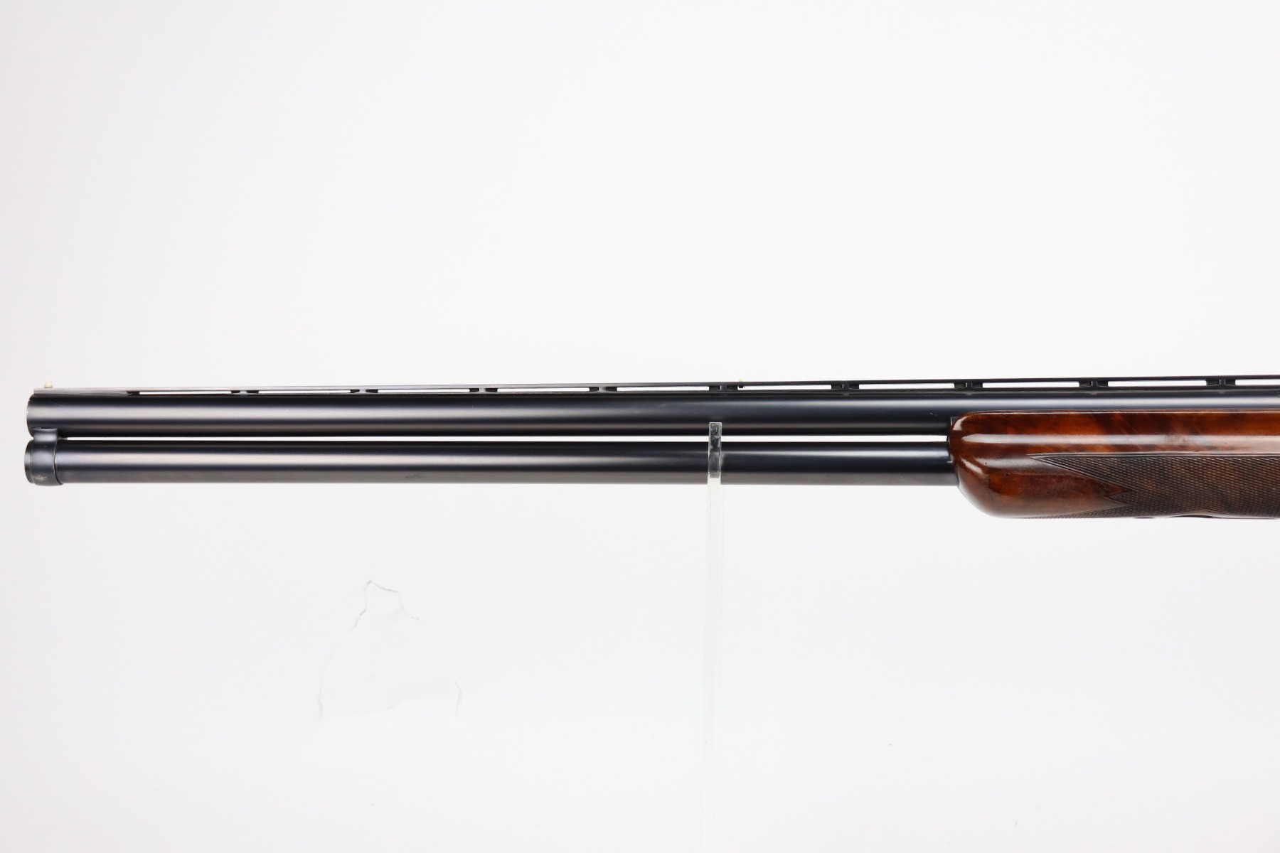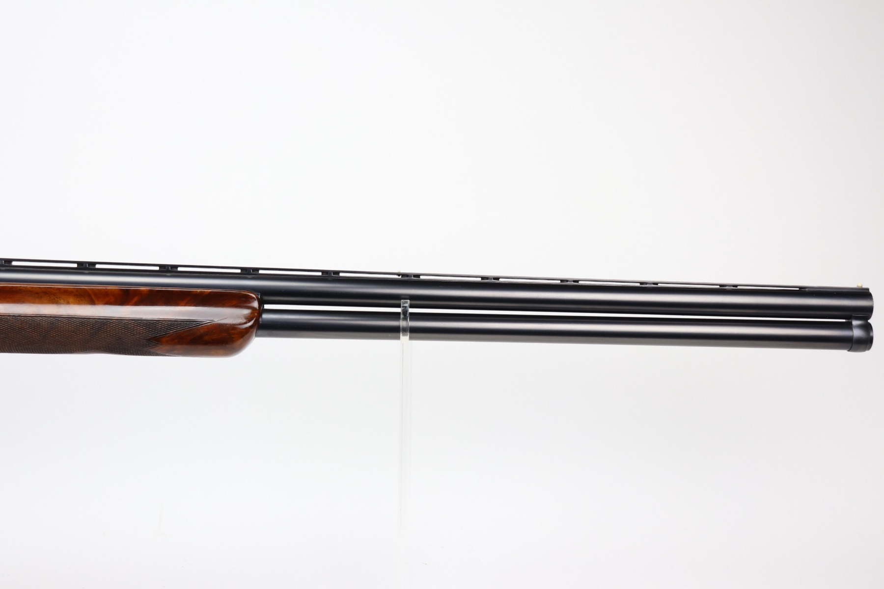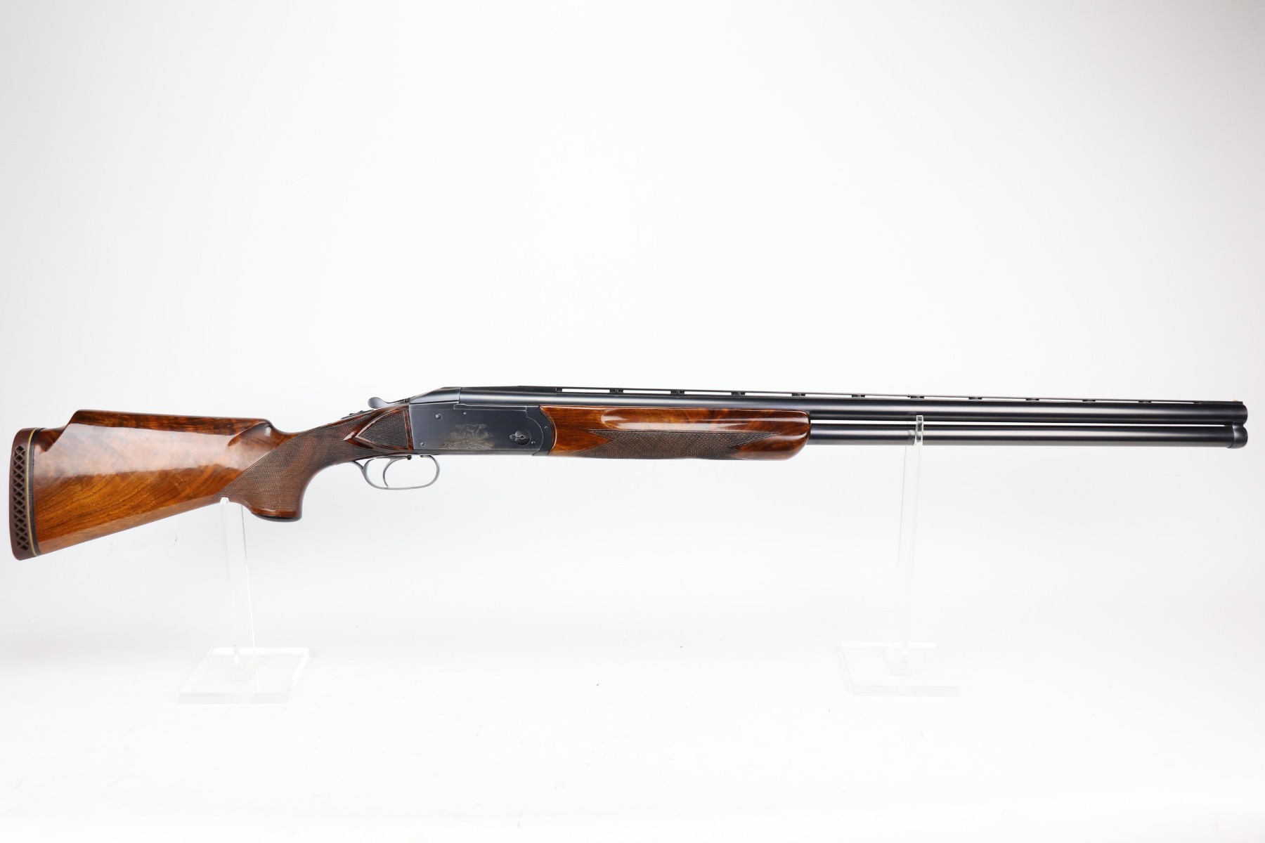 5/24/21 – This is an excellent example of a Remington Model 32TC over/under shotgun, made in 1937/38. This one is rare as only about 5,000 were made. The sides of the receiver feature a hunting dog scene. 30 inch barrel, full choke, 14.5 inch length of pull. Improved Miller Trigger. Someone’s name and place of birth is engraved on the left side of the receiver. The gun has retained almost all of its original bluing. There is minor muzzle wear, an area of wear on the right side of the receiver, and a scratch on the left side of the receiver. The stock is excellent – just a few minor dings. Small crack in left side of forend. The bores are minty. The sight bead position has been changed from the factory original location, likely just modified based on preference by a previous owner.