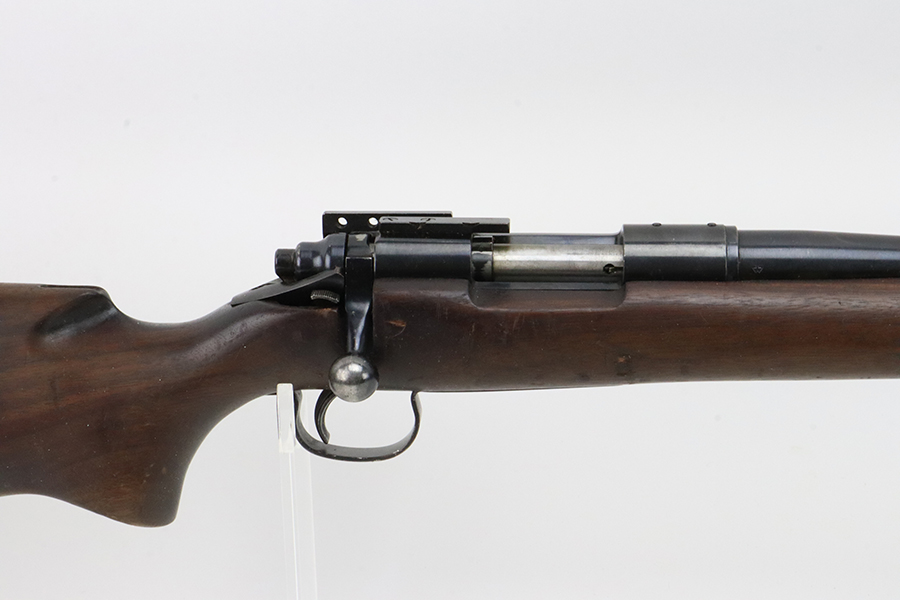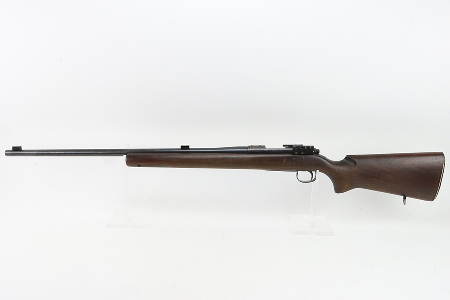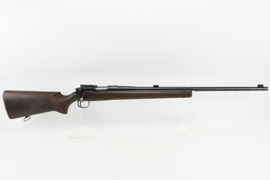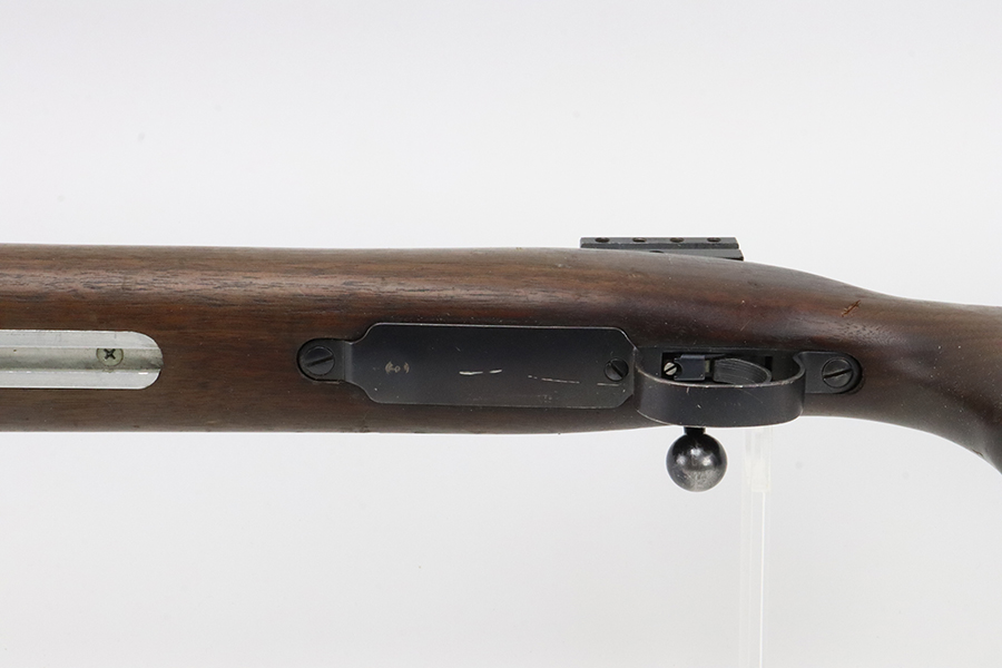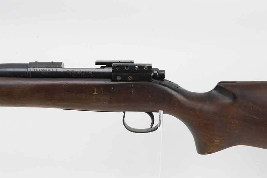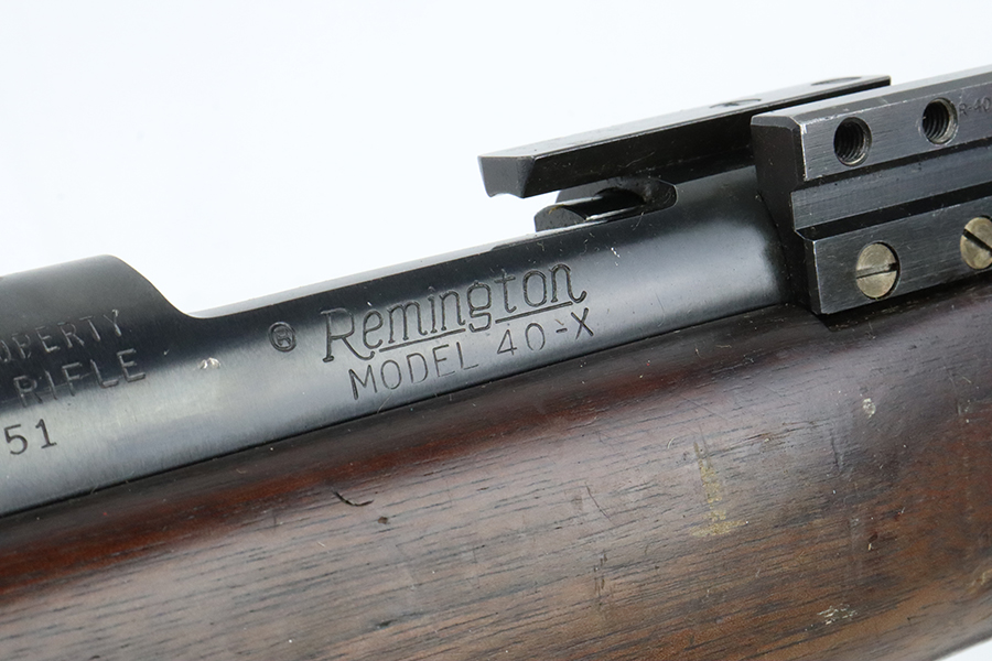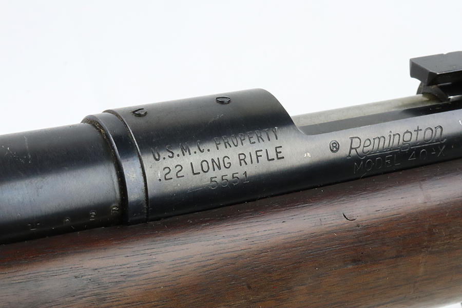 03/04/2024 – This is a very rare Remington Model 40-X rifle with U.S.M.C. PROPERTY roll mark on the receiver, one of 2,200 produced. Introduced in 1955, this early 40-X wears a 28″ medium-heavy barrel with factory supplied scope blocks and has holes drilled for Redfield target sights. The bluing is original and in excellent condition with scratches to the finish up and down the barrel and receiver. Mint bore and terrific stock with no notable wear other than some handling marks on the wrist area. The rubber buttplate is in rough condition and is dry and cracking.