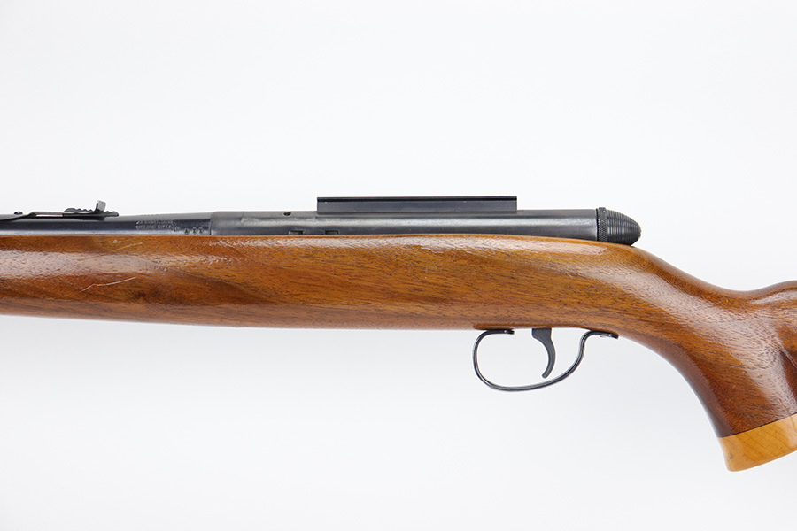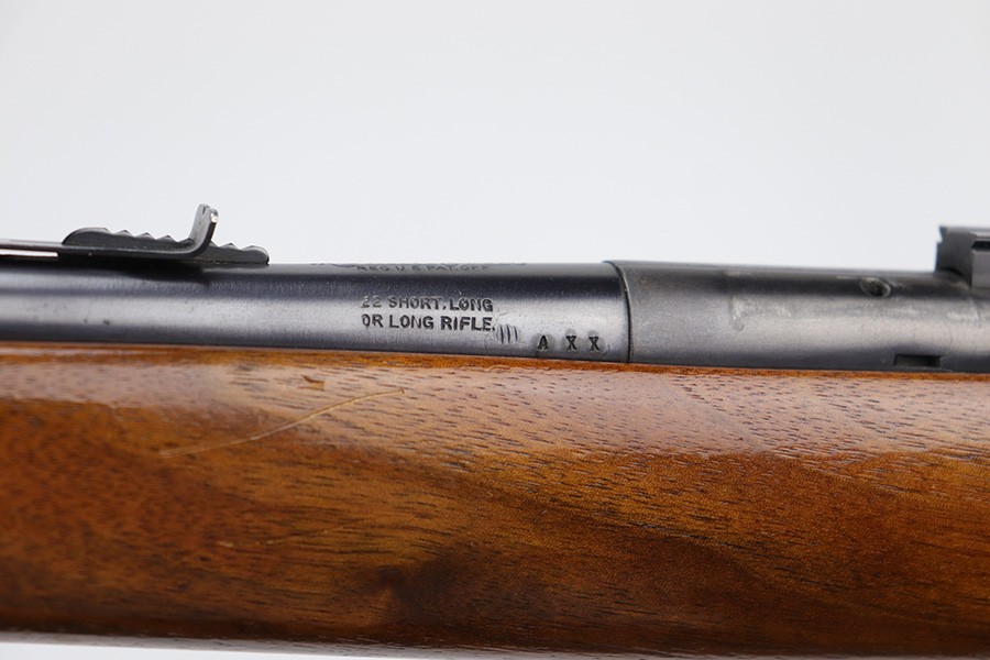 6/16/23 – This is an excellent example of a Remington Model 550-1 Semi Auto Rifle, chambered in .22 short, long, or long rifle. From the “AXX” date code, it was manufactured in March of 1951. The metal parts have retained about 94% of their original bluing with minor muzzle wear and some thinning on the receiver. A few small spots of oxidation along the barrel. Very nice replacement wood stock with a few minor scratches here and there. Mint bore.