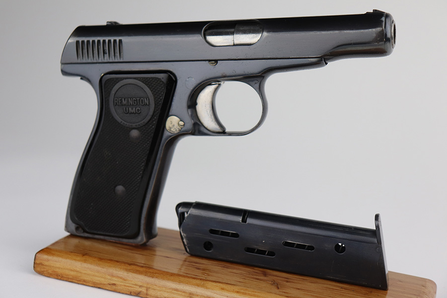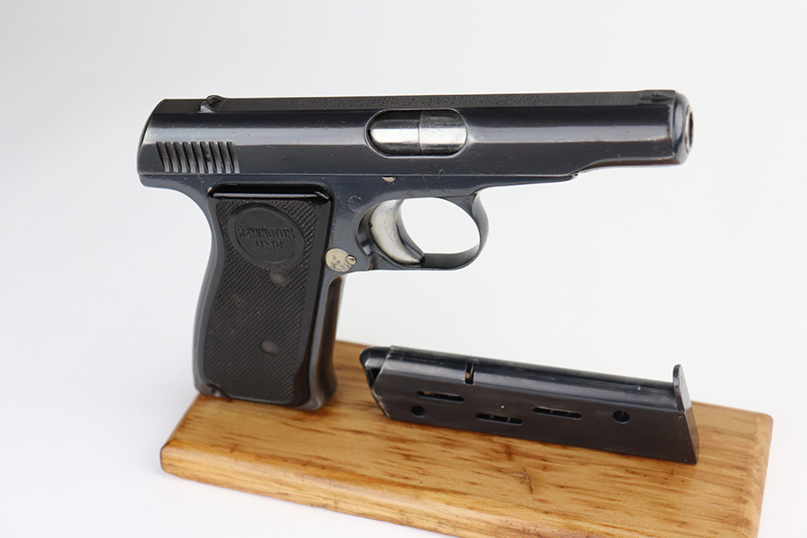 6/15/21 – This is a very nice example of a Remington UMC Model 51 manufactured in the 1950’s. The gun is all correct and has retained about 93% of its original finish. There is minor wear on the high edges of the slide and around the muzzle. There are some areas of spotty discoloration on the left side of the slide. Comes with excellent grips and a proper magazine. The bore has decent rifling with minor pin-pricking throughout.