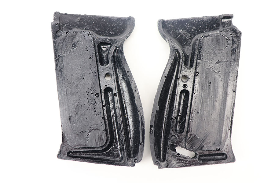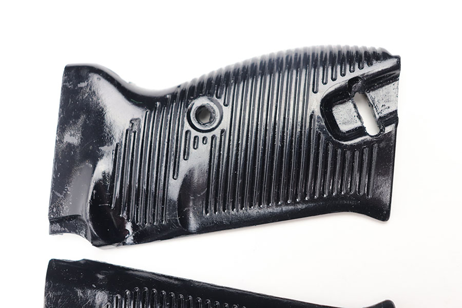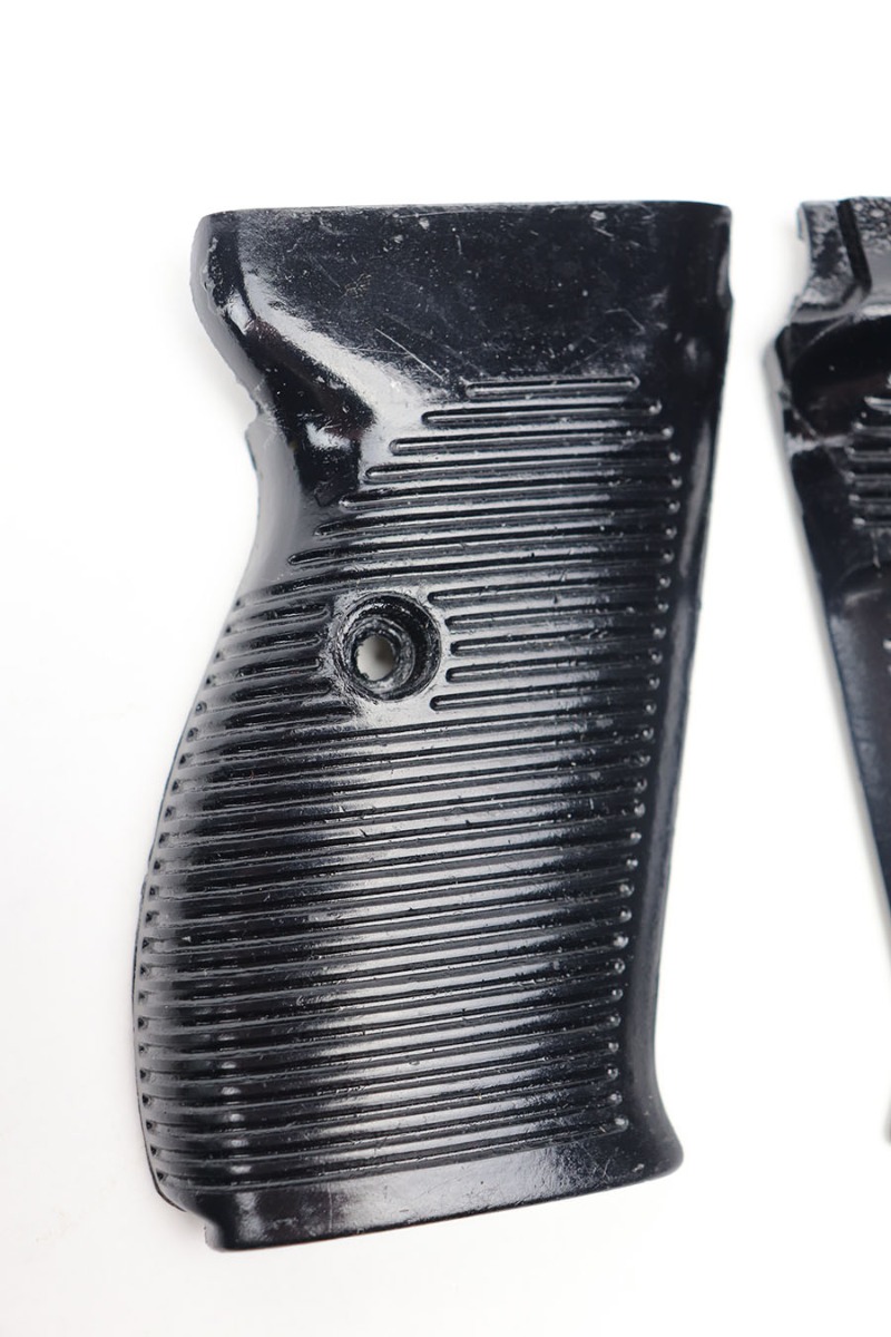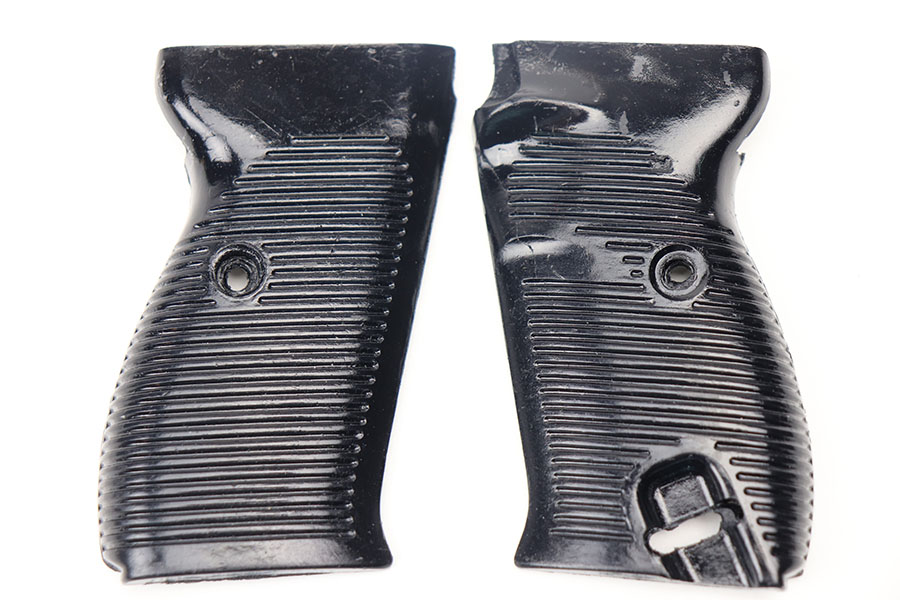 4/14/21 – This is a reproduction pair of P.38 grips. They look & feel like late WW2 posselt grips, but are definitely reproduction. They make for a great “range pair” or place holder. No screw included.