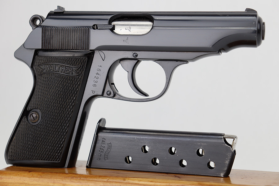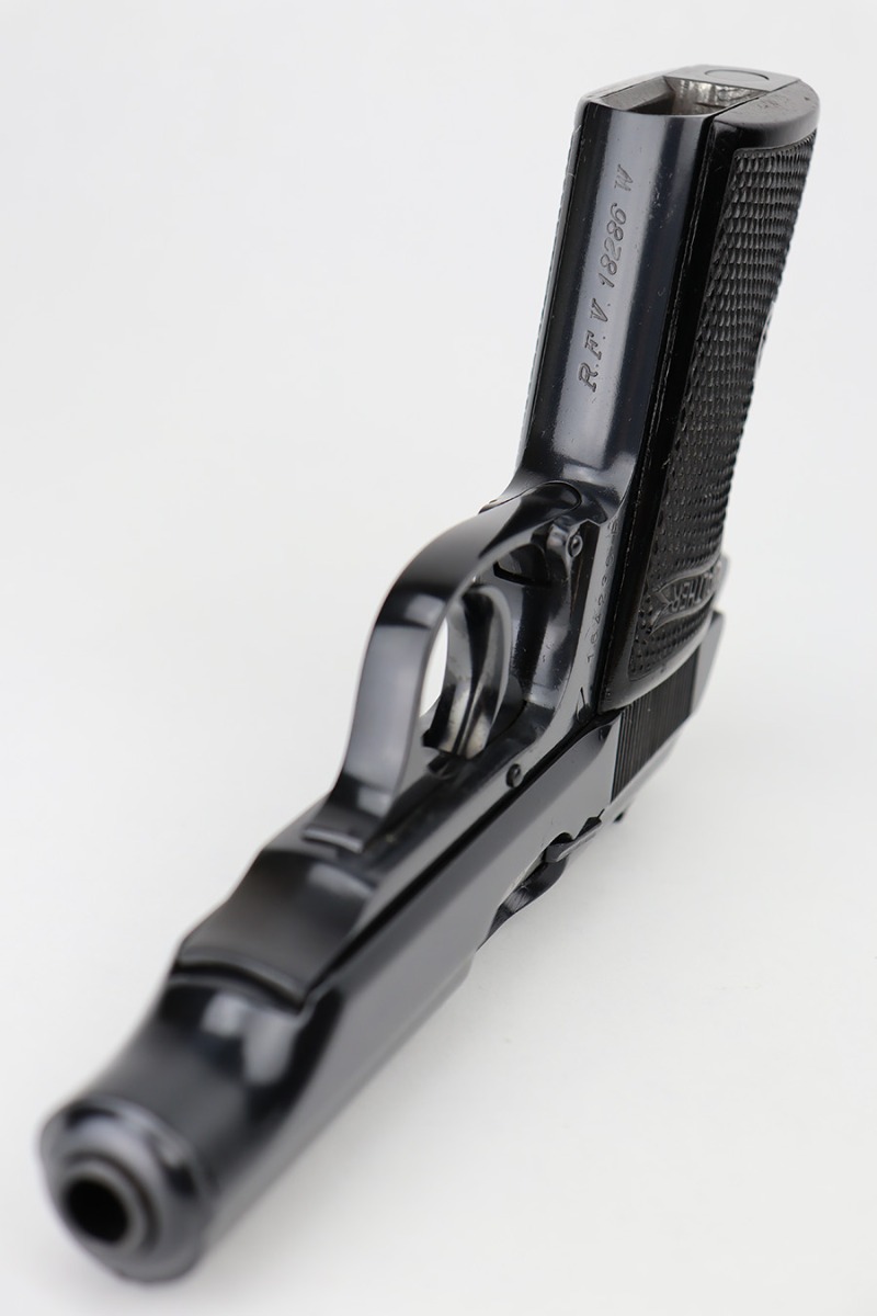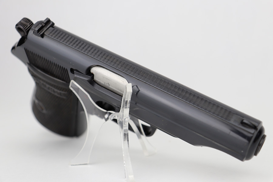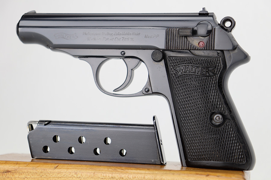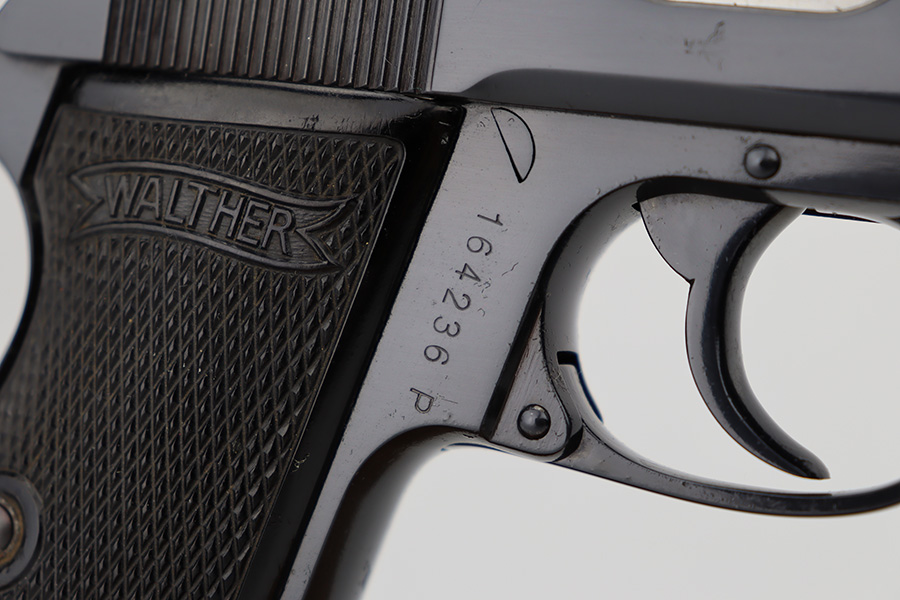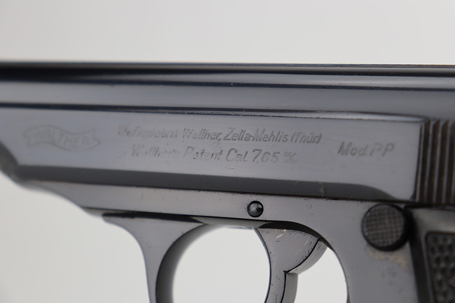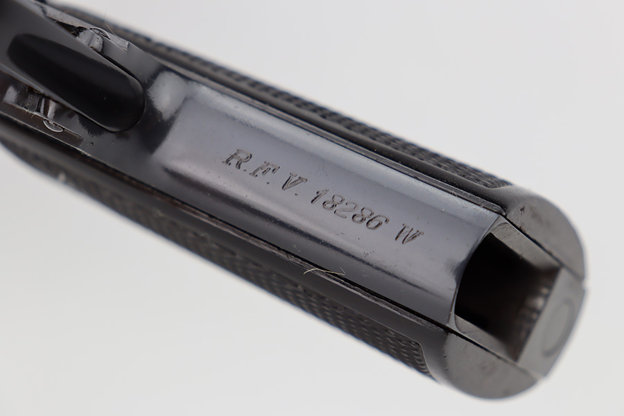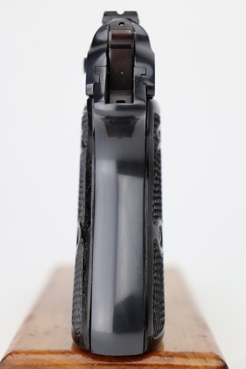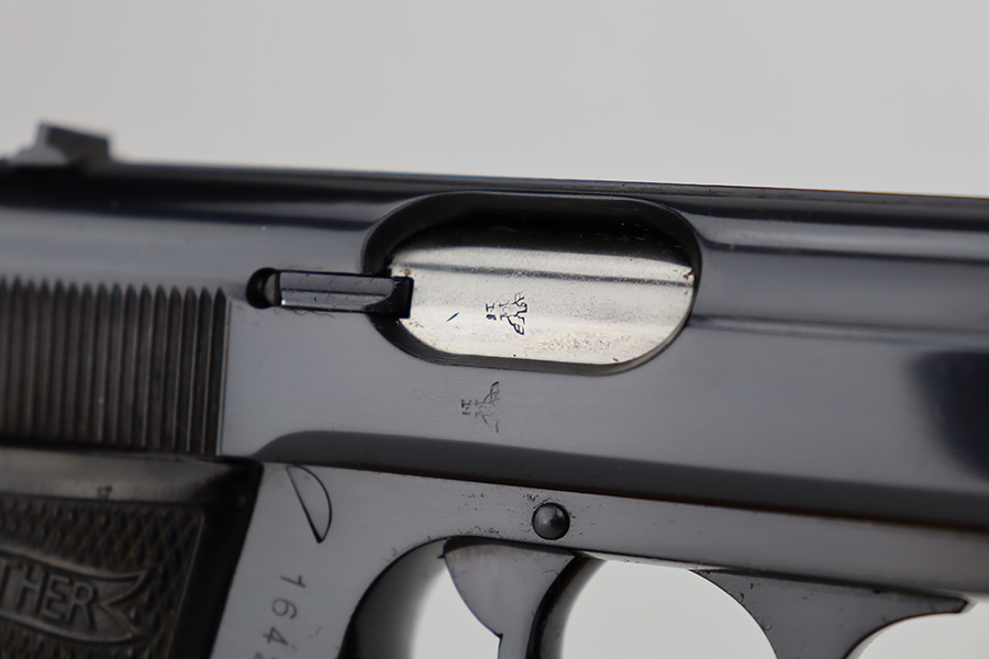 6/15/23 – This is a Walther PP designated for the Reichs Finanz Verwaltung. It is marked “R.F.V. 18286 W” on the front strap. This Nazi department was in charge of the borders as well as government financial matters – much like our own IRS and border police. This one has been completely re-blued, and there is virtually no actual finish loss. Fitted with excellent period-correct black bakelite grips and comes with a post-war magazine. Minty bore.