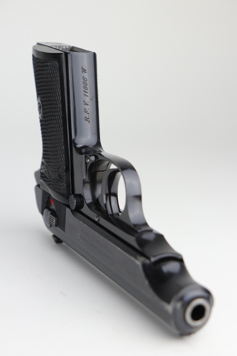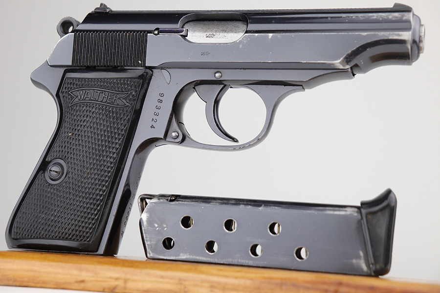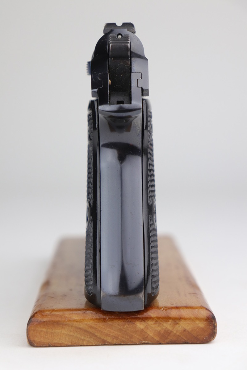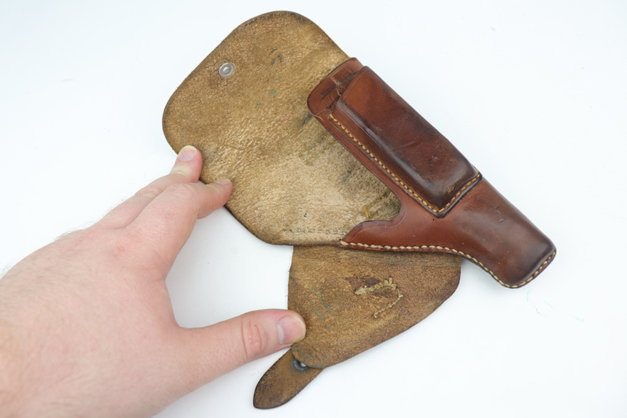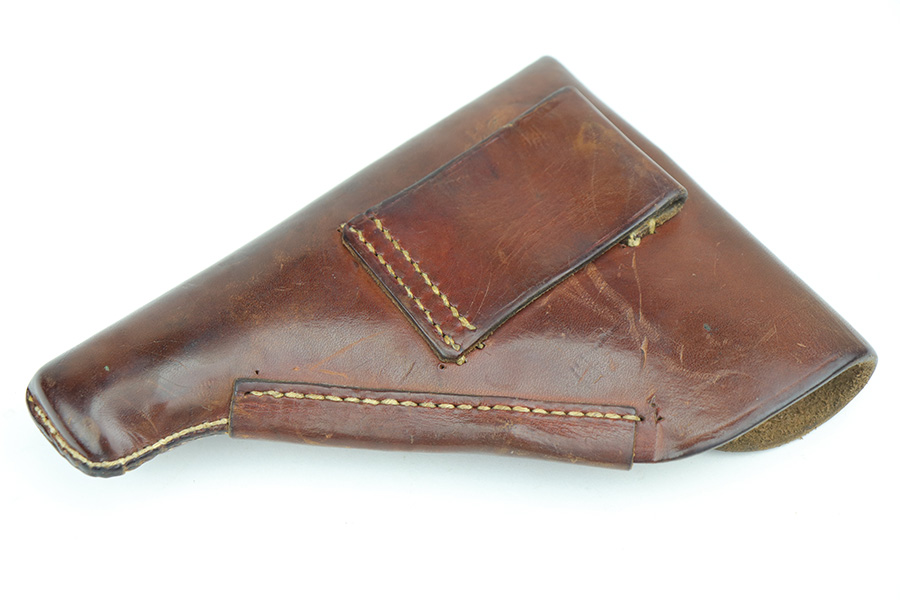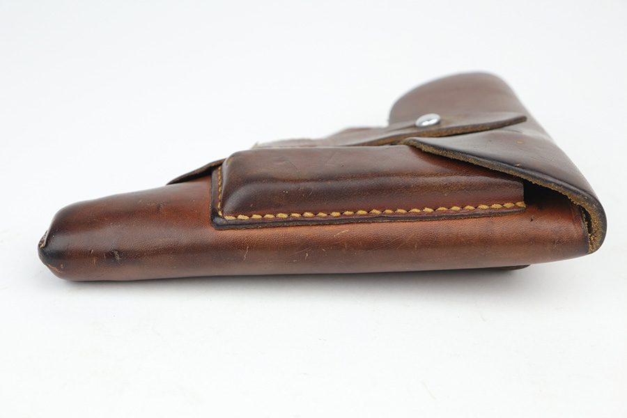 10/15/21 – This is a very nice example of a Walther PP rig manufactured in early 1938. This one has an “RFV” marking on the front strap, indicating it was issued to the Finance Bureau of the Third Reich. It is all matching and has the proper “Crown N” proofs. It comes with a nice unmarked holster, one finger extension magazine, and one flat-bottom magazine. It has retained about 92-93% of its high polish finish. Most of the wear is on either side of the slide, around the muzzle and edges. Also a little more on the bottom of the back strap. Excellent grips with no cracks. Minty bore.