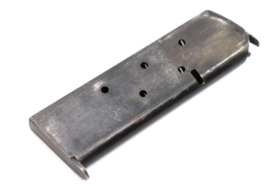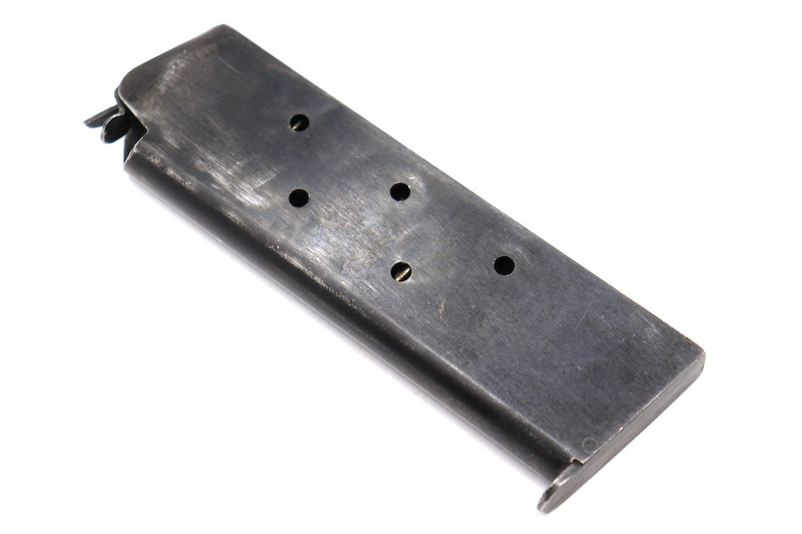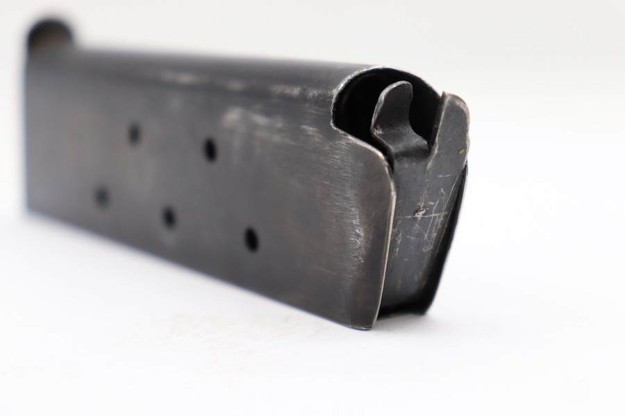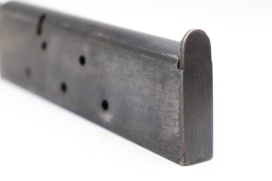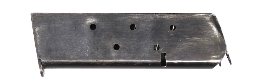 9/7/23 – This is an original WW2 production Risdon 1911a1 Magazine. Both sides of the body show honest use wear but overall retains 80%+ of the original bluing finish. Spring is smooth, strong and functional. The toe is stamped with an R.