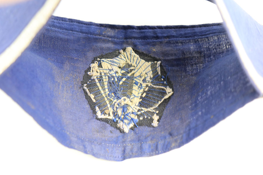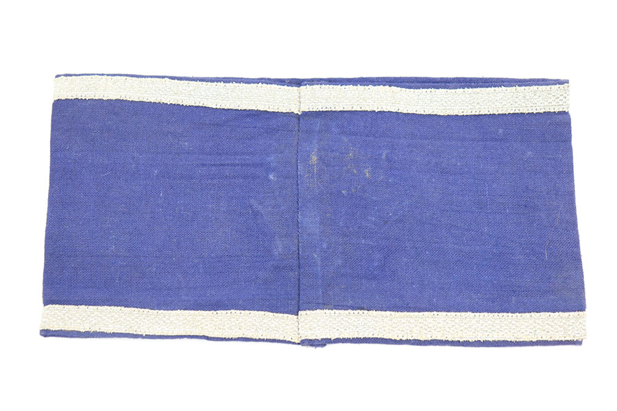 1/20/21 – This is an original nazi German RLB Officer’s armband. This is the 2nd pattern, and shows an embroidered RLB logo on the front, with woven wire tress at the top and bottom edges, indicating this was for an officer. There is some light staining on the front around the area of the 8 point star. There are no holes or tares in the cloth, and the stitching is all in tact.