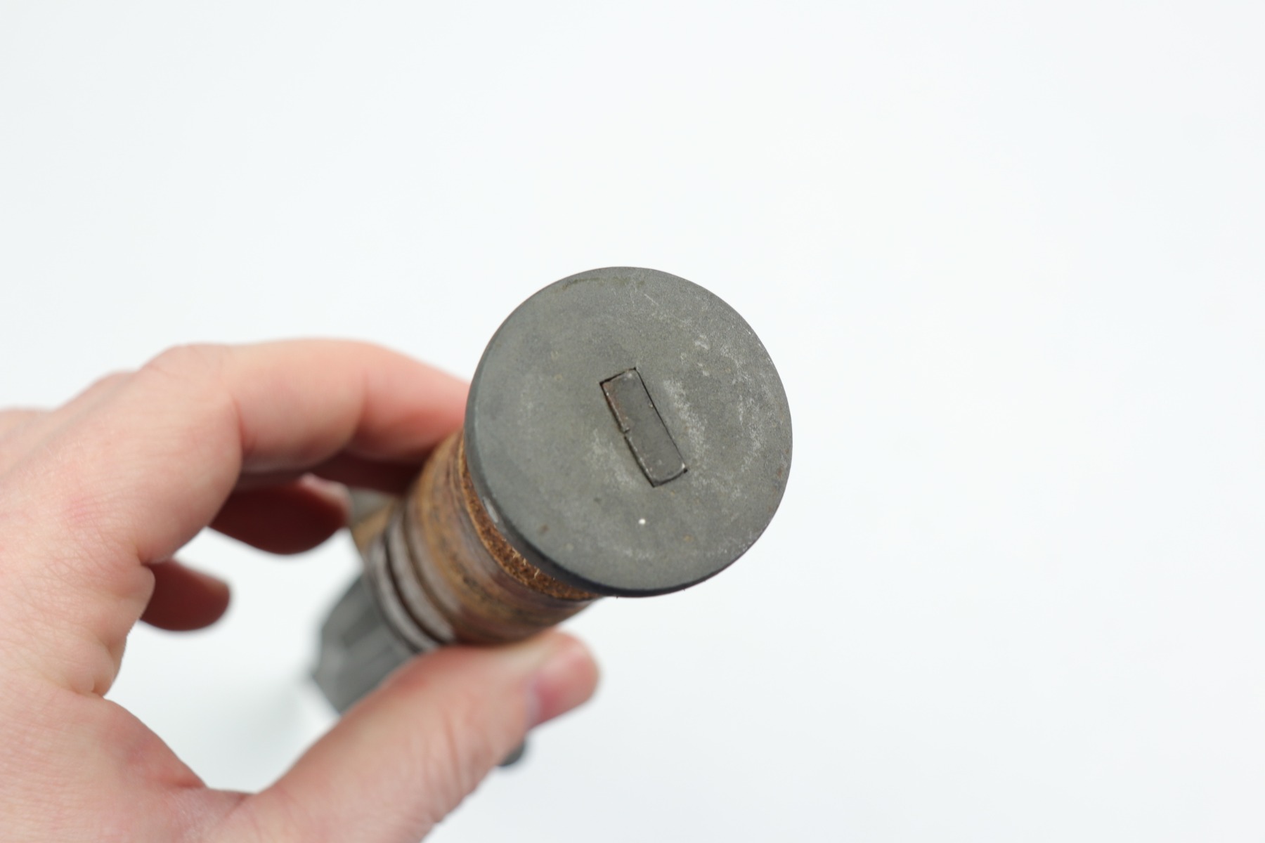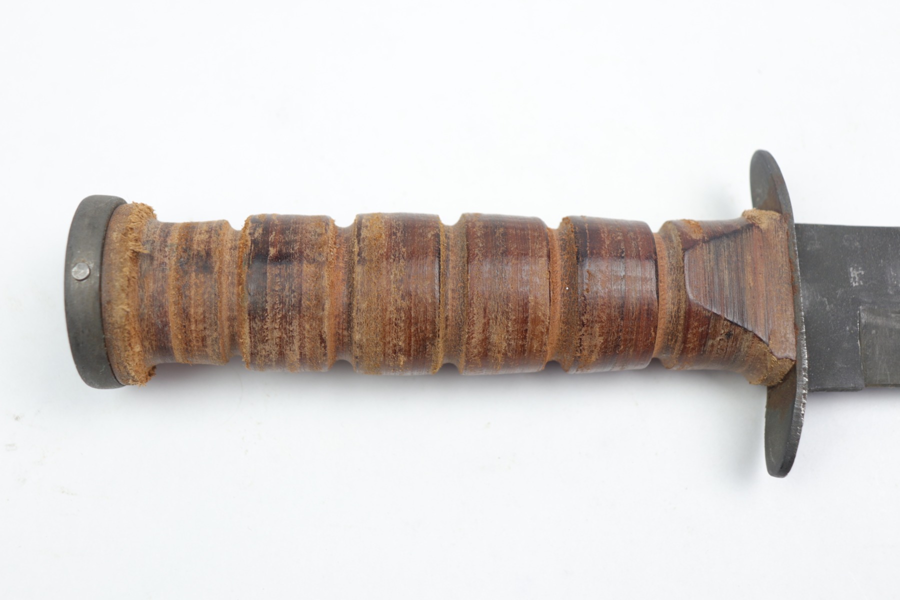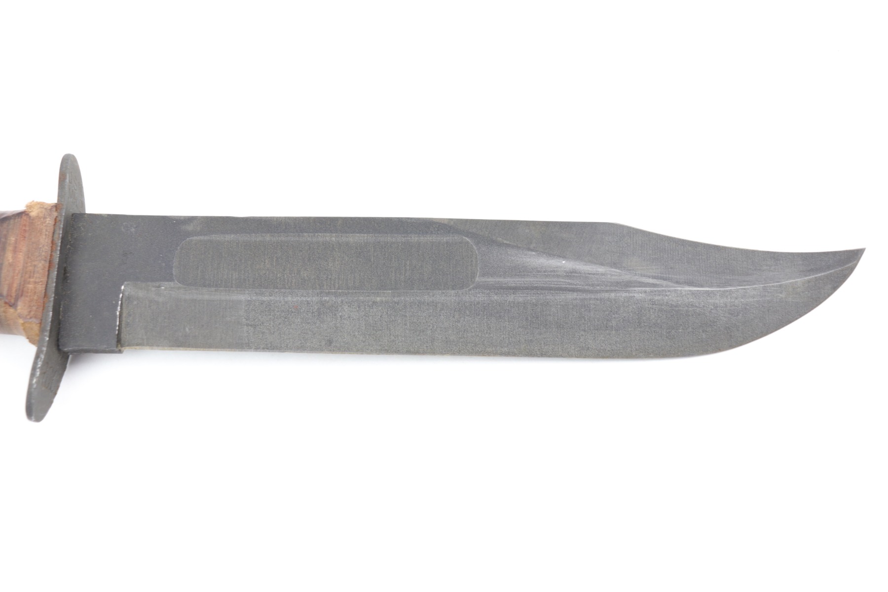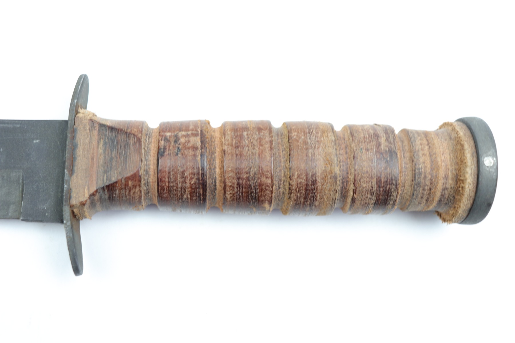 12/23/20 – This is an original WW2 era production Robeson USN Mk 2 knife. Comes with a scabbard that has the original wax paper still in tact over the upper metal. The blade is in minty condition as shown, as is the handle. The hand guard is maker stamped “R.C.C.” and “USN MK 2”. The blade has never been sharpened.
