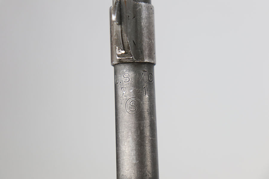 9/22/20 – This is a Rock Island Arsenal Model 1903 with serial that dates the gun to 1918. The rifle is a USMC rebuild, with USMC marking on barrel and a date of July, 1941 on it. It has the hatcher hole and stippled buttplate. The parkerized finish is in good shape but there’s some finish loss near the muzzle and trigger group. Stock is unmarked and in very good condition with no major defects. Terrific bore. Smooth mechanics.