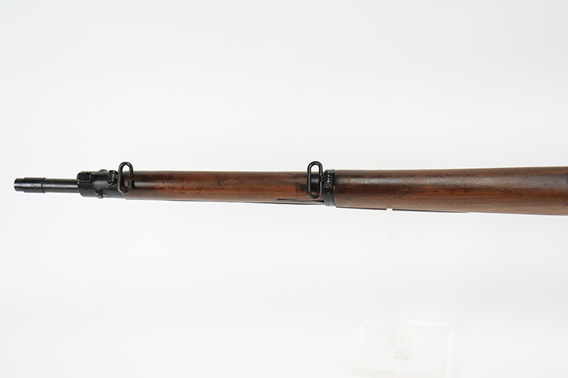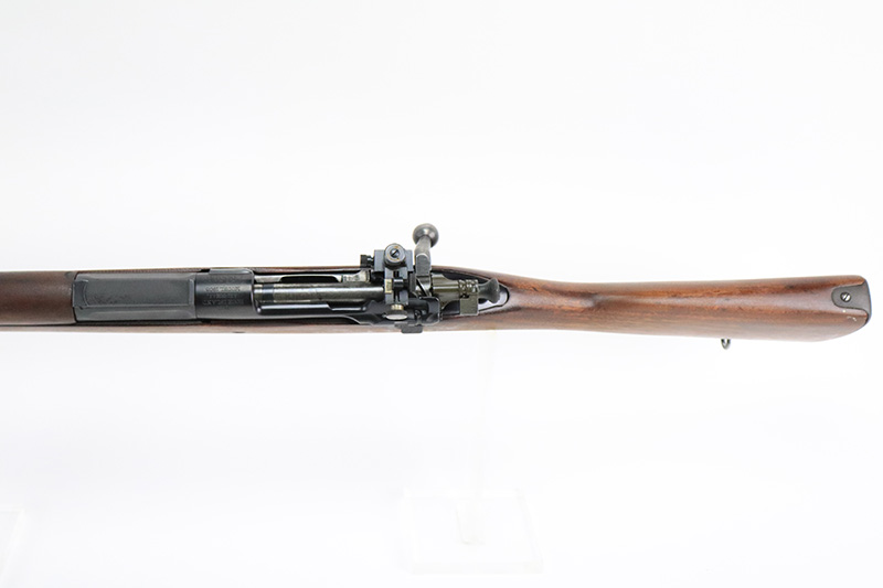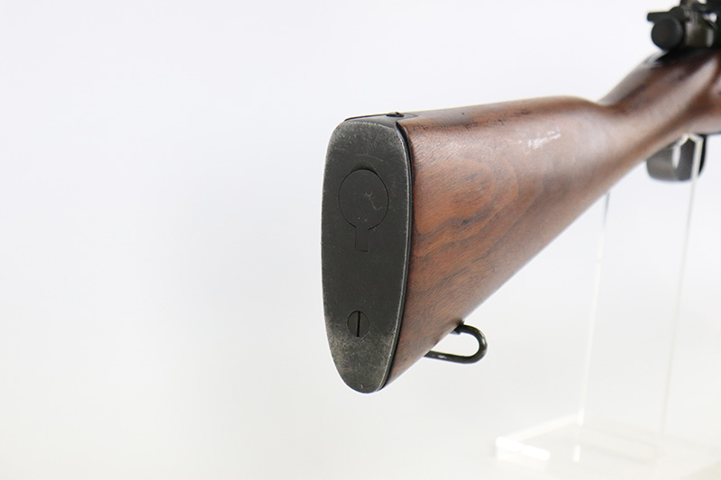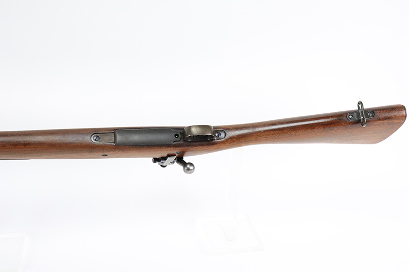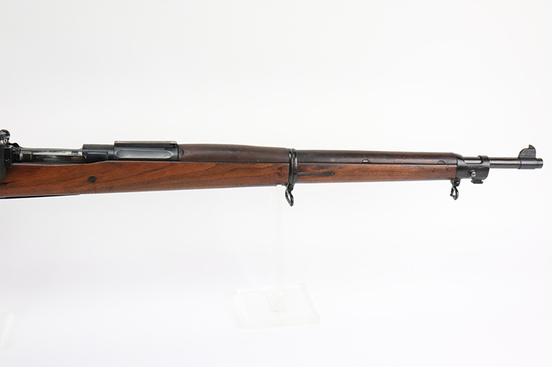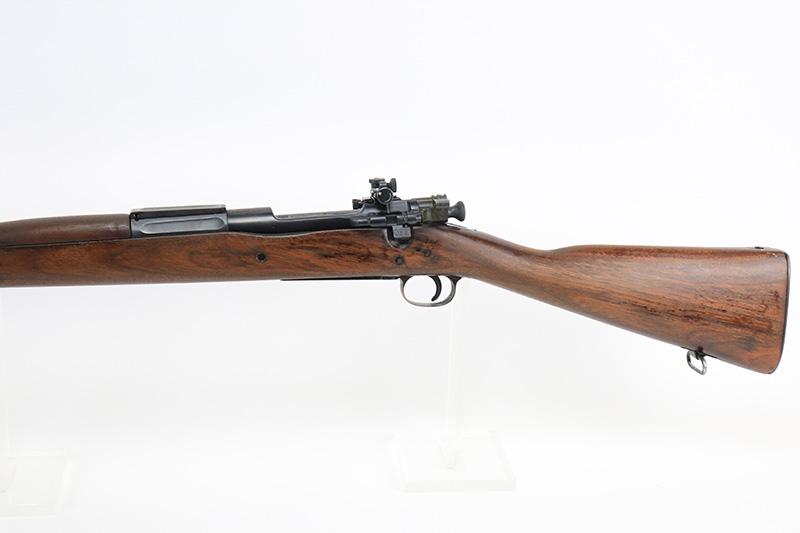 8/25/22 – This is a nice example of a Rock Island Arsenal Model 1903 rifle from 1913-1917. Rock Island Arsenal produced model 1903 rifles from 1903 through 1919, but took a break from 1914-1916 due to sufficient supply of M1903s and Springfield’s ability to keep up with limited demand. According to the National Park Service, serial number 234,000 is approximately when production ended in 1913. There are estimated ranges as high as 263,000 but serial number data tends to support the lower estimate. When production resumed in 1917, parts that remained from 1913 production were utilized to assemble new rifles. This particular rifle has a receiver that was most likely made in 1917 based on the lower serial range estimates, and a Rock Island barrel dated for August of 1913. It is possible this receiver and barrel were initially paired when production resumed in 1917 using a leftover barrel and a new receiver. The bolt of the gun is mismatched but is in very nice condition. The receiver and barrel of the rifled have been refinished and the blued finish is in excellent condition. The trigger guard and floor plate retain a parkerized finish that appears to be original. It is in decent condition with some thinning and minor oxidation throughout. The wooden stock has been lightly sanded, but is in very nice condition overall. There is a faint marking on the left face above the wrist, and some dings on the right face toward floor plate. The rear sight assembly has been removed and a “blank” metal strip has been put in its place. A vintage Lyman peep sight has been installed to replace the rear sight and is in excellent condition. The bore is mint.
