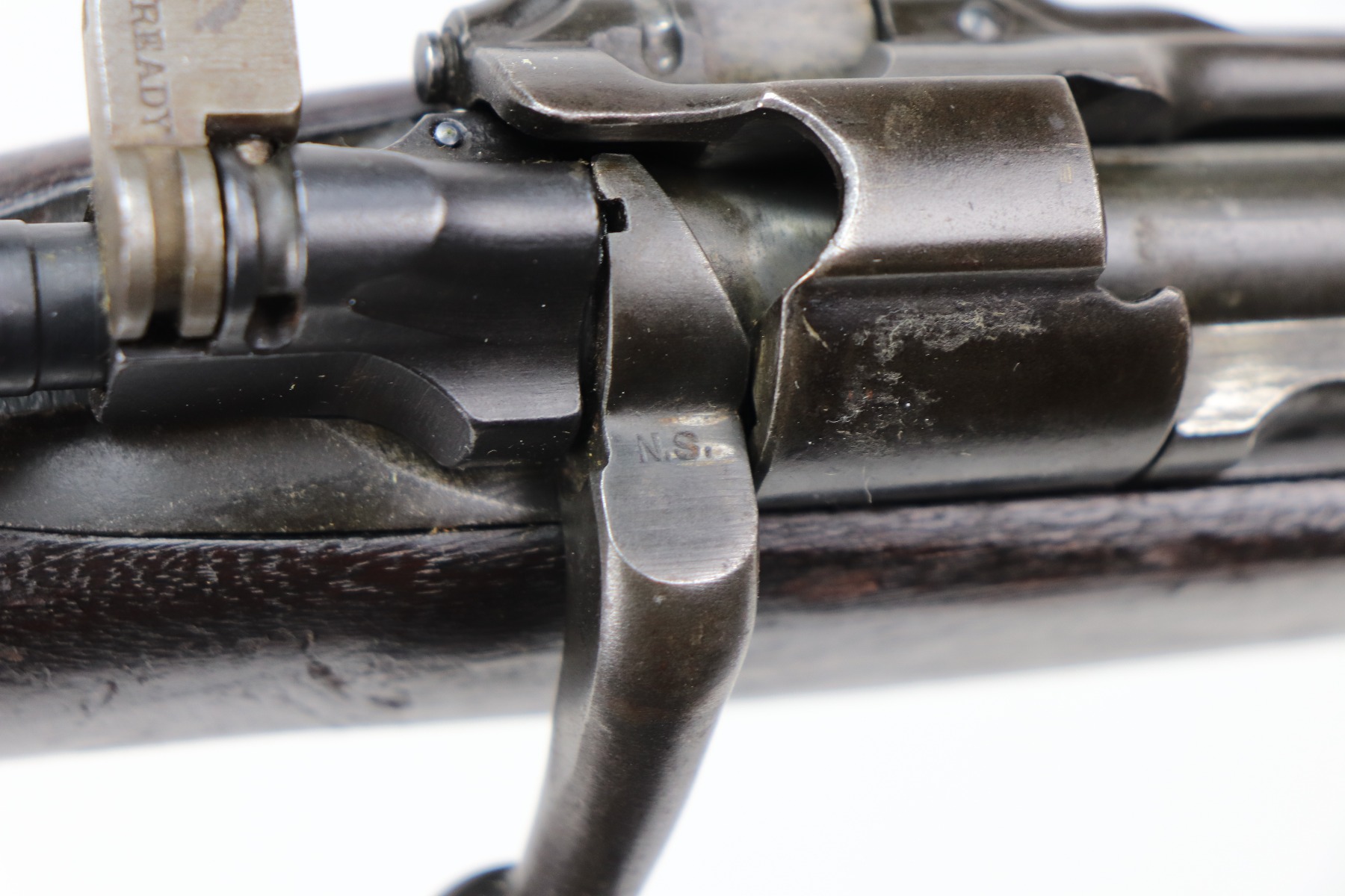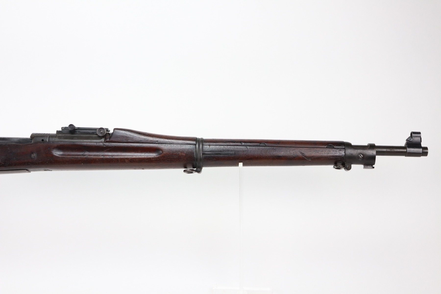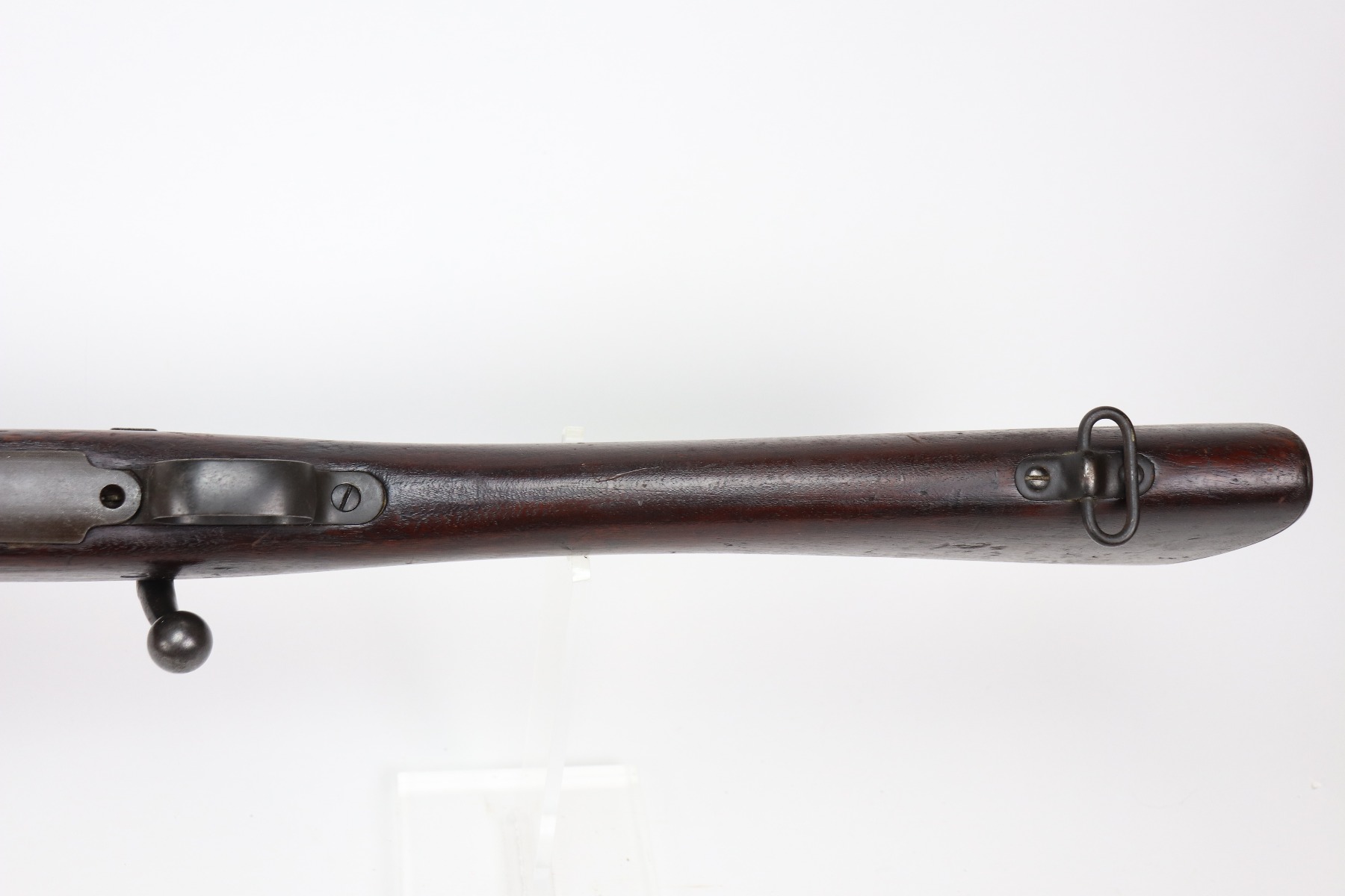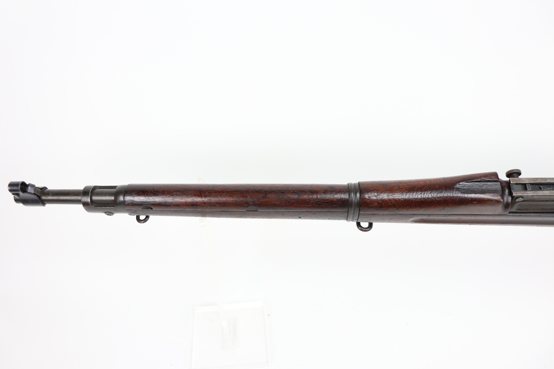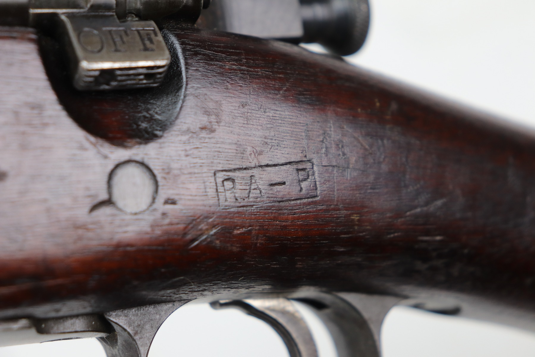 3/25/21 – This is a very nice example of a Rock Island Arsenal Model 1903 bolt action rifle. The serial on the receiver dates it to 1919. It has a Springfield barrel dated 1928. There are no proofs on the stock, but it does have a Ratan Arsenal rework mark. “US” mark and flaming bomb proof on the front sight hood. Overall, the gun is in very nice condition – just some spotty oxidation and patina here and there. The stock is nice, but there are small dings, dents, and scratches throughout. Minty bore.