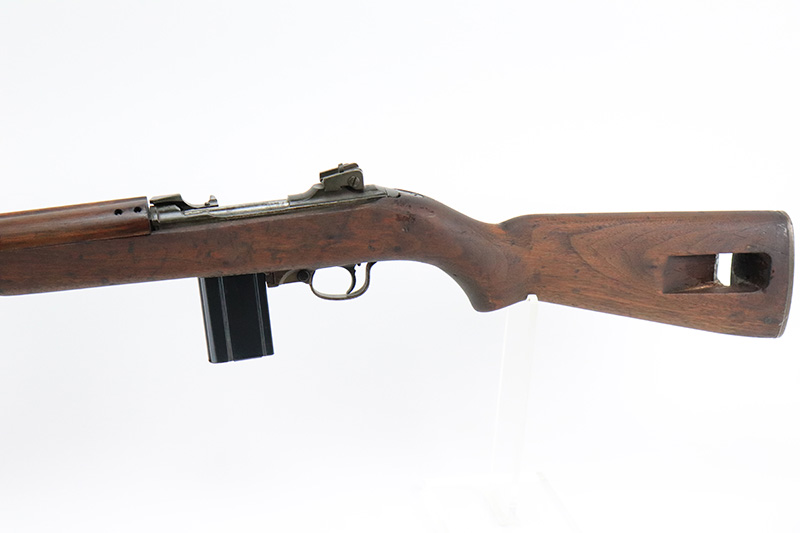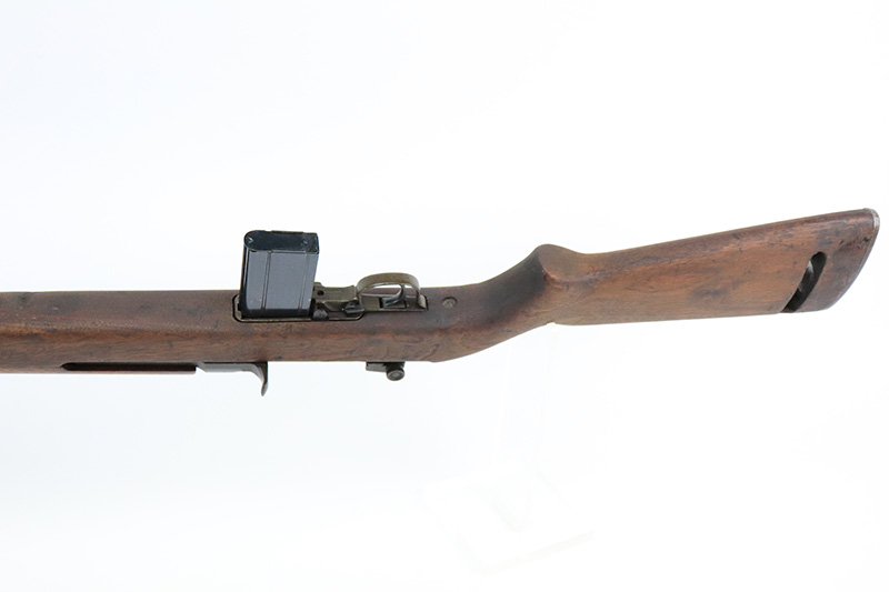 10/7/22 – This is a Rockola M1 Carbine issued to the US military during WW2. The serial number on the receiver dates it to late 1943 – early 1944. The barrel is also Rockola marked. It has an adjustable rear sight that was likely added after the war. There is an import mark on the left side of the barrel. The stock has been replaced. Overall, the gun is in fair condition, but there is noticeable finish loss and spotty oxidation along the whole barrel. There are dings and scratches along the top of the barrel. Some spotty oxidation on the bolt and trigger assembly. The stock is nice and appears to have been lightly sanded. Minty bore. Comes with one proper magazine.