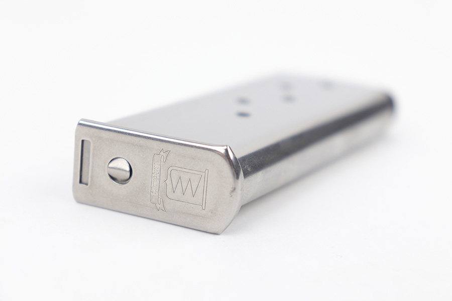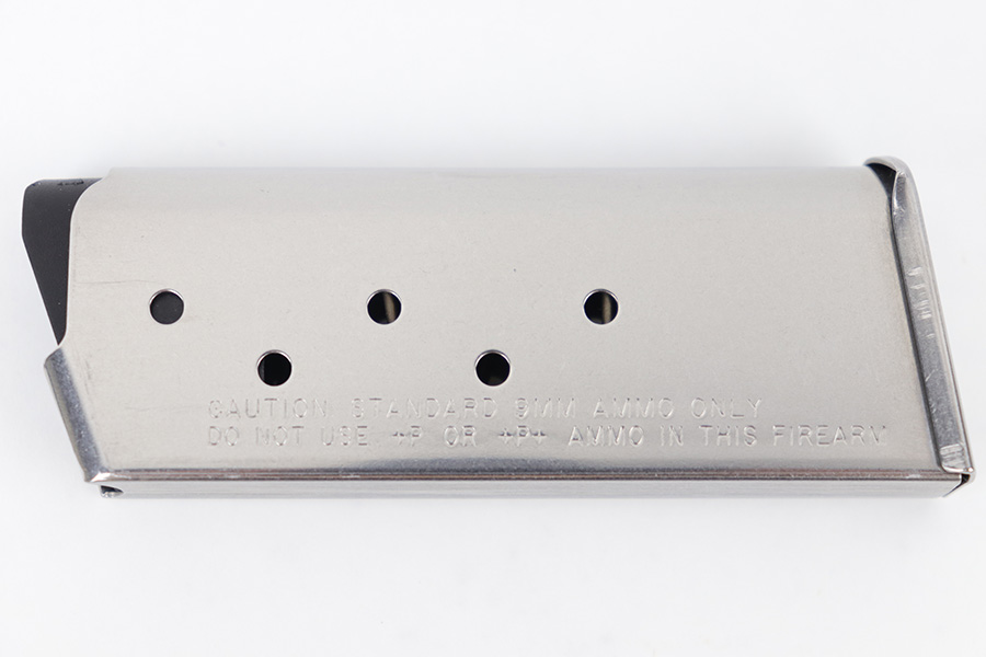6/6/23 – This is a hard-to-find Rohrbaugh R9 magazine. Factory original magazine with a nickel finish. Excellent condition with fully functional spring.