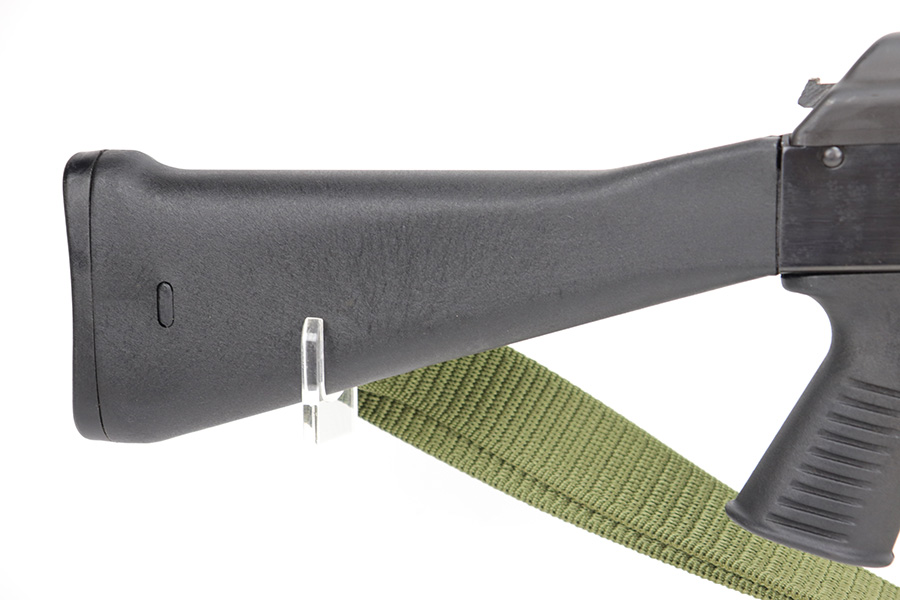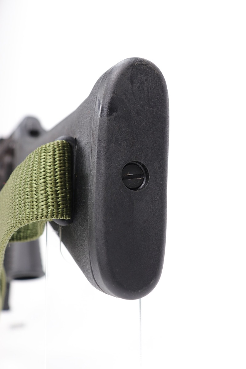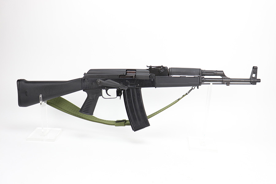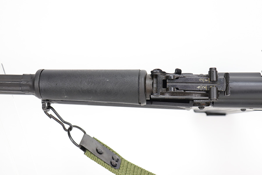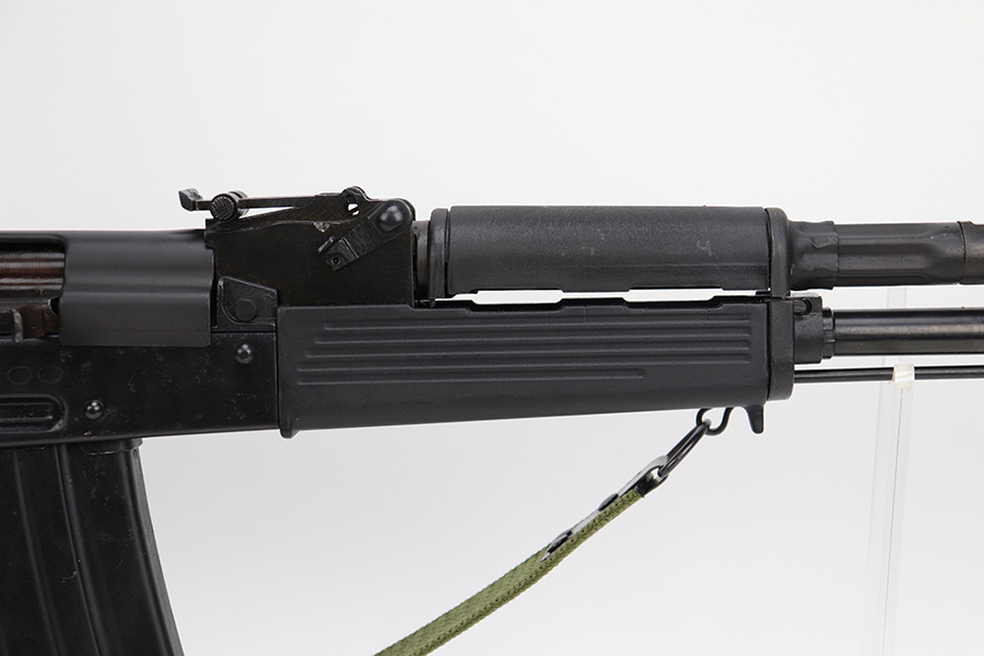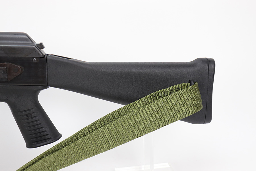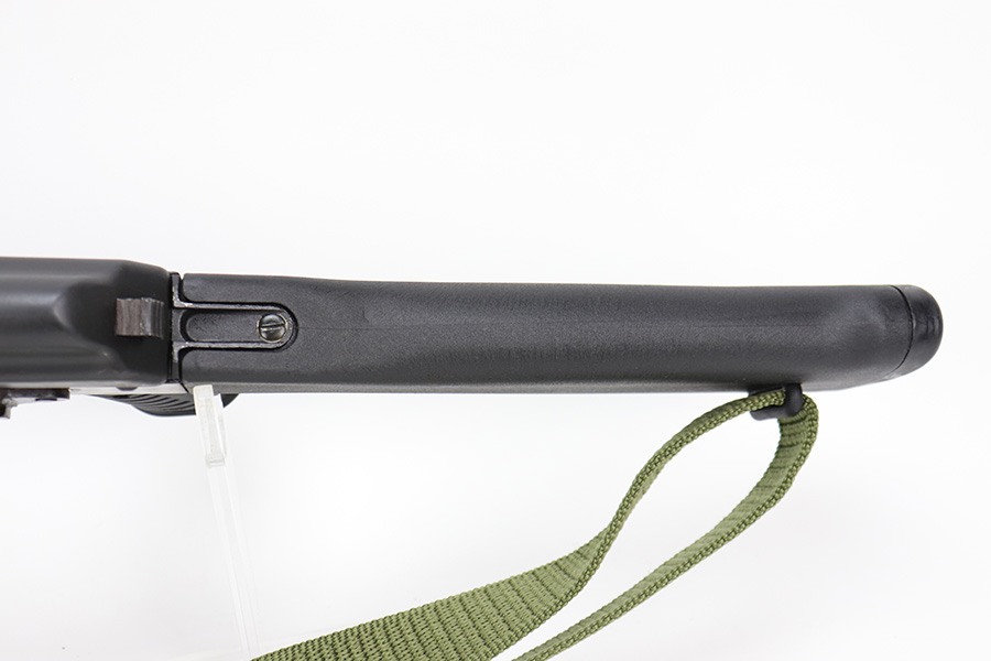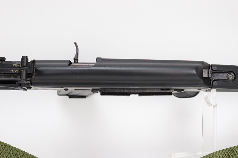 6/15/23 – This is a minty example of a Romanian Cugir AKT-98 Training Carbine, chambered in .22 LR. It is modeled after the AK-47 design. There is virtually no actual finish loss, just some minor scuffs here and there and some very light freckling on the right side of the receiver. Fitted with excellent black plastic furniture. The gun comes with a cleaning rod, green canvas sling, and one 30-round magazine. The bore is mint.