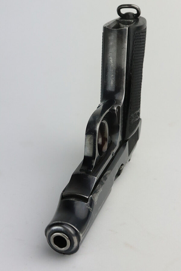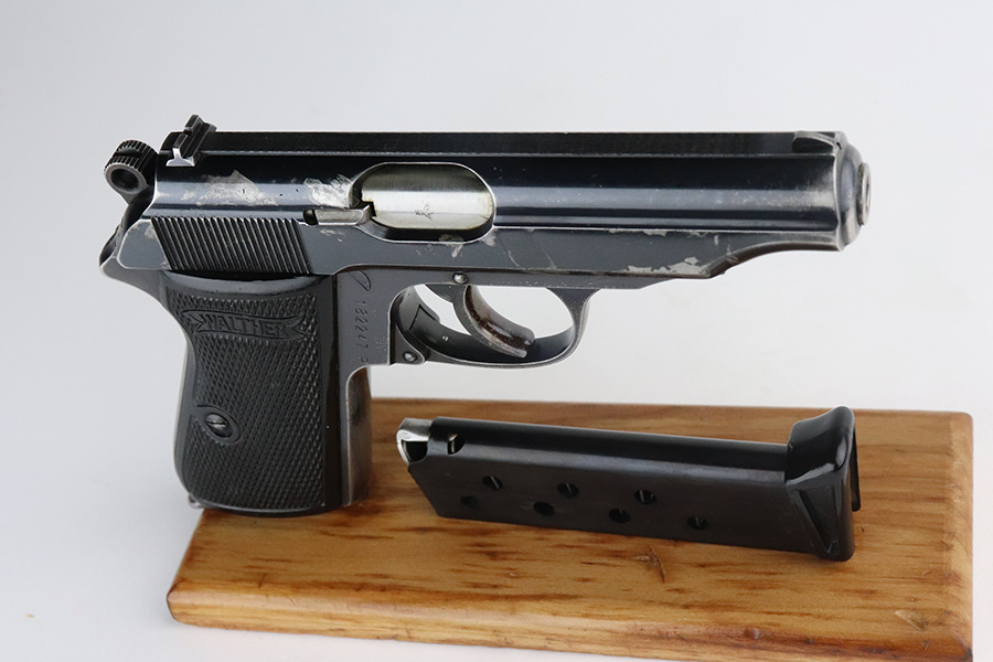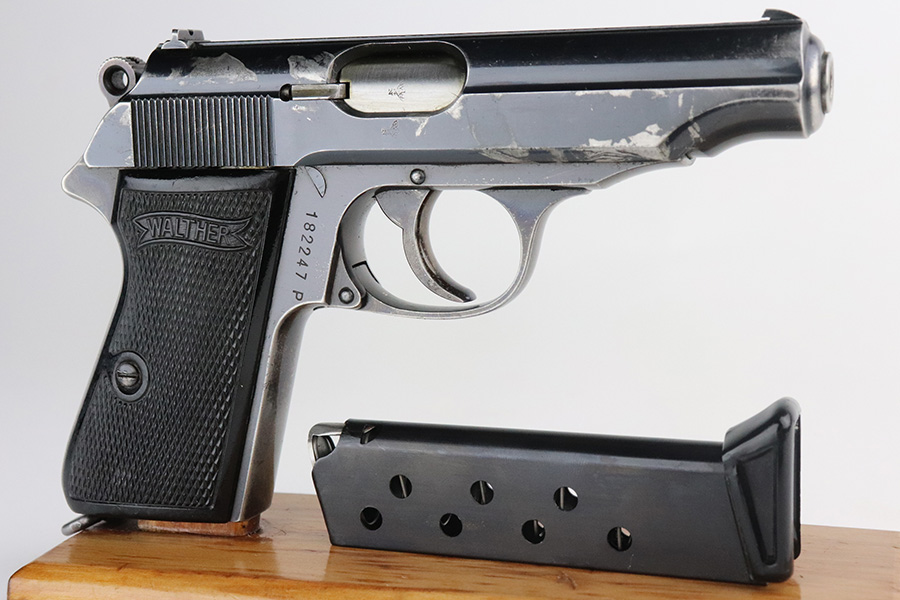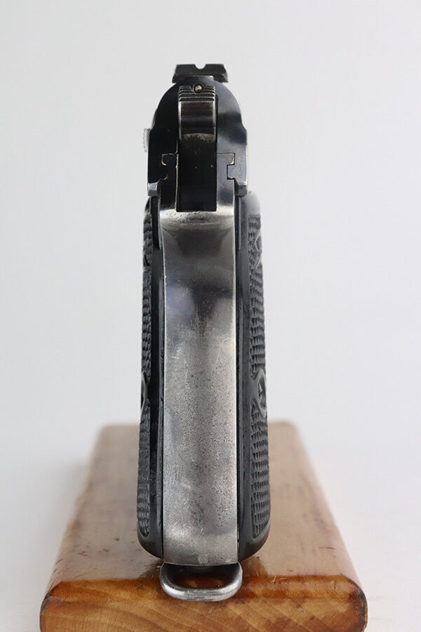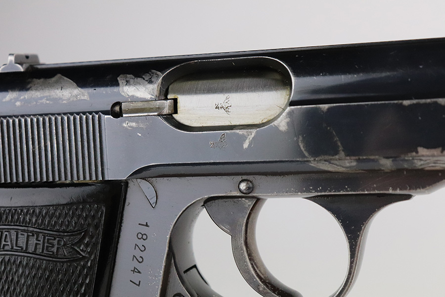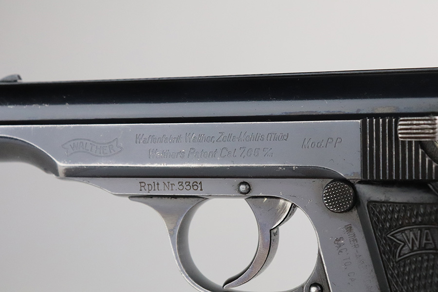 8/3/21 – This is a nice example of a rare “Rplt” marked Walther PP that was issued to the Danish police in 1940. It is all matching and has the proper factory lanyard loop. Import mark on the left side of the frame. It has retained roughly 60% of its finish. Most of the finish loss is on the straps. But there is also wear around the high edges of the slide and around the muzzle. Significant splotchy discoloration on the right side of the slide. Comes with nice grips and a post-war finger extension magazine. Very nice bore with good rifling.