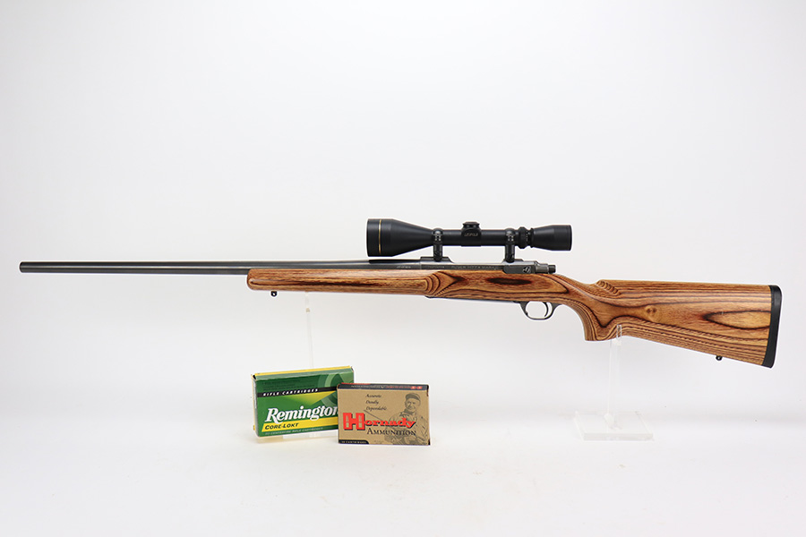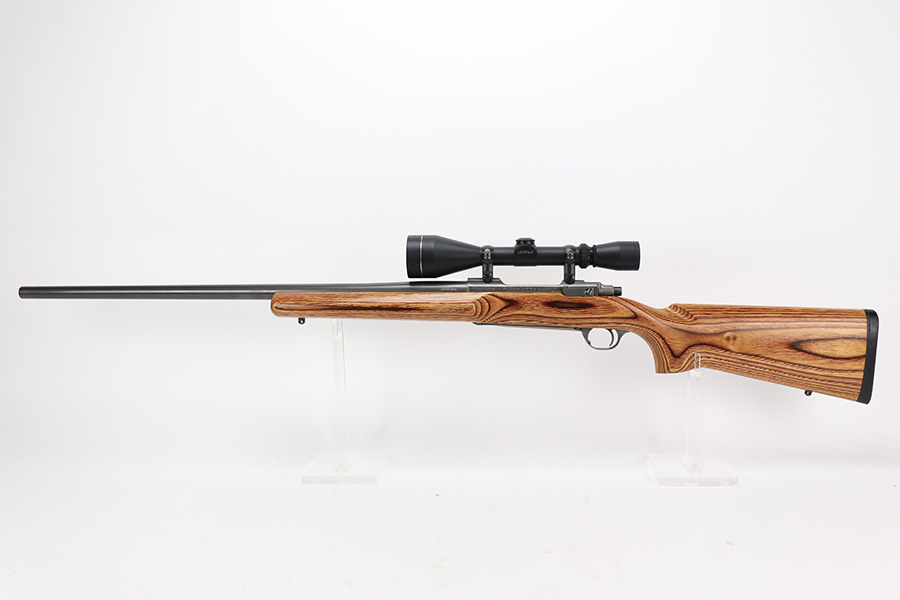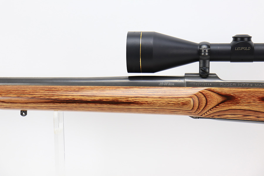 6/6/23 – This is a mint example of a Ruger M77 Mark II bolt action rifle with a heavy barrel. Chambered in .25-06 Remington. Comes equipped with a very nice Leupold 3-9x50mm VARI-X IIc scope (excellent optics). The gun also comes with half of a box of Remington ammo and one full box of Hornady ammo. The gun itself shows almost no signs of wear except for some tiny scratches on the wood stock here and there and a few light scuffs on the scope. Like-new bore.