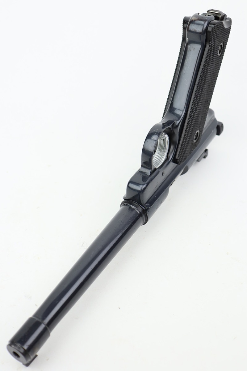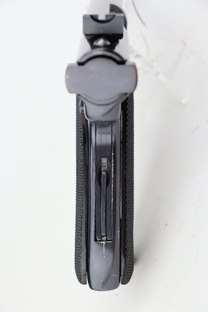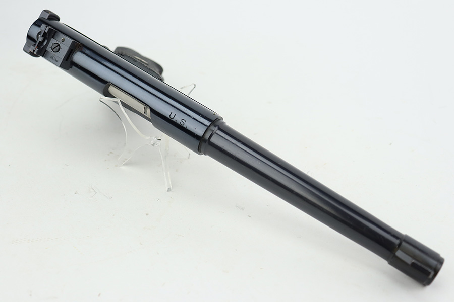 8/19/23 – This is an excellent example of a Ruger Mark 1 issued to the US military for practice and competition. It is all matching and “US” property marked on the top of the slide. It has retained about 97% of its original high polish finish. There are tiny scratches and handling marks here and there and very minor wear around the muzzle and on the high edges where the receiver meets the barrel. Fitted with excellent black plastic grips. Comes with one proper magazine. Mint bore.