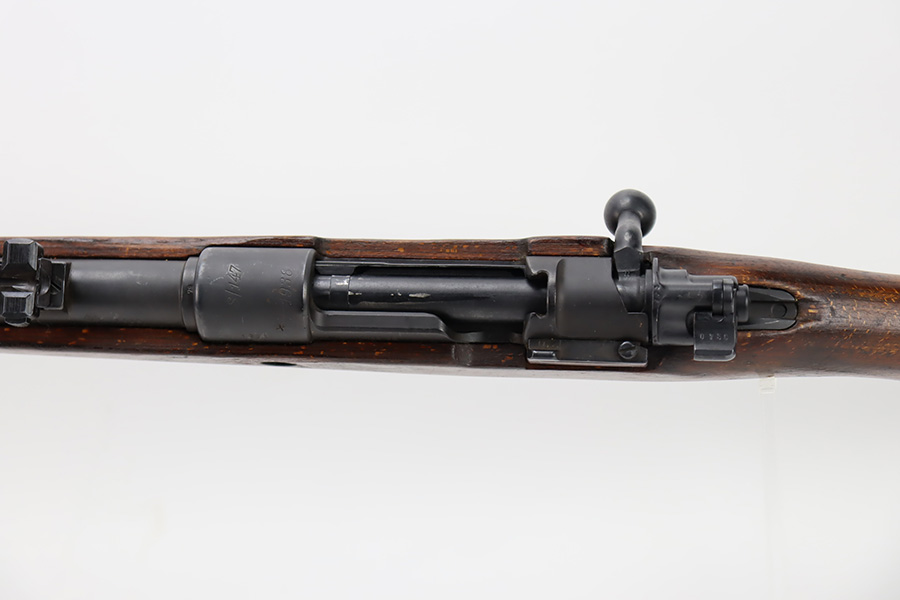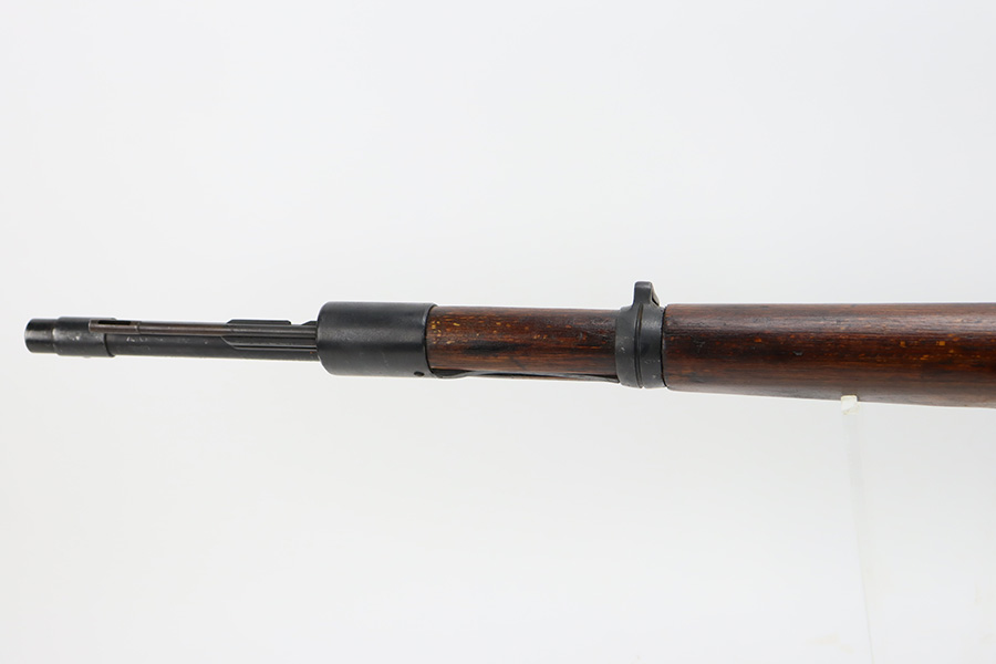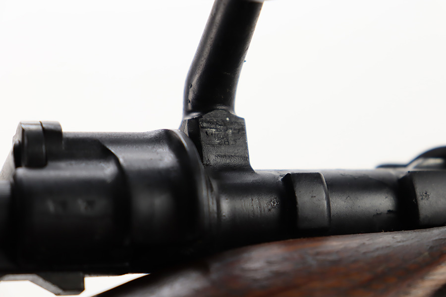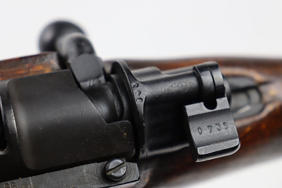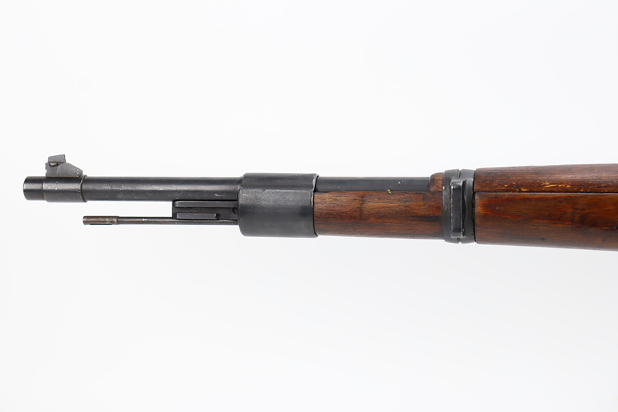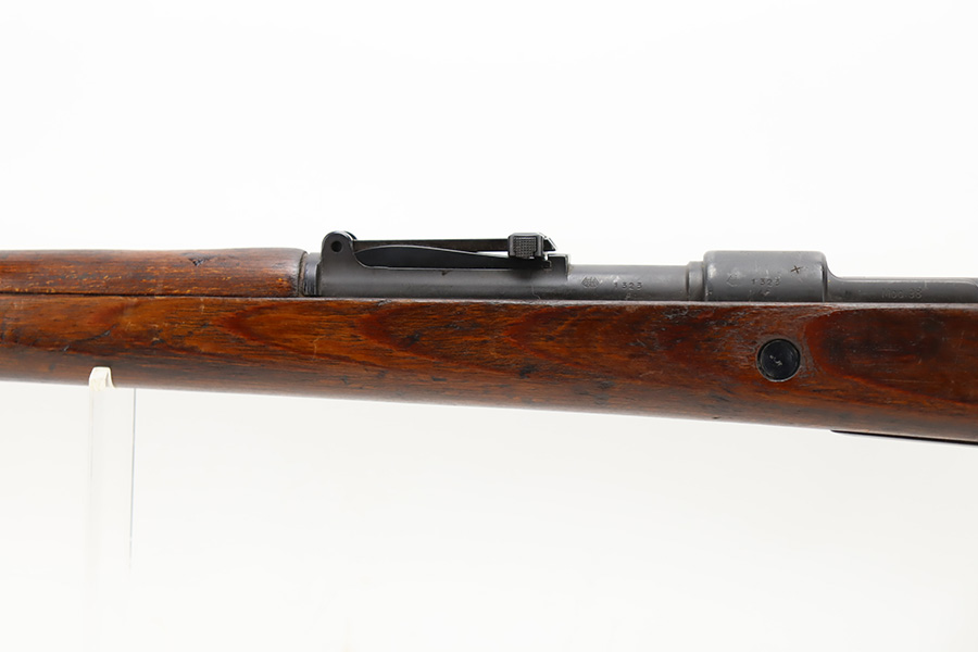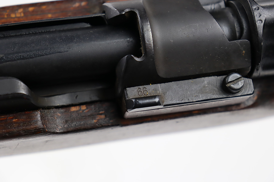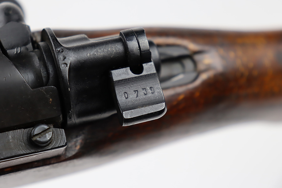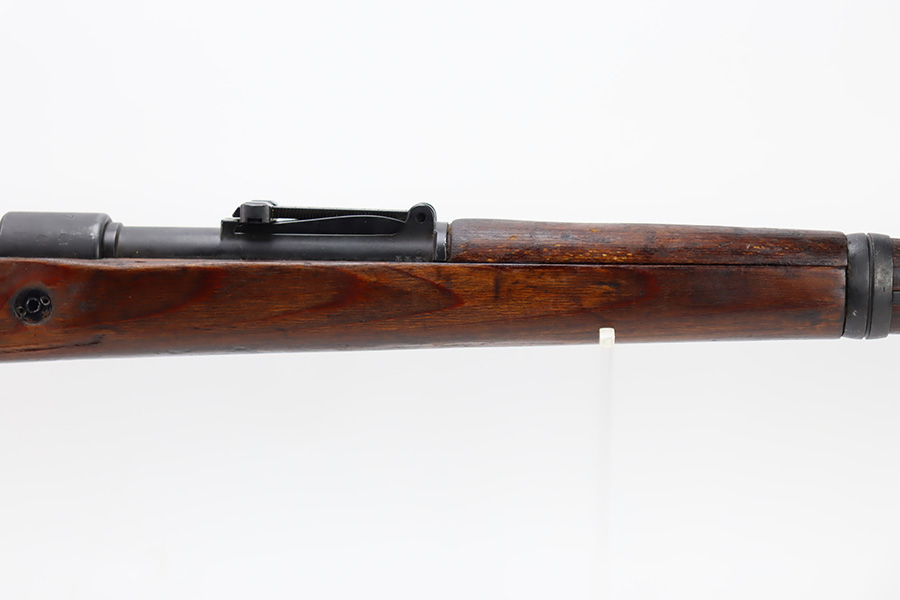 11/7/23 – This is a clean example of a German K98k that was captured, reworked, and reissued to Soviet troops. The Soviets would refinish the stock and wood of captured rifles and reissue them. The metal on the rifle retains its Russian black paint refinish with no active pitting or corrosion. The laminate stock has a reddish finish to it which is normal for Russian capture Mausers. The receiver and the stock are matching and there is no serial number on the bolt. The bore is very bright with sharp rifling.