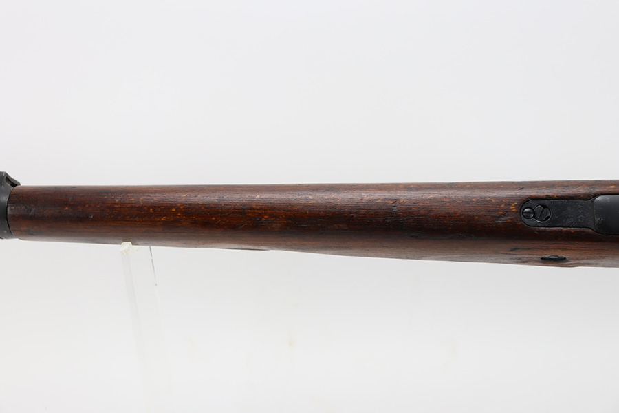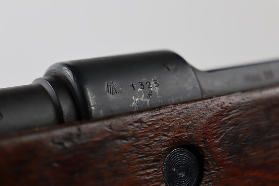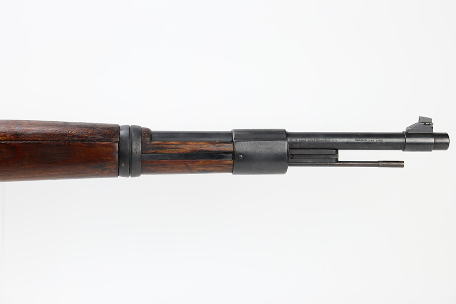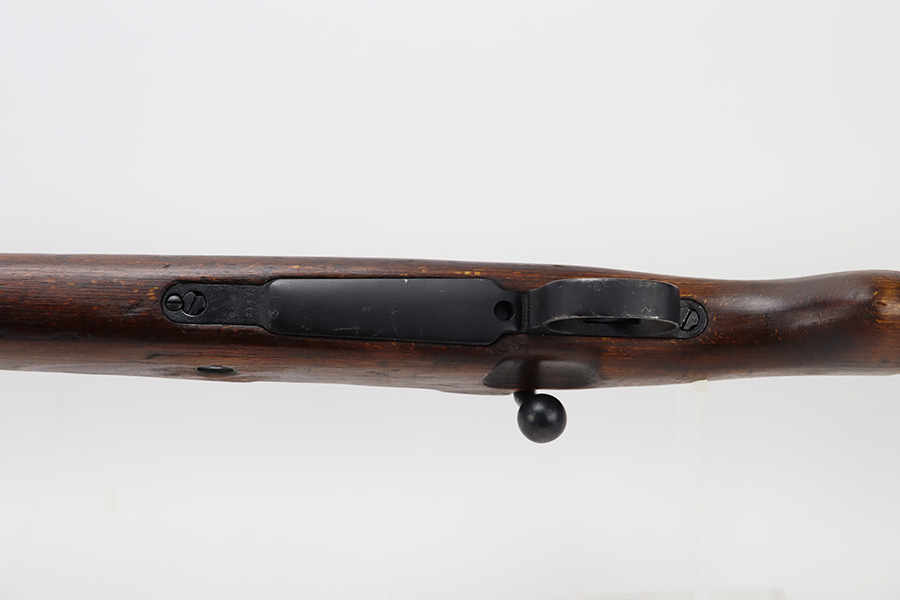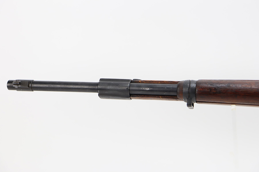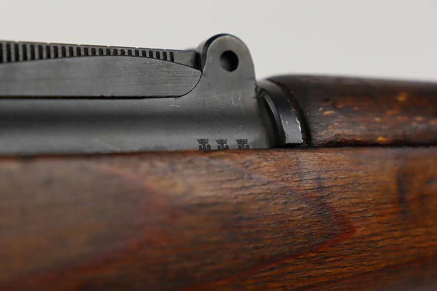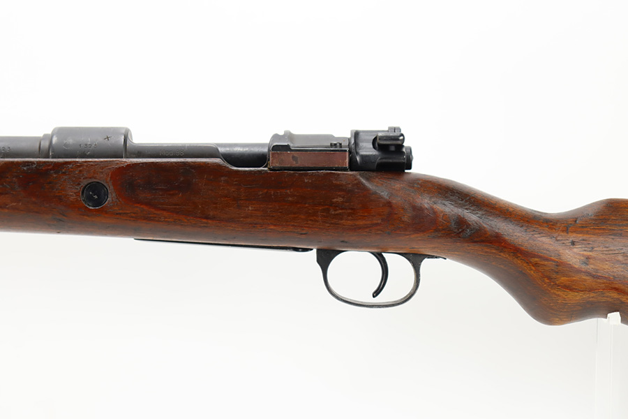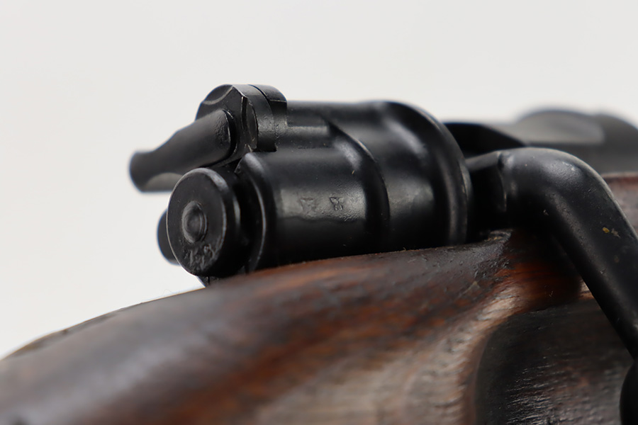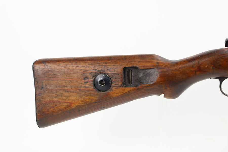 11/7/23 – This is a clean example of a German K98k that was captured, reworked, and reissued to Soviet troops. The Soviets would refinish the stock and wood of captured rifles and reissue them. The metal on the rifle retains its Russian black paint refinish with no active pitting or corrosion. The laminate stock has a reddish finish to it which is normal for Russian capture Mausers. The receiver and the stock are matching and there is no serial number on the bolt. The bore is very bright with sharp rifling.