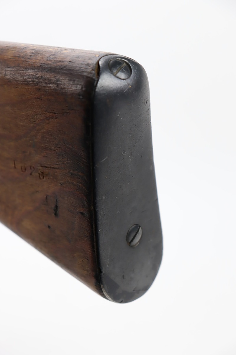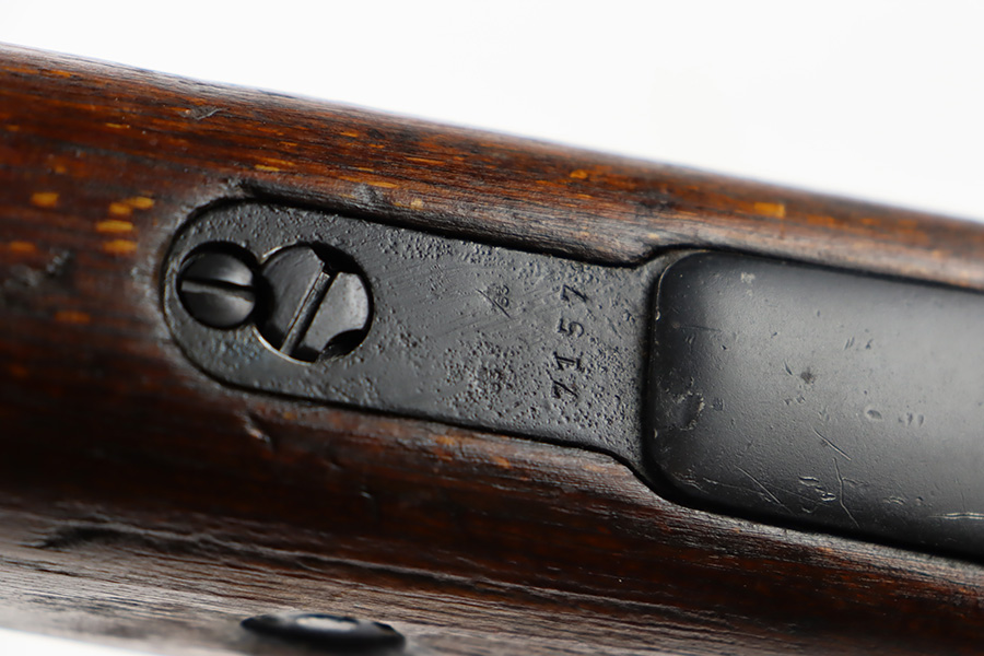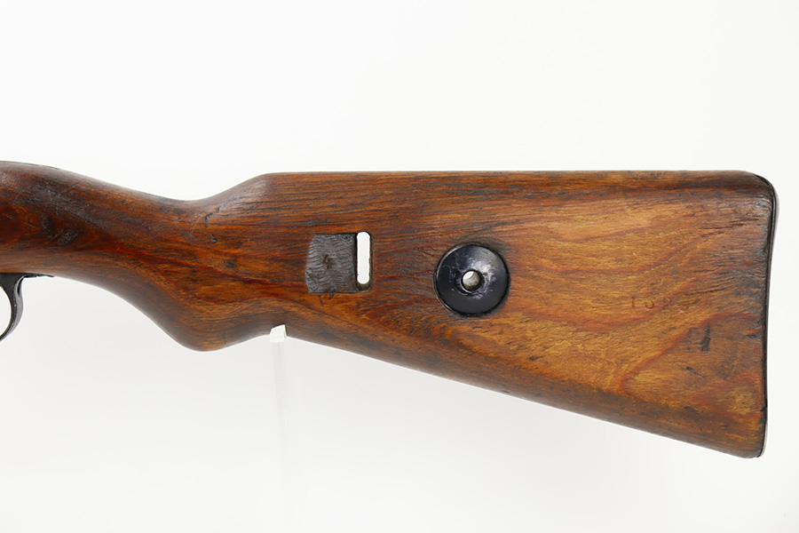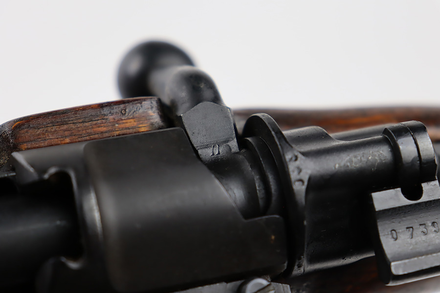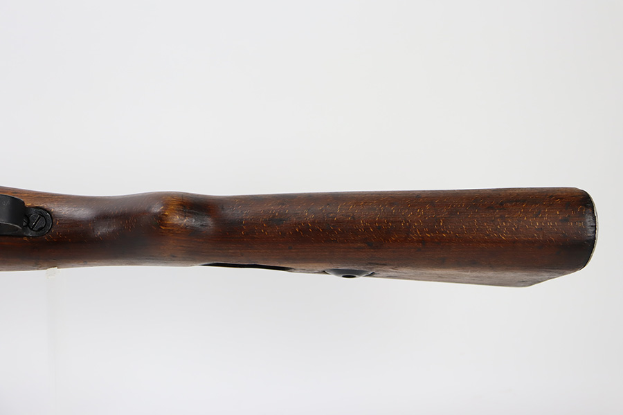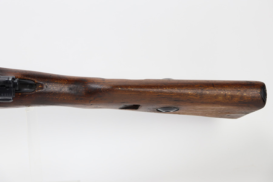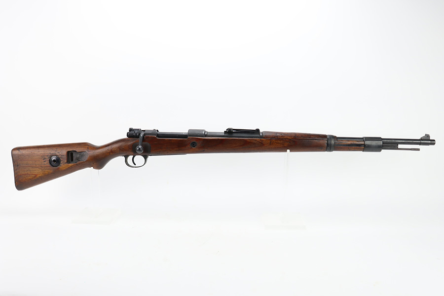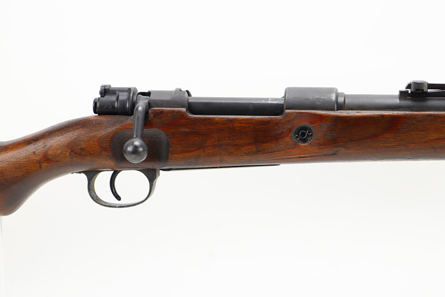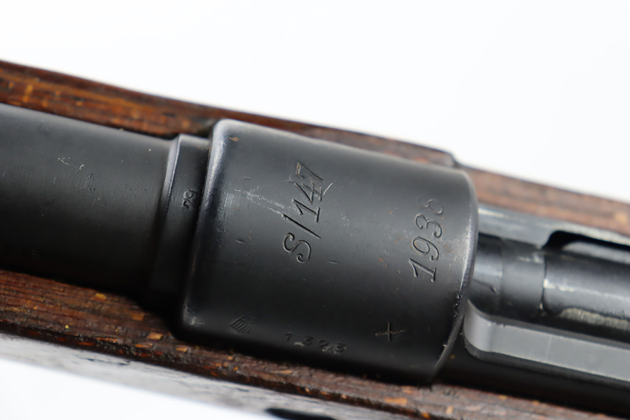 11/7/23 – This is a clean example of a German K98k that was captured, reworked, and reissued to Soviet troops. The Soviets would refinish the stock and wood of captured rifles and reissue them. The metal on the rifle retains its Russian black paint refinish with no active pitting or corrosion. The laminate stock has a reddish finish to it which is normal for Russian capture Mausers. The receiver and the stock are matching and there is no serial number on the bolt. The bore is very bright with sharp rifling.