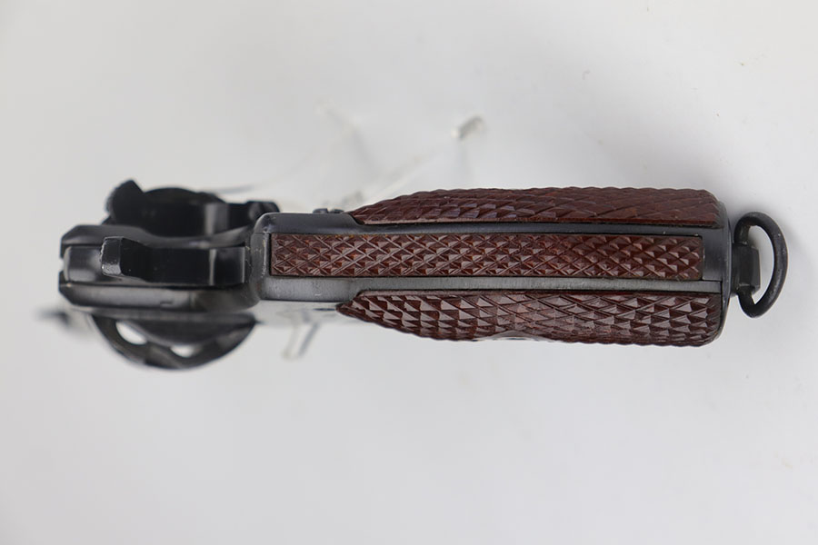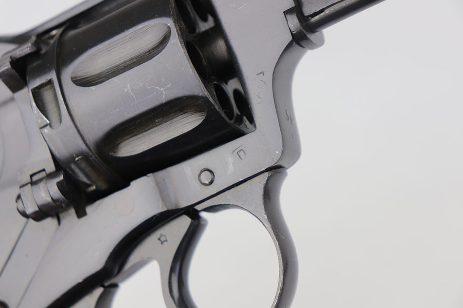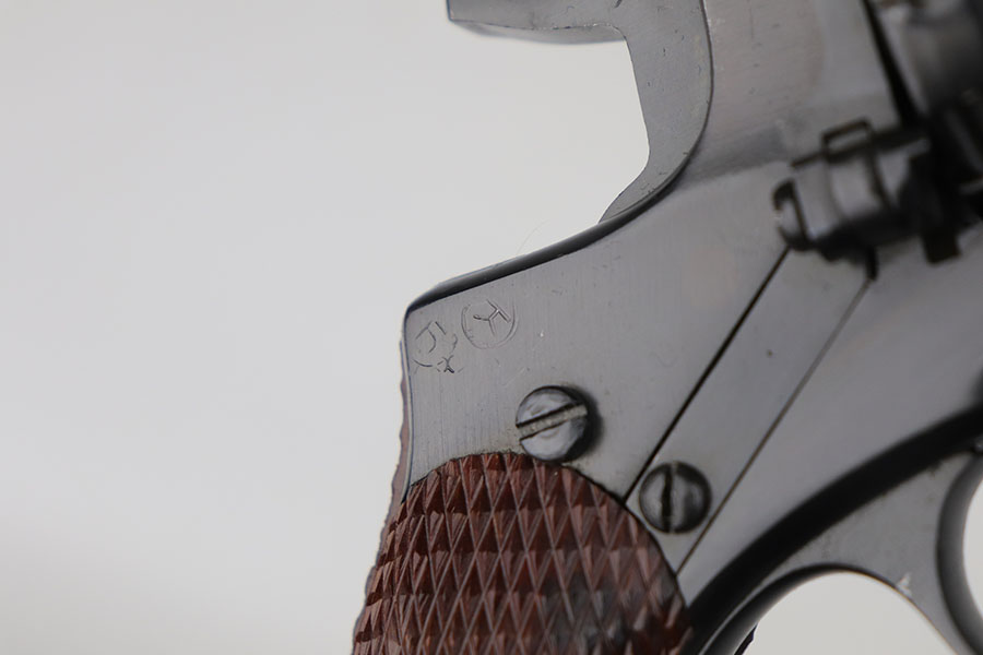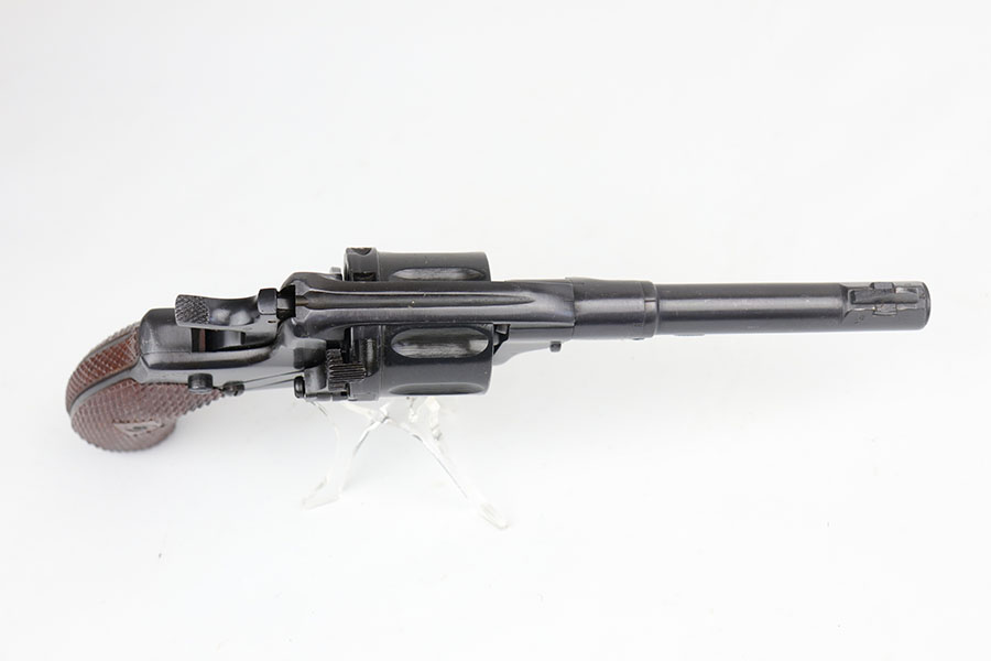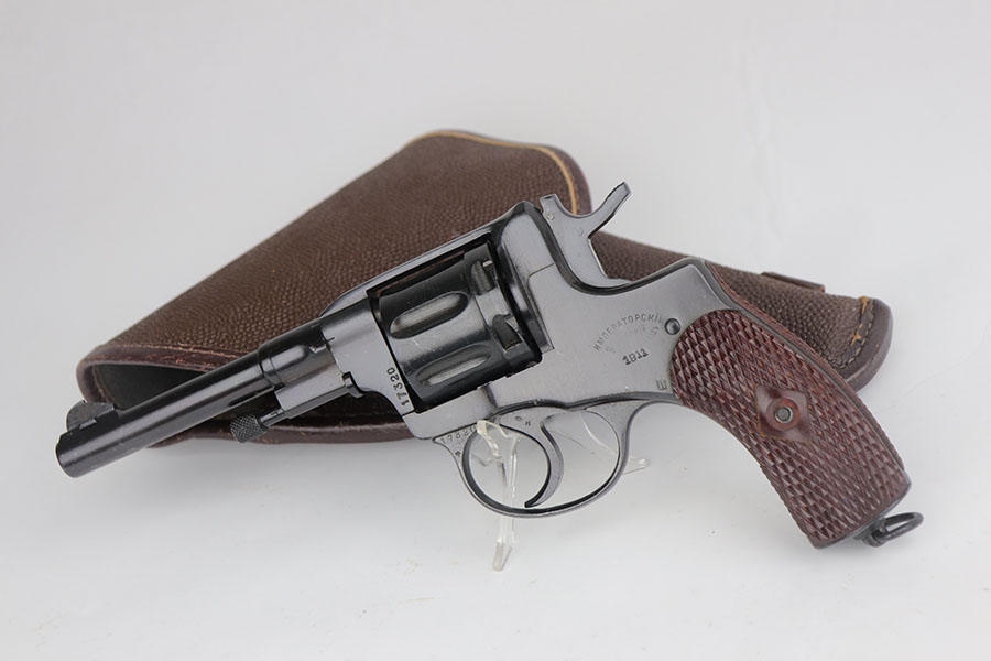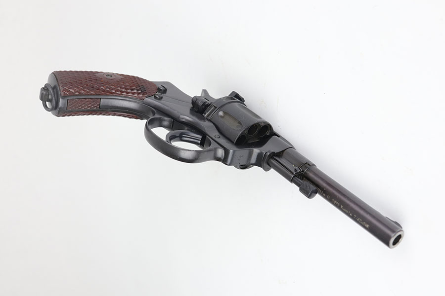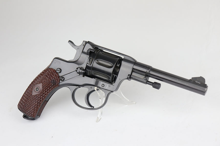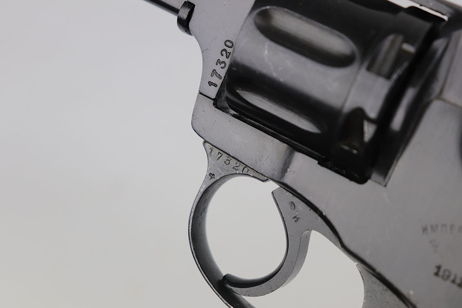 7/24/20 – This is an uncommonly seen Nagant M1895 that was made in 1911. It has all matching numbers and appears to have gone through re-arsenal before being imported to the US, and it does have an import mark under the barrel. The finish is minty aside from a little muzzle wear. Matching numbers throughout. Bore has strong rifling but does have freckling in the grooves. Nice grips that are without defect. Comes with a holster that fits the model but is likely from the 50s or 60s.