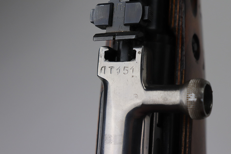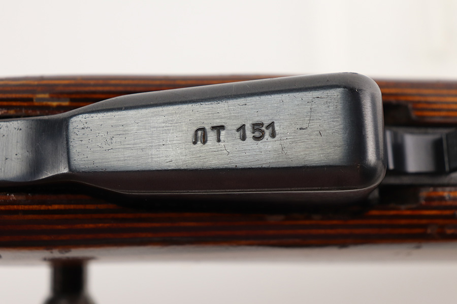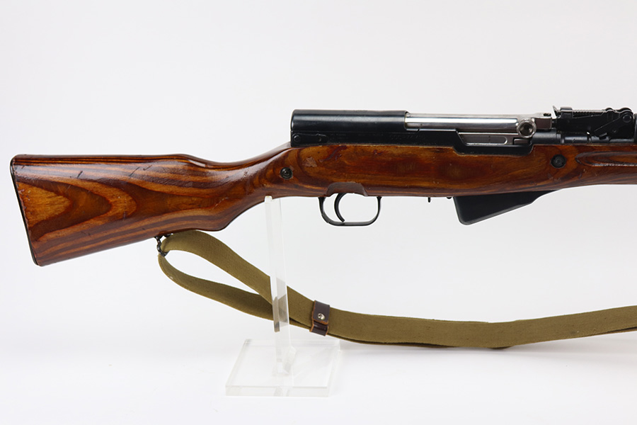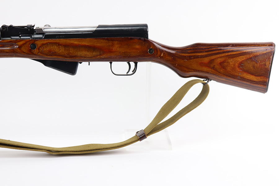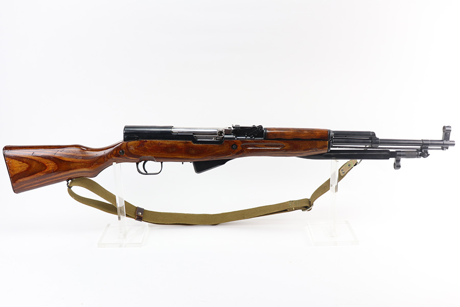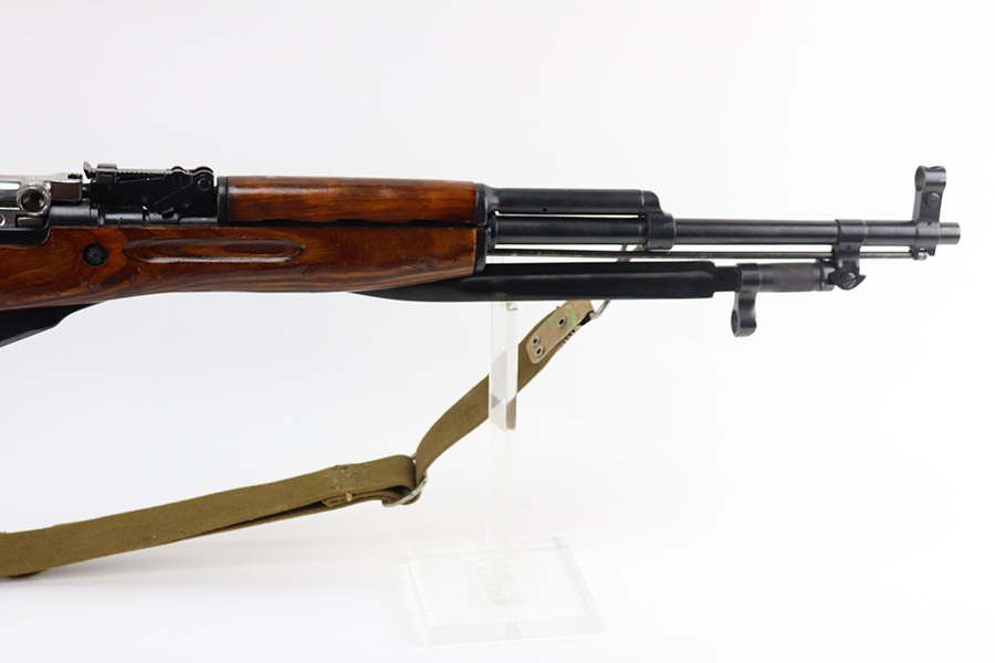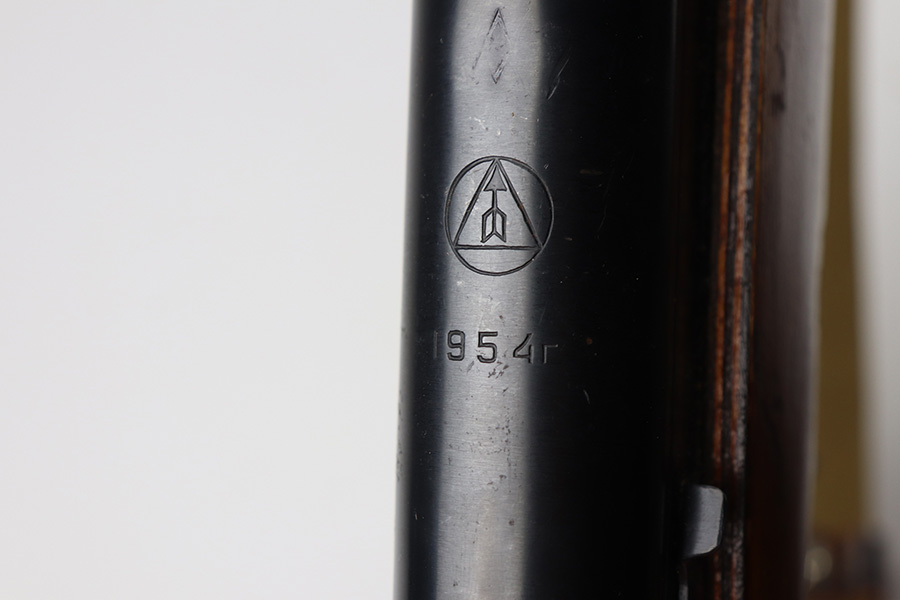 8/19/21 – This is an excellent Russian SKS that was made in 1954 at the Izhevsk factory. Matching numbers on stock, magazine, trigger guard, bolt handle and receiver. Excellent blued finish aside from a patch of pitting on the left side of the receiver. Minty bore. Folding bayonet and sling included. Stock has some dings but no major defects. Import mark on right side of receiver.