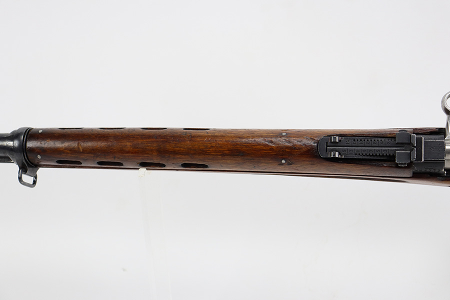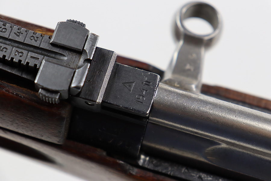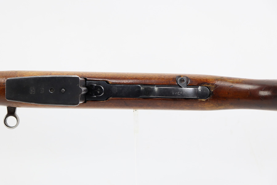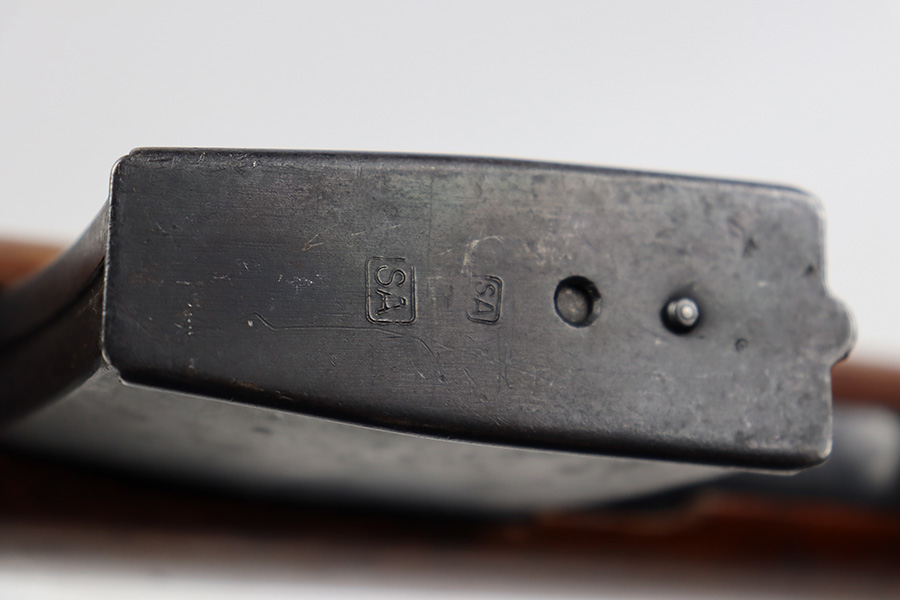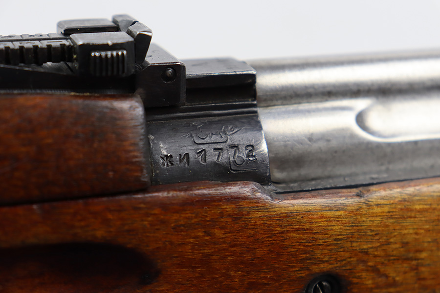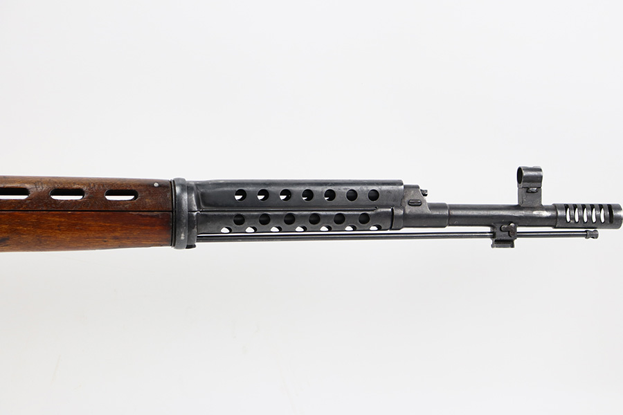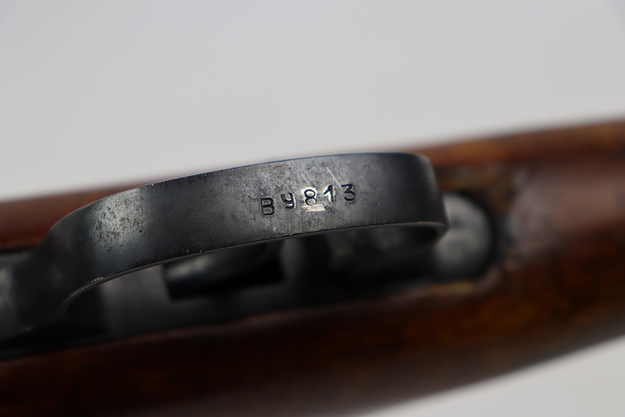 7/27/23 – This is a very nice example of a scarce Russian SVT-40. Made in 1941 at the Izhevsk factory, it’s mismatched throughout but not a refurbished or import marked example. The receiver and magazine are ‘SA’ marked, indicating Finnish capture. Not much bluing loss on the metal parts, but minor, spotty oxidation in some areas. Stock is in good condition but has some minor chips. Faint cartouches are still visible on the right face. Comes with cleaning rod. Bore has strong rifling but is frosted and very dirty, and in need of a good cleaning.