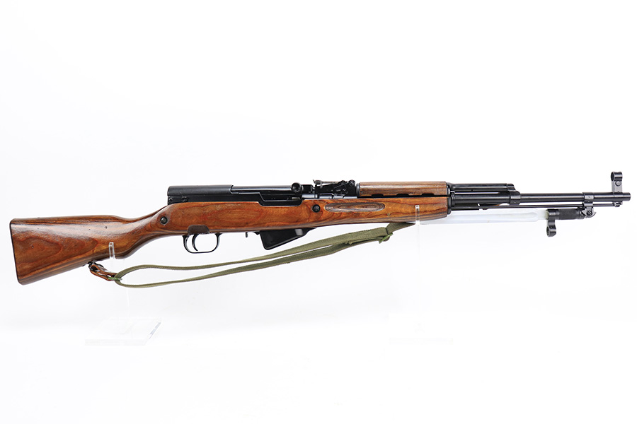 5/10/23 – This is an excellent, matching Russian SKS that was made in 1953 at the Tula factory. Matching numbers on the receiver, bolt, stock, magazine, trigger guard and stock. Mint bore. Excellent stock with minor handling wear. Import mark on barrel. Comes with cleaning rod, sling and under-folding bayonet.