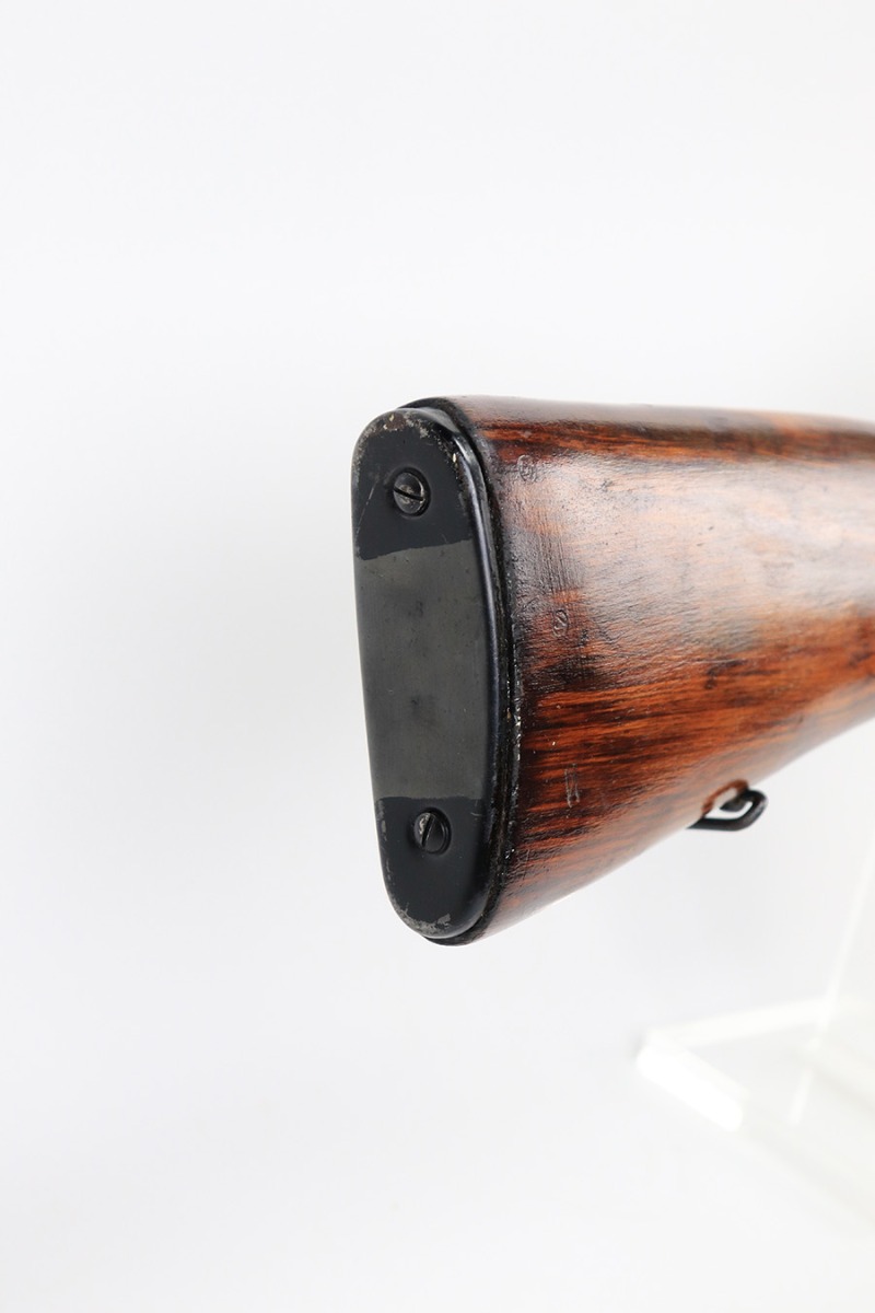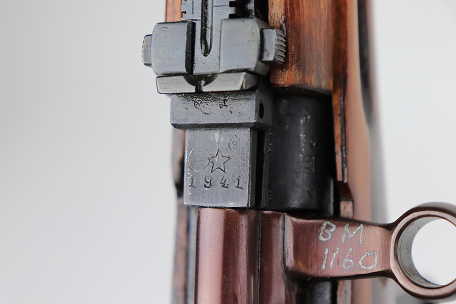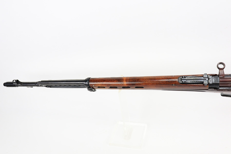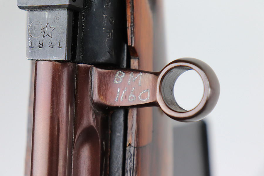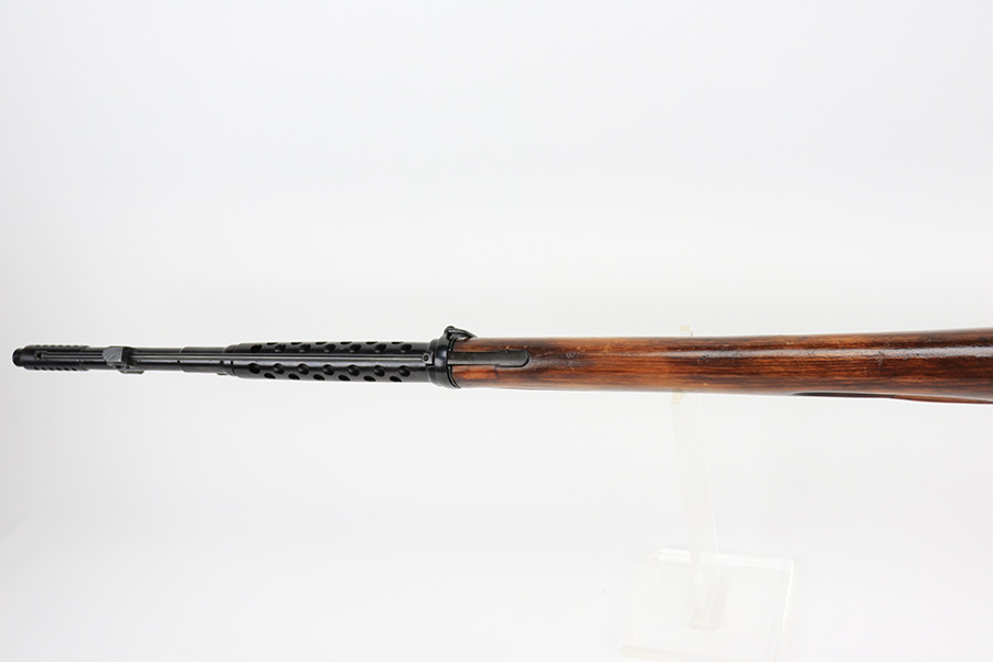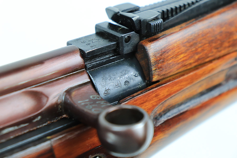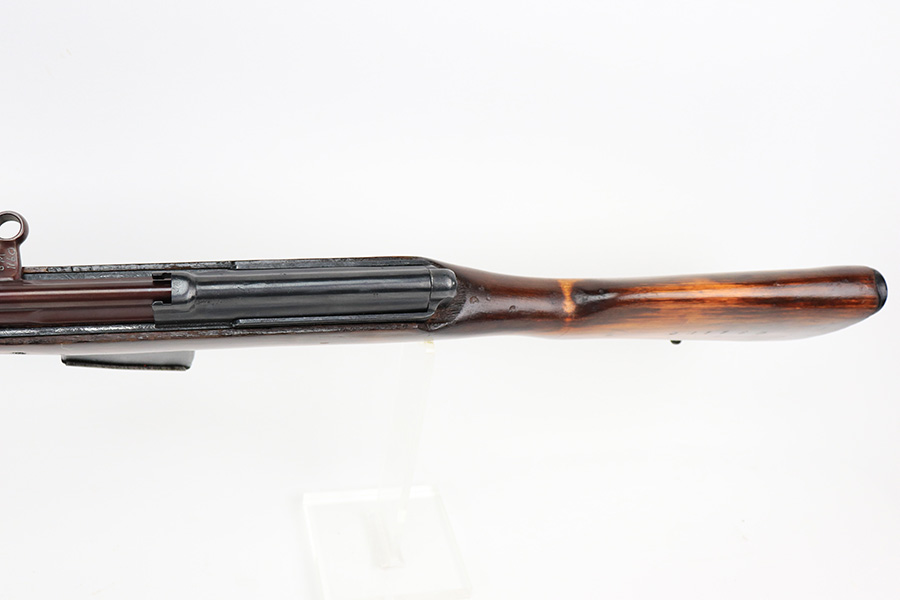 4/21/22 – This is a excellent example of a scarce Russian SVT-40. Made in 1941 at the Tula factory, it’s arsenal refurbished with etched serial on bolt handle but matching numbers are present on the receiver, bolt, trigger guard and stock. Excellent condition throughout – no wear to the bluing of the refinish. Bore has some frost throughout but strong rifling. Stock is in terrific condition and has several small Russian proofs on the right side. Small import mark on right side of receiver. Includes a cleaning rod.