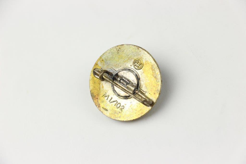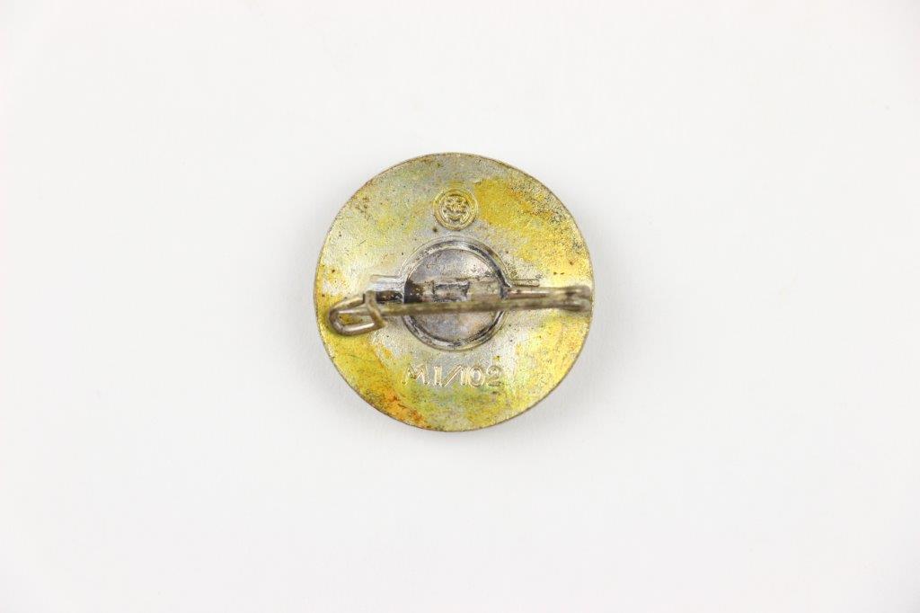 5/20/24 – This is an original WW2 Hitler Youth Marksmanship / Sharpshooter Badge. The small pin measures about 27mm in diameter. Great condition with some mild patina and finish loss, but a good portion of the silvered finish is still visible on the wreath and crossed rifles. The reverse has the original pin (fully functional) and is RZM M1/102 maker stamped by Frank & Reif.