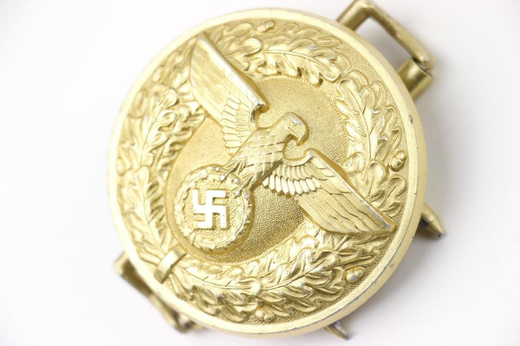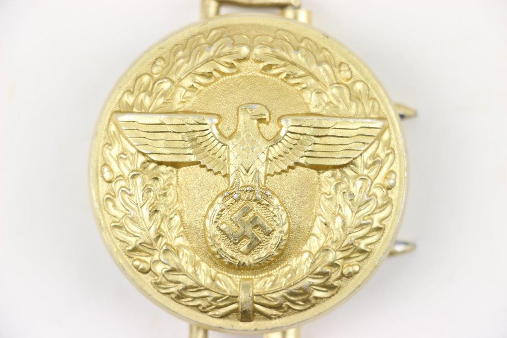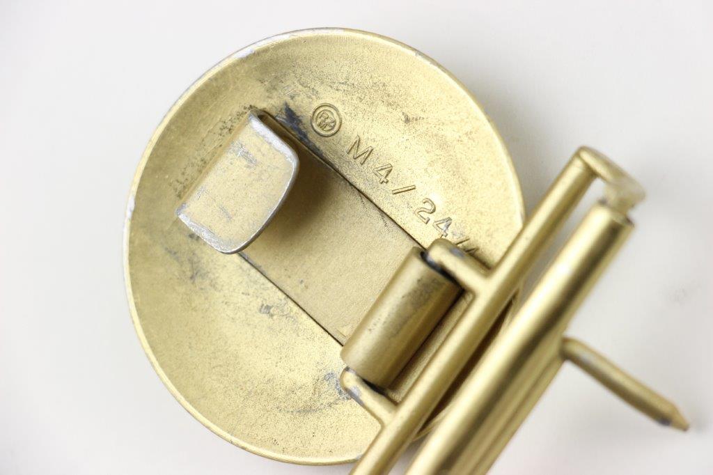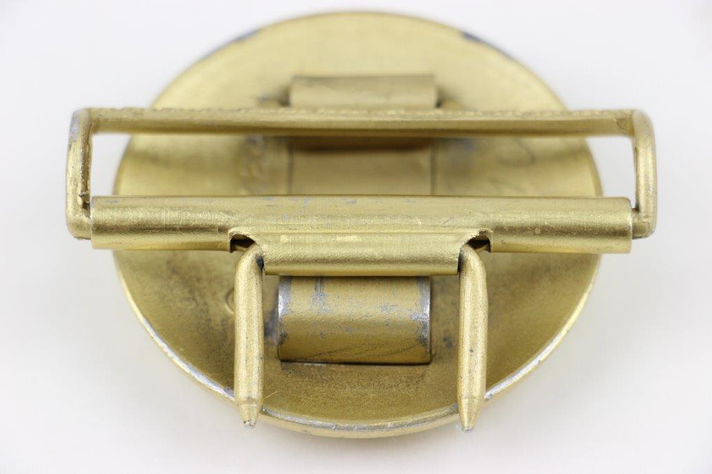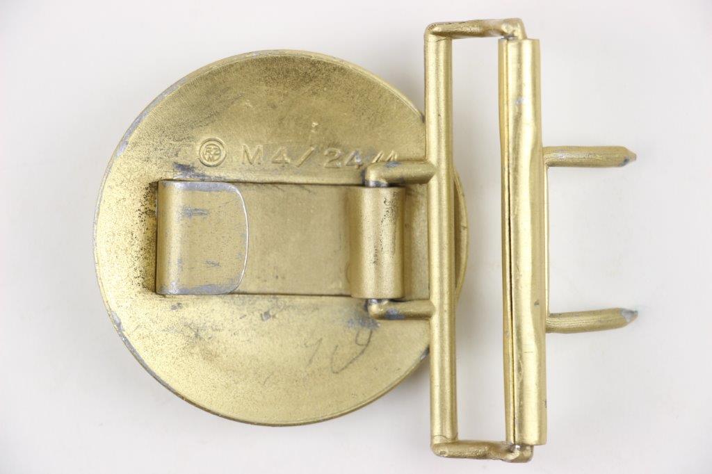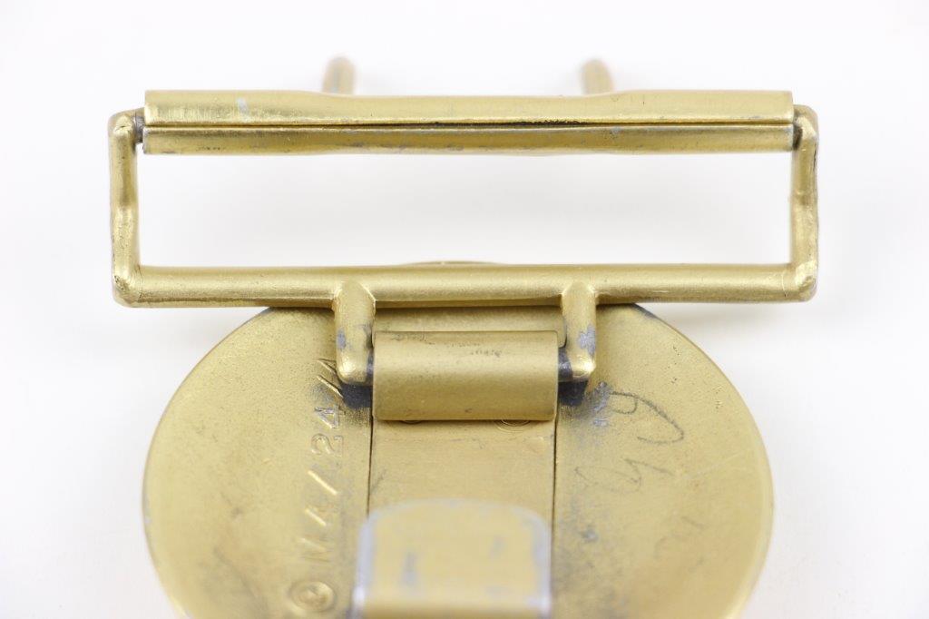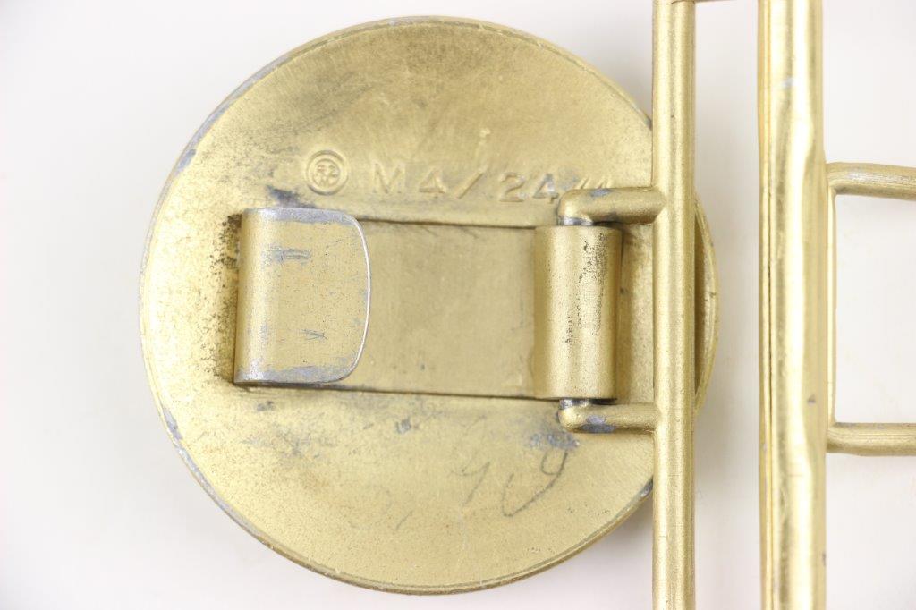 3/22/24 – This is an original WW2 German Party Leader belt buckle. The buckle is in near-excellent overall condition with most of the original gold gilded finish intact. There’s some light high-edge wear and natural patina but no major issues. Maker marked “RZM M7/24” for Reinhard Weyersberg.