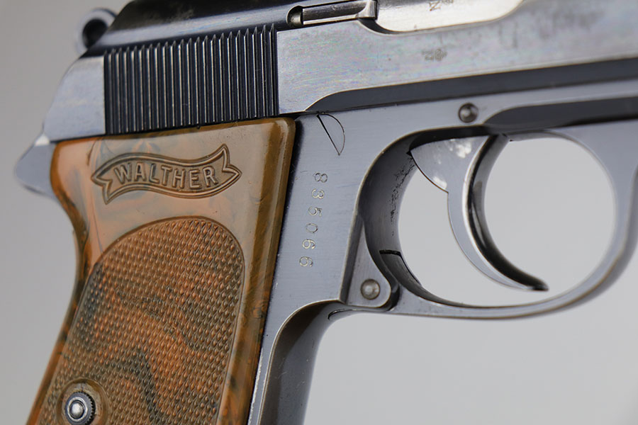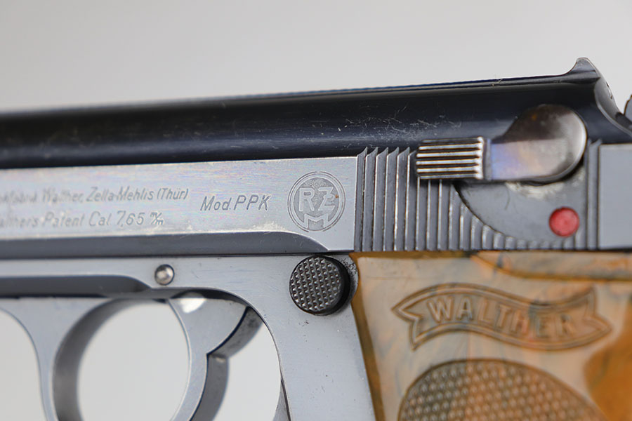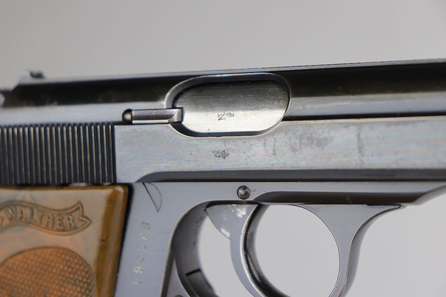 6/23/20 – This is an original and correct RZM marked Walther PPK from 1935 in very good condition. The RZM (Reichs Zeug Meisterei) was the equipment office of the NSDAP and was established to contract for equipment. These pistols were commonly thought to be issued to the German political leaders of the time. The bluing on this pistol rates at about 93-94%, with minor muzzle wear on either side of the muzzle. There are also areas of thinning on the trigger guard, and rounded portion of right side slide.