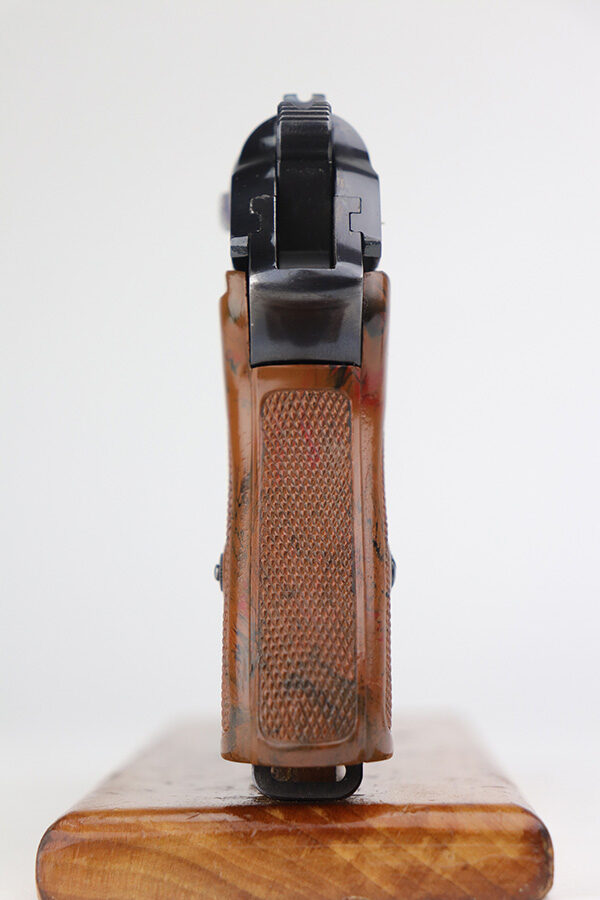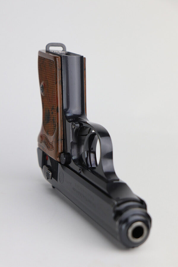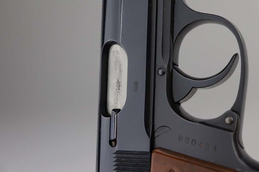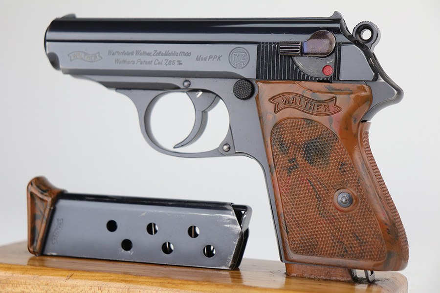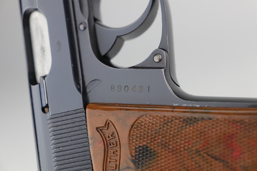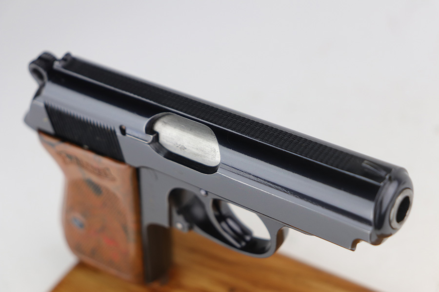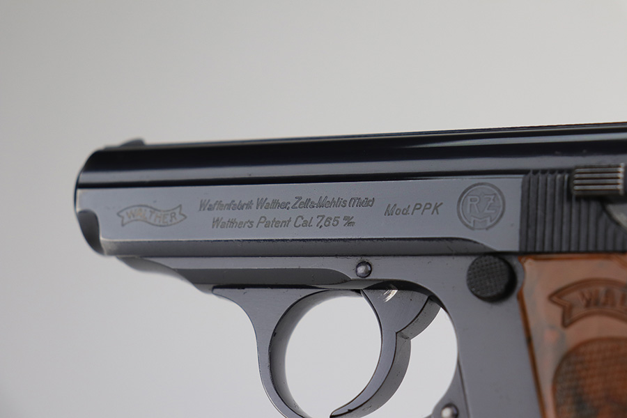 10/8/21 – This is an absolutely stunning example of an RZM-marked Walther PPK manufactured in 1935. The RZM (Reichs Zeug Meisterei) was the equipment office of the NSDAP and was established to contract for equipment. These pistols were commonly thought to be issued to the German political leaders of the time. This one is all matching and has the proper “Crown N” proofs. It has retained more than 98% of its high polish finish. There are just the faintest hints of wear on the high edges of the slide and around the muzzle. It comes with an excellent brown Walther grip (no chips or cracks) and a minty period-correct Walther banner-only brown finger extension magazine. The bore is stone-mint. Just a beautiful example of this iconic pistol.