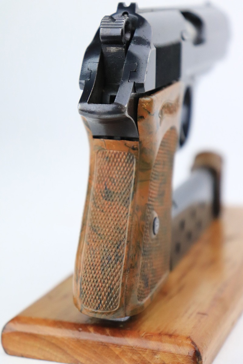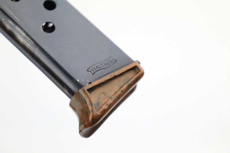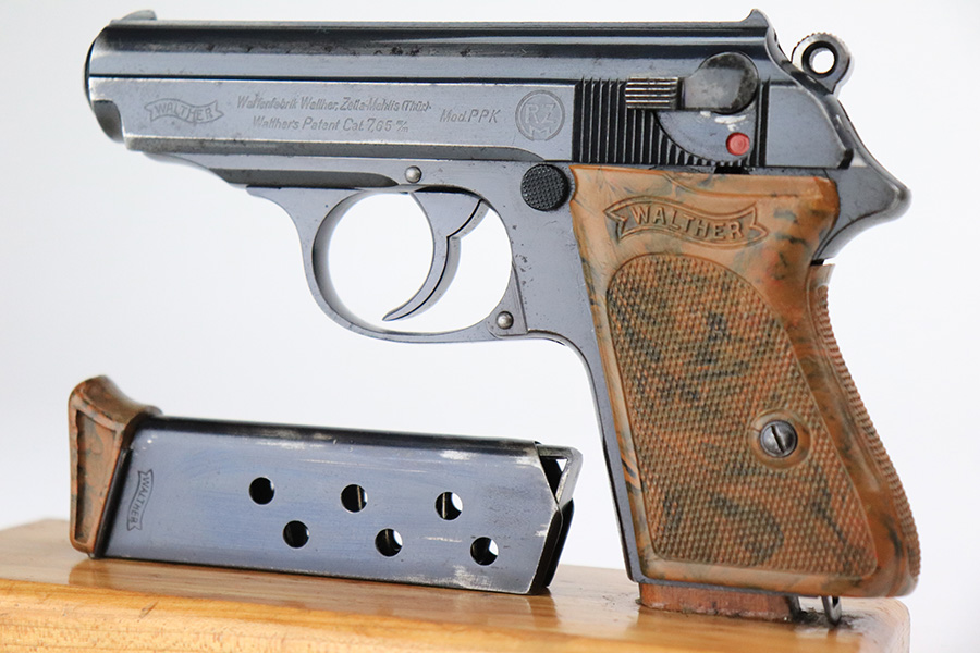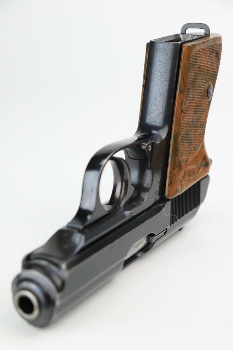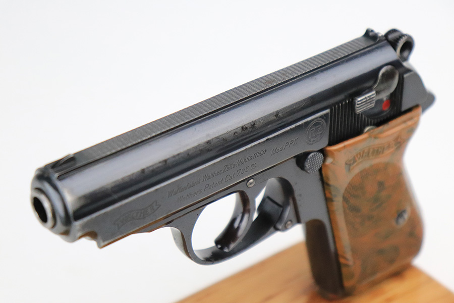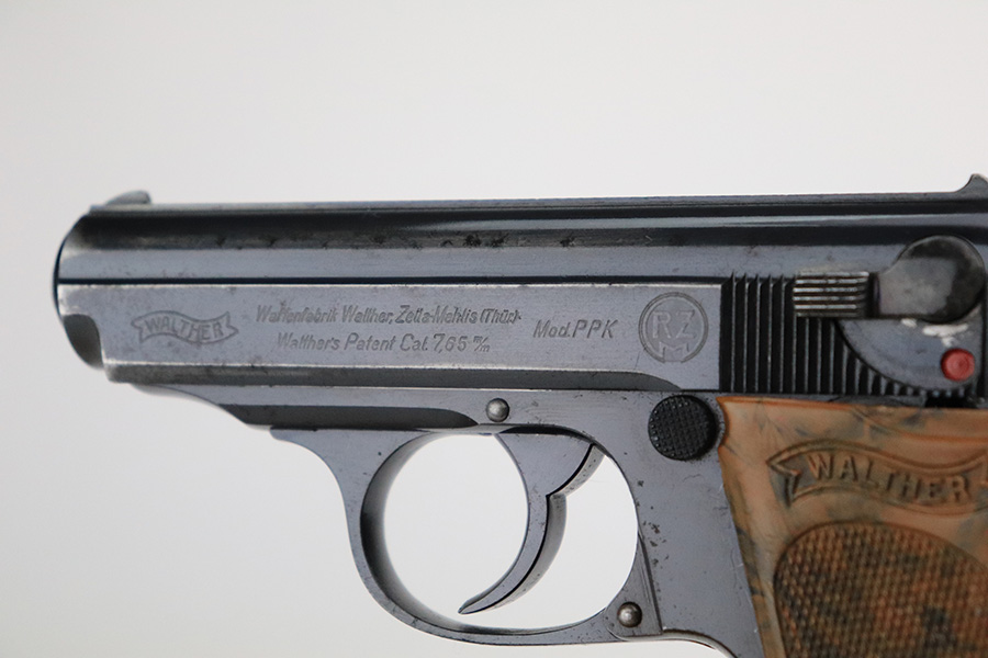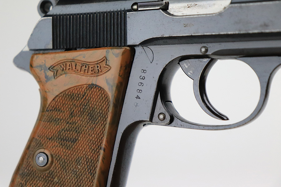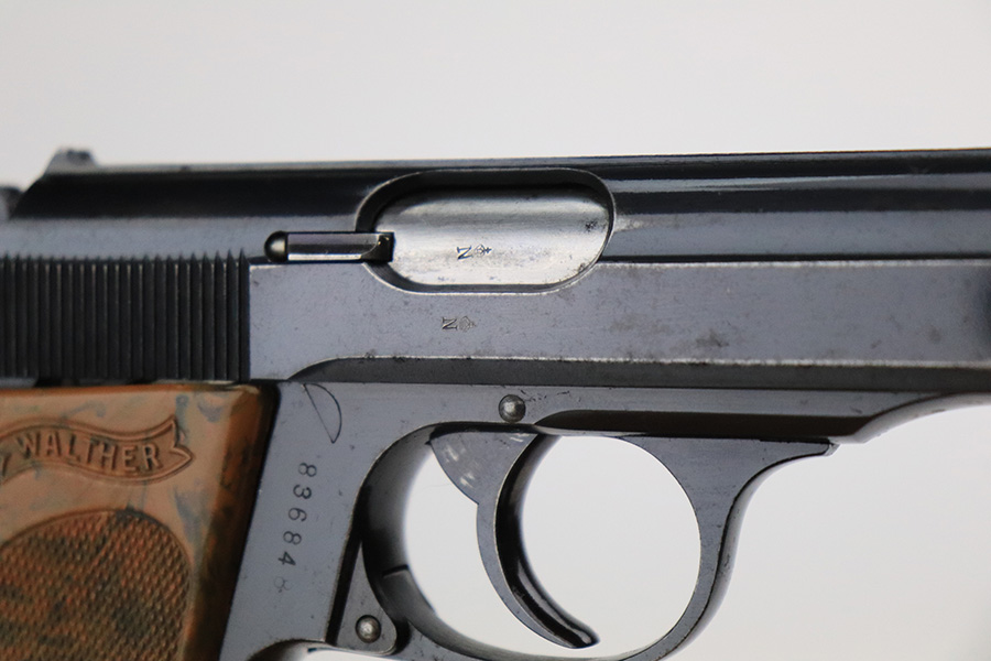 7/13/22 – This is a very nice example of an RZM-marked Walther PPK manufactured in 1935. The RZM (Reichs Zeug Meisterei) was the equipment office of the NSDAP and was established to contract for equipment. These pistols were commonly thought to be issued to the German political leaders of the time. This one is all matching and has the proper RZM logo on the left side of the slide. This one has retained about 94% of its original bluing with minor wear mainly around the high edges. While there is not much actual finish loss, there are small dots of oxidation throughout, most noticeable on the left side of the gun, and some light freckling on the front strap. Comes with an excellent brown bakelite grip and a period-correct finger extension magazine. The bore is excellent with strong rifling.