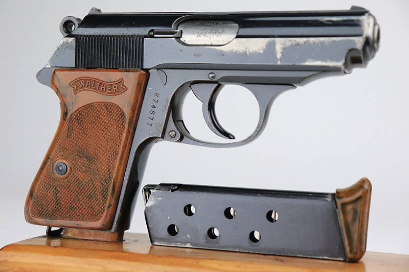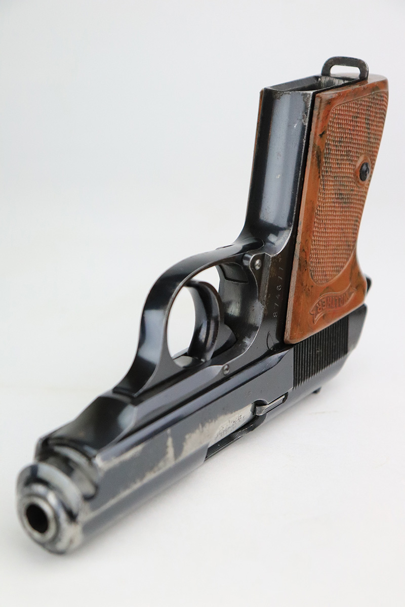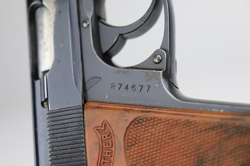 5/19/23 – The serial number dates the gun to about 1934/35, and there are a few RZM PPK’s near this serial number. However, the bulk of the RZM marked guns began to phase out in the 840xxx serial range. So in checking the internal markings of the slide, we cant say that it has a matching number (last 3 digits) . It actually looks more like the last 3 digits were renumbered or illegible. Therefore, we are selling this RZM slide on a later frame and not claiming that they are matching. It does have a correct early grip and early finger extension. The original finish is covers about 80-85% of the gun. Comes in 7.65mm, and it has an excellent shiny bore.