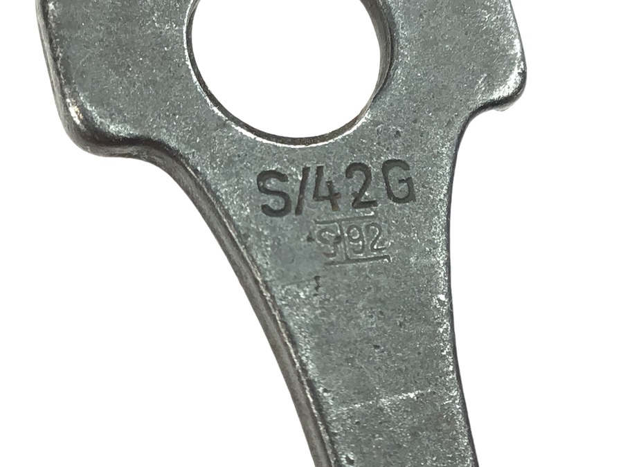 6/9/21 – Original, and excellent condition. Rare variation Luger tool. The tool is “S/92” stamped, which is a G Date Luger proof stamp. There’s also an interesting “S/42 G” stamp above that original factory stamp “S/92”, meaning this was returned and restamped at an arsenal during some point of WW2. Probably was a fallen soldier, and recovered weapon / rig that was arsenal inspected and returned to the battlefield. Very cool piece of history.