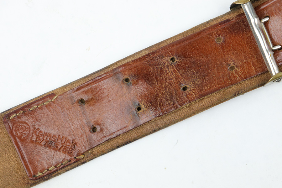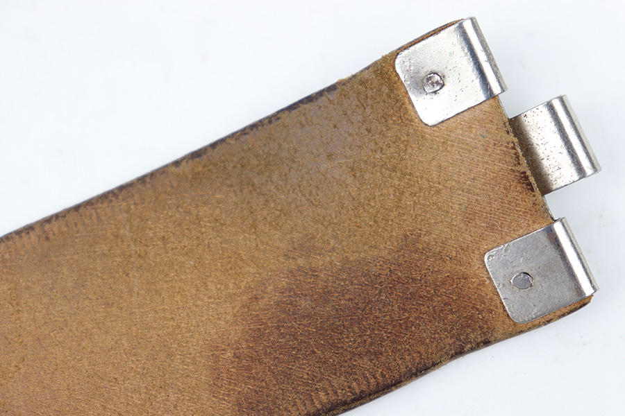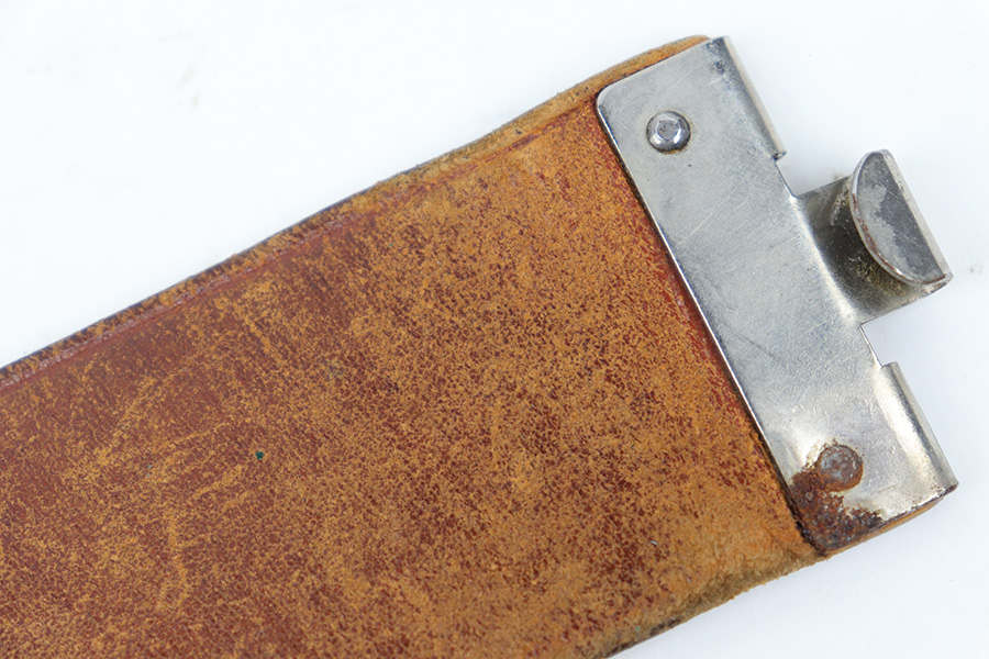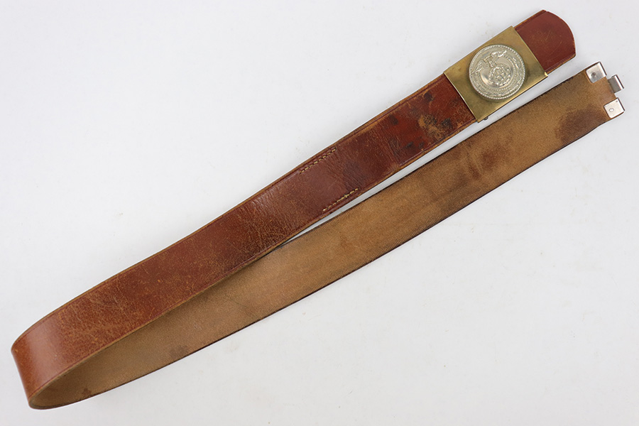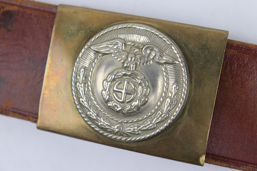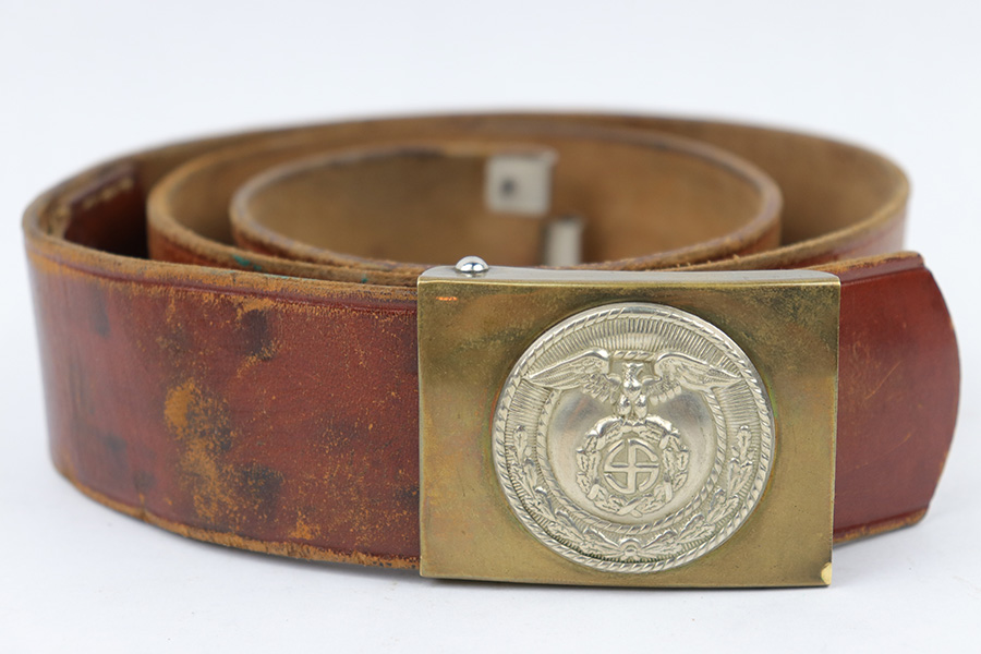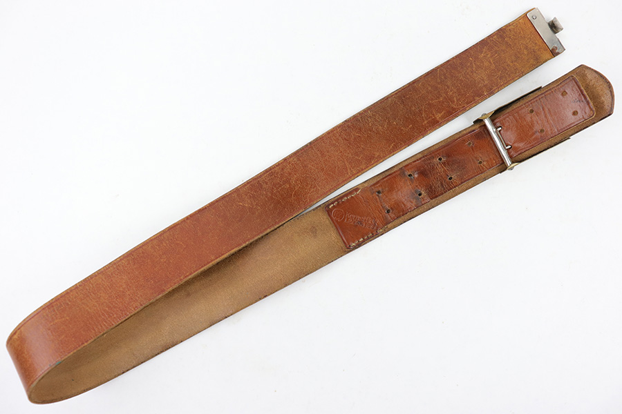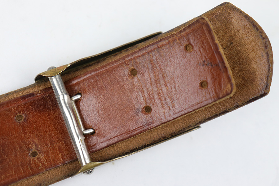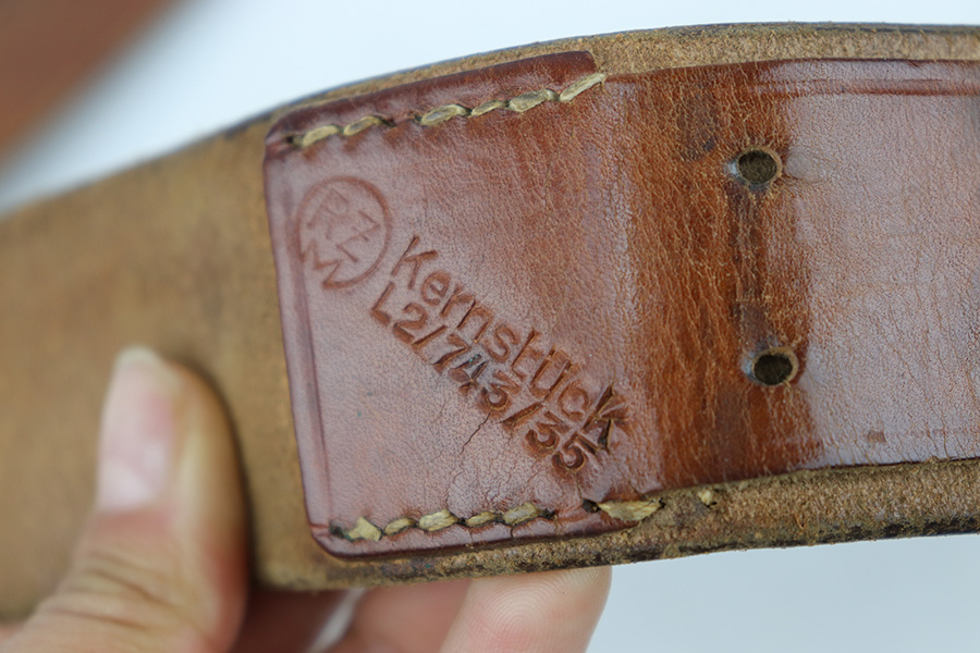 4/18/23 – This is an original WW2 production SA Belt and Buckle. The buckle is a standard two-piece design with normal surface patina but is in great overall condition. No interior markings or stamps. The leather belt is in great condition with some natural aging and use wear but no excessive damage. The leather is soft and pliable. The leather size adjustment tab is maker stamped “Kernstuck” with a RZM stamp and designation code, “L2/743/35”. A fairly desirable example.