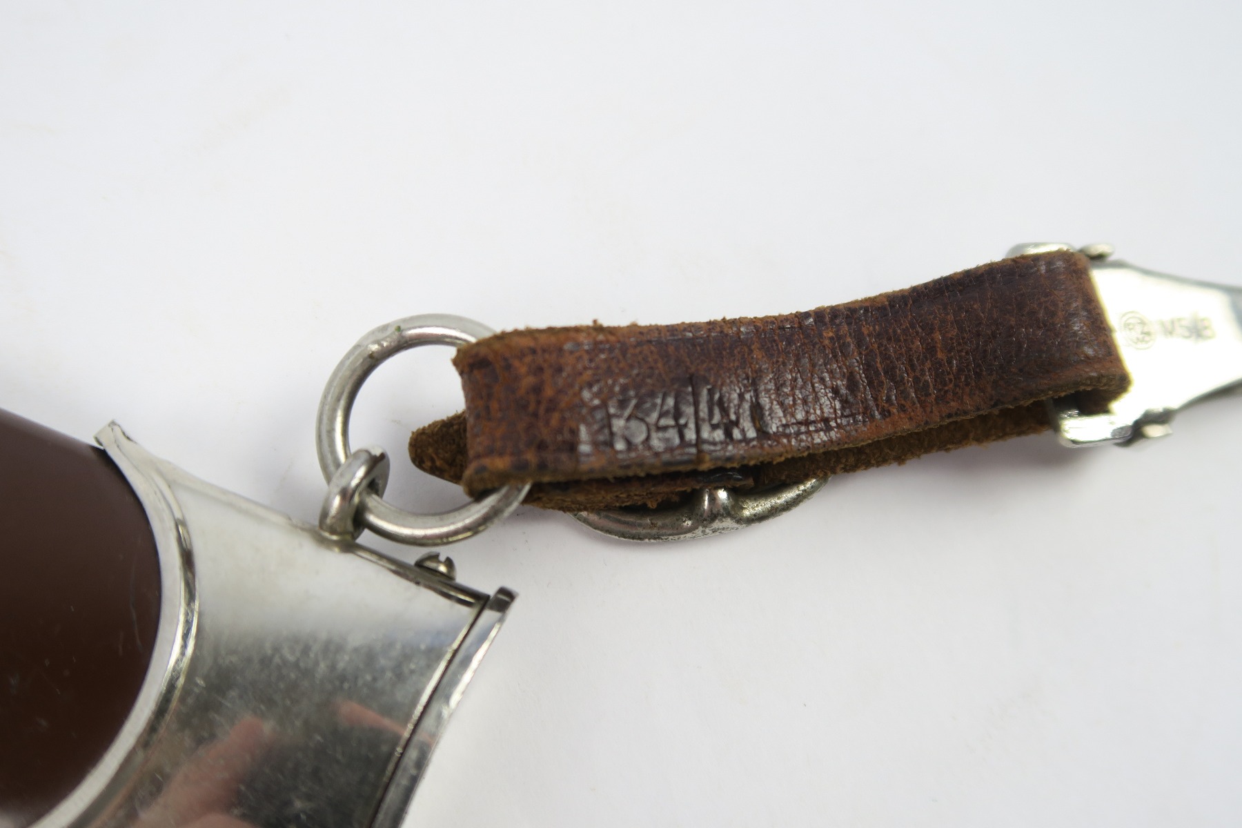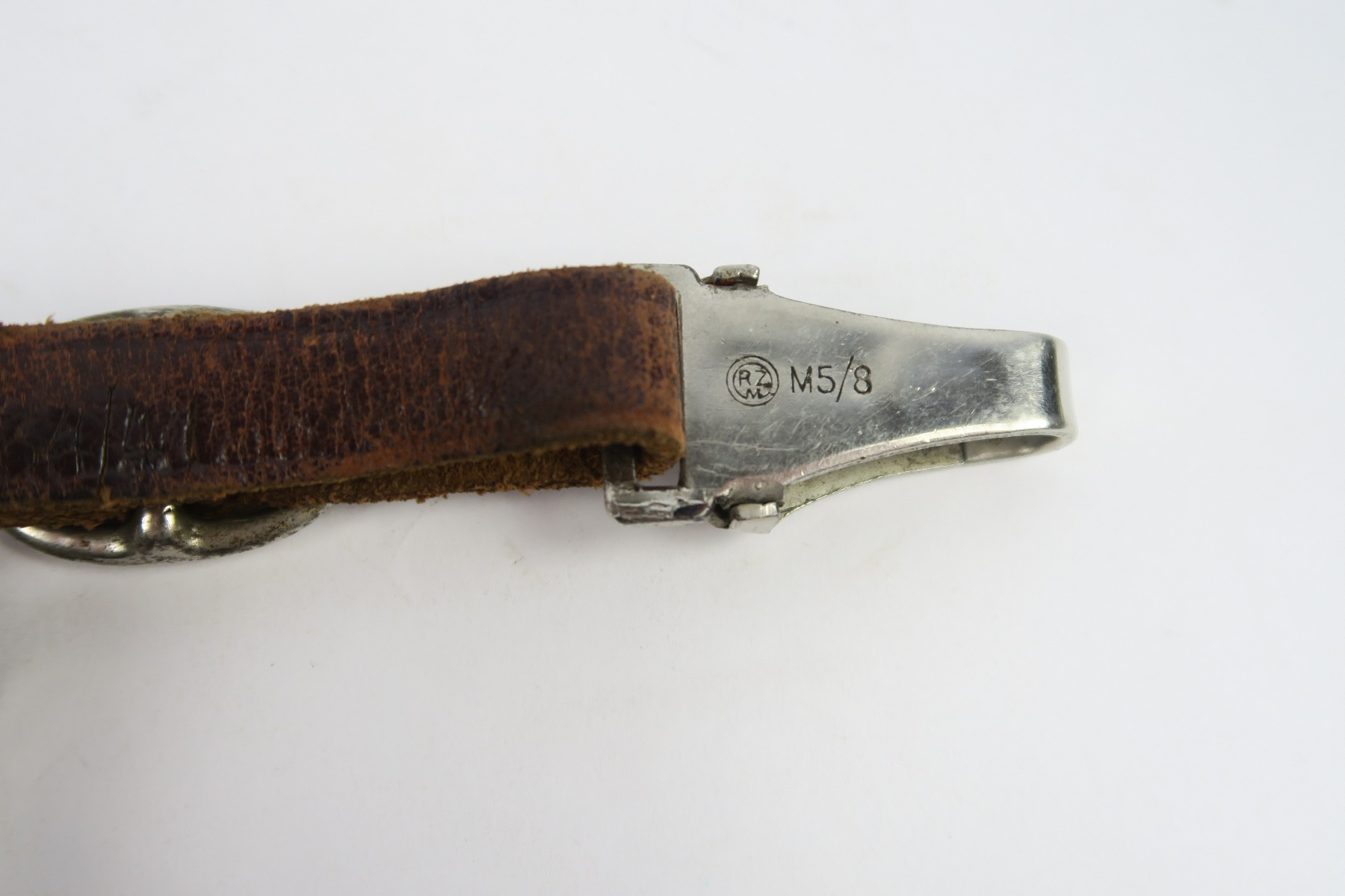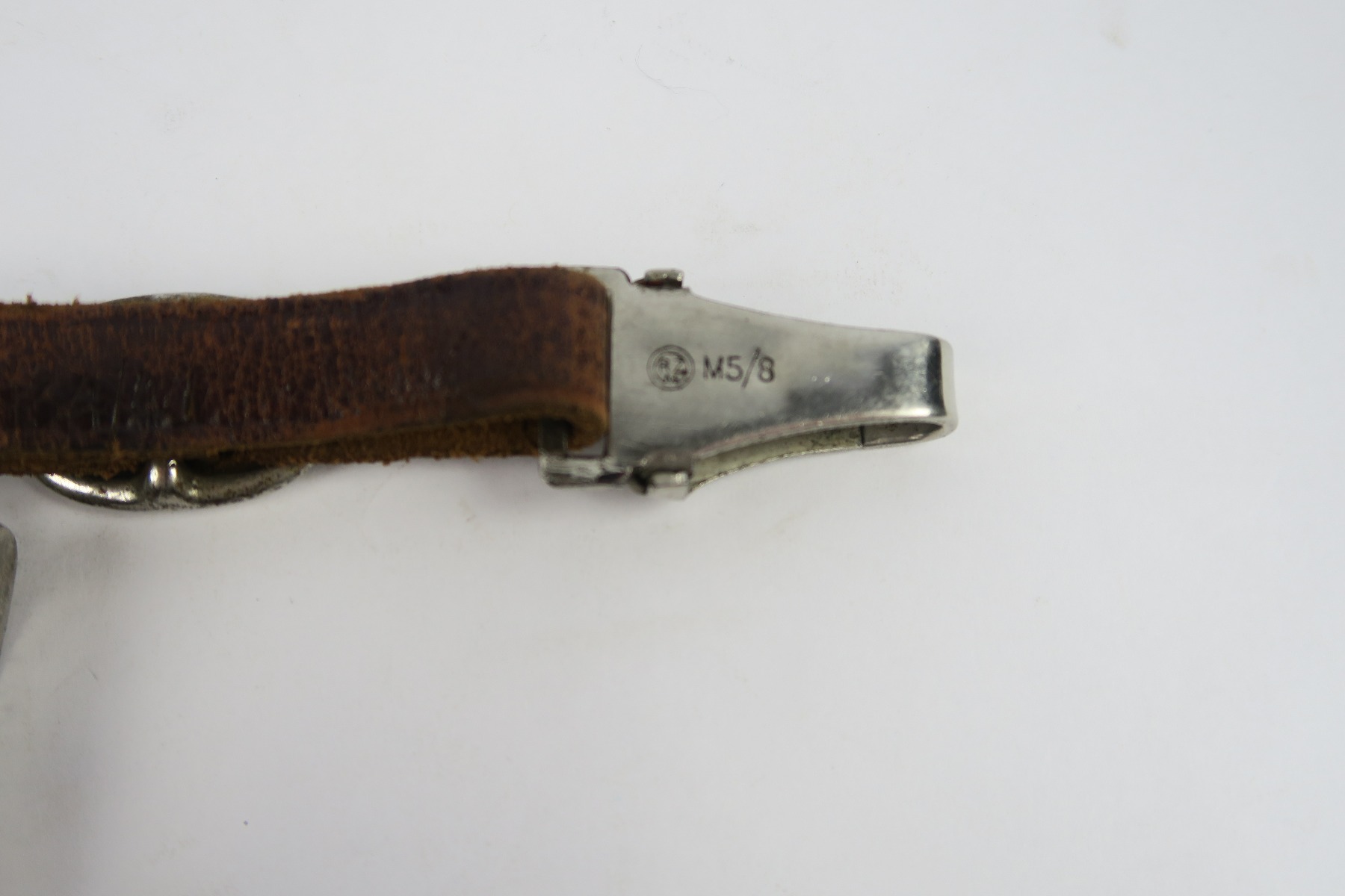 2/12/18 – This is an original WW2 production SA Dagger, complete with the original scabbard and hanger. The blade is maker stamped RZM M7/10 with a 1941 date. The blade has some light spotting, and a few areas of patina, but overall the blade is very nice with no signs of sharpening. The wood handle is excellent with no cracks or chips. The scabbard is in excellent condition and has a leather hanger with a light number stamp “34/41”. The leather is soft and has normal aging/use wear. The hanger is RZM M5/8 stamped. Overall a very nice collector’s SA dagger. The markings are all crisp and guaranteed original.