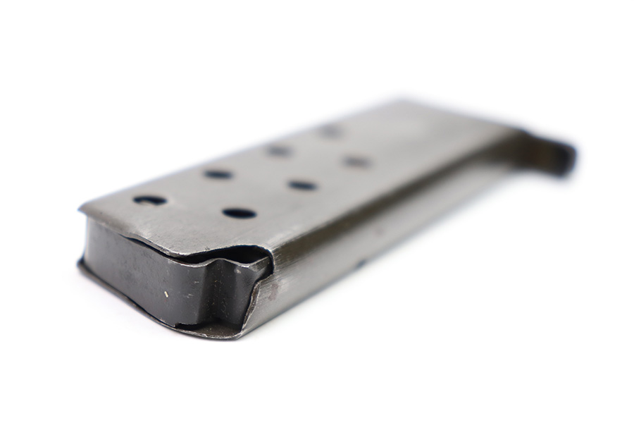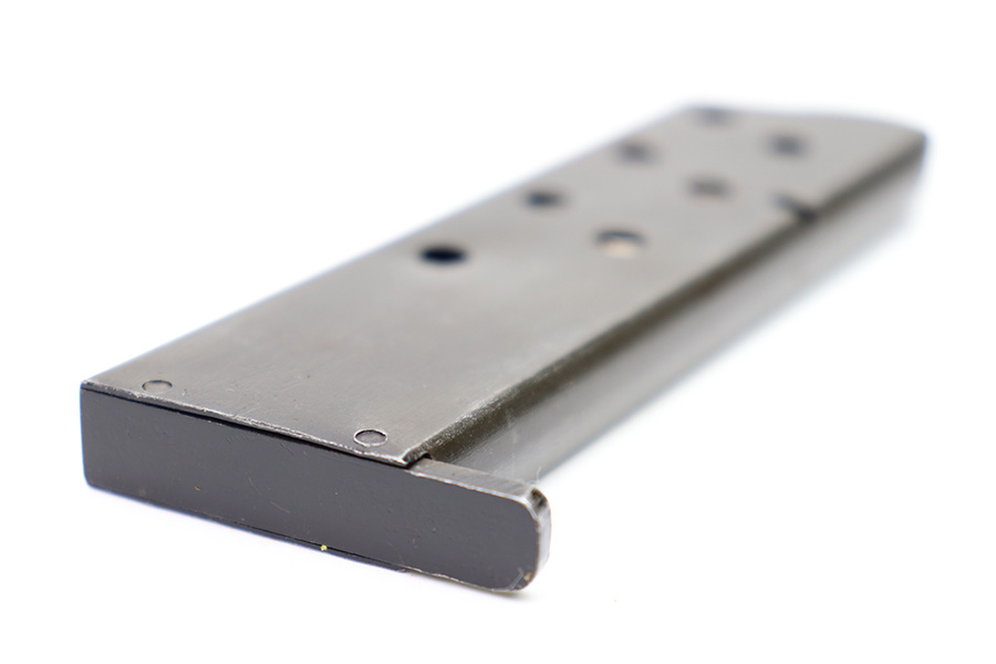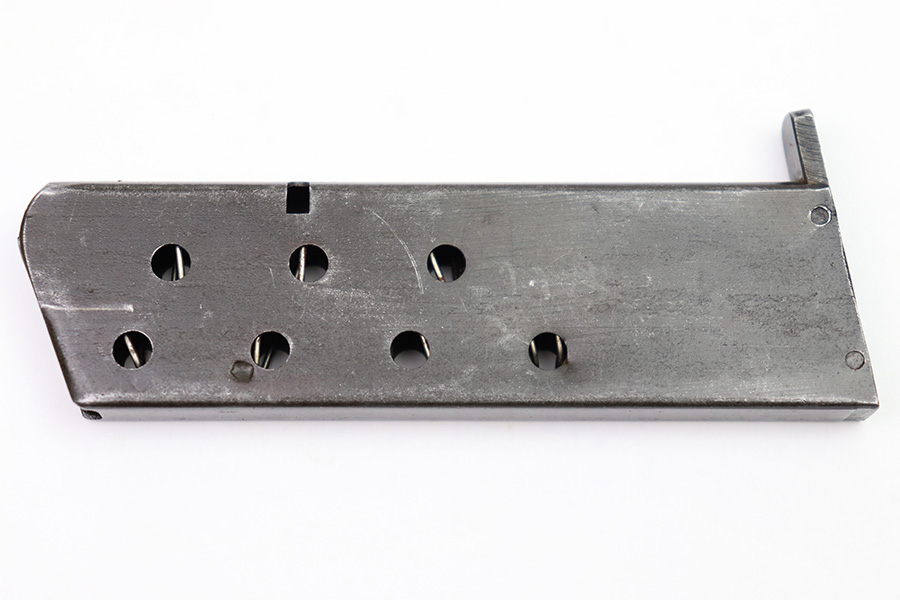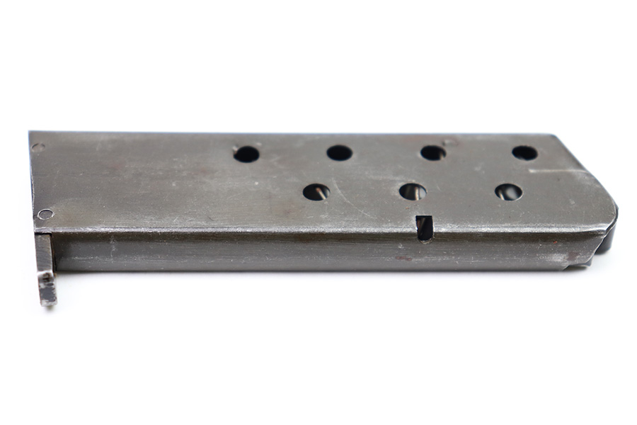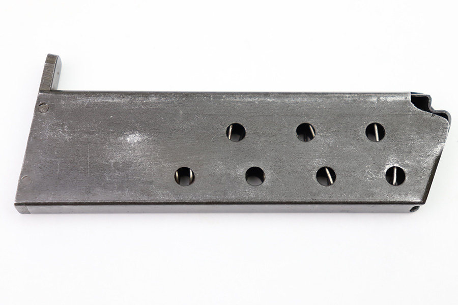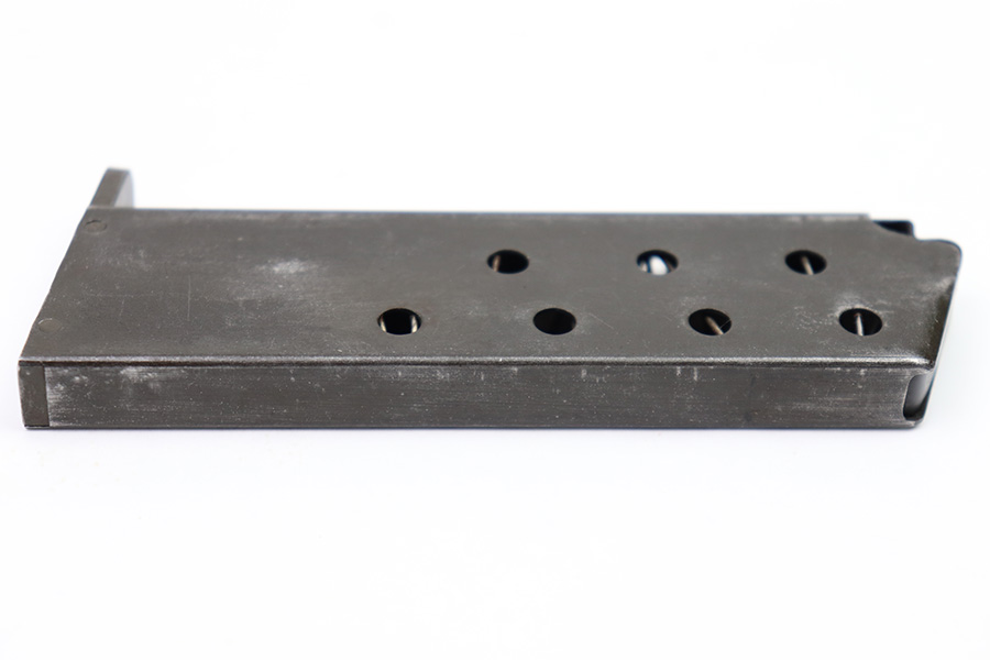 10/20/22 – This is a French SACM M1935A magazine in 7.65mm Long. The magazine has a dark phosphate-like finish and a black painted base. There’s surface patina throughout but no rust or pitting. The spring is strong and fully functional. No markings or stamps.